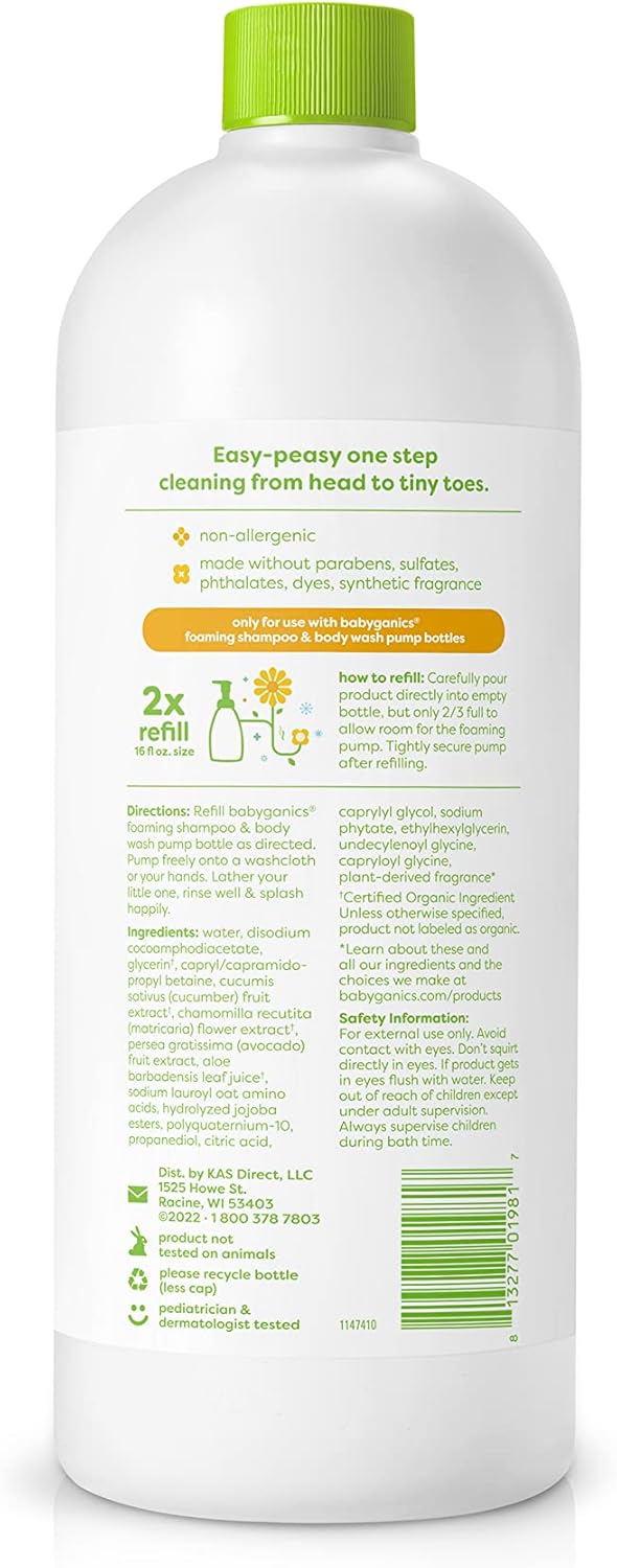Babyganics Baby Shampoo + Body Wash Pump Bottle, Chamomile Verbena, 16oz, 3 Pack
