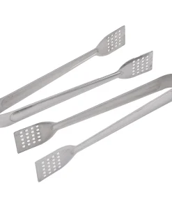 The Bakery Metal Bread Salad Dessert Buffet Food Mixing Tong Clamp is a versatile tool for your kitchen needs. Made of high-quality metal, this food tong is durable and reliable. Its silver tone adds a touch of elegance to your table setting. The 8.5" x 1.4" x 0.9" size makes it easy to handle and maneuver. With a max open width of 2.8", it is perfect for picking up bread, salad, cake, ice cake, pastry, fruits, vegetables, and more. Whether you’re hosting a party or cooking a meal, this food tong is convenient and practical. The metal handle provides insulation and a secure grip, ensuring safe and comfortable use. Add this Food Tong to your kitchen essentials today!