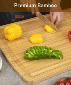 BAMBOO CUTTING BOARD – Also doubles as a cutting board and noodle board for kitchen cooking. The juice groove around the perimeter reduces the mess caused by cutting juice. The solidity and durability of bamboo wood can greatly improve the service life of the chopping board.