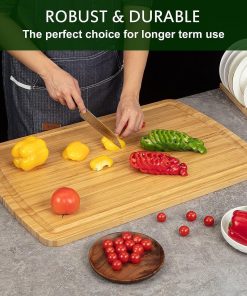 EASY TO USE AND CLEAN – Bamboo chopping boards can greatly reduce the daily maintenance required to use wooden chopping boards. Pure bamboo chopping boards are easier to clean and less porous, daily use of stains are not easy to remain, long time use as new.