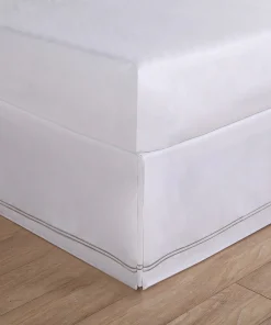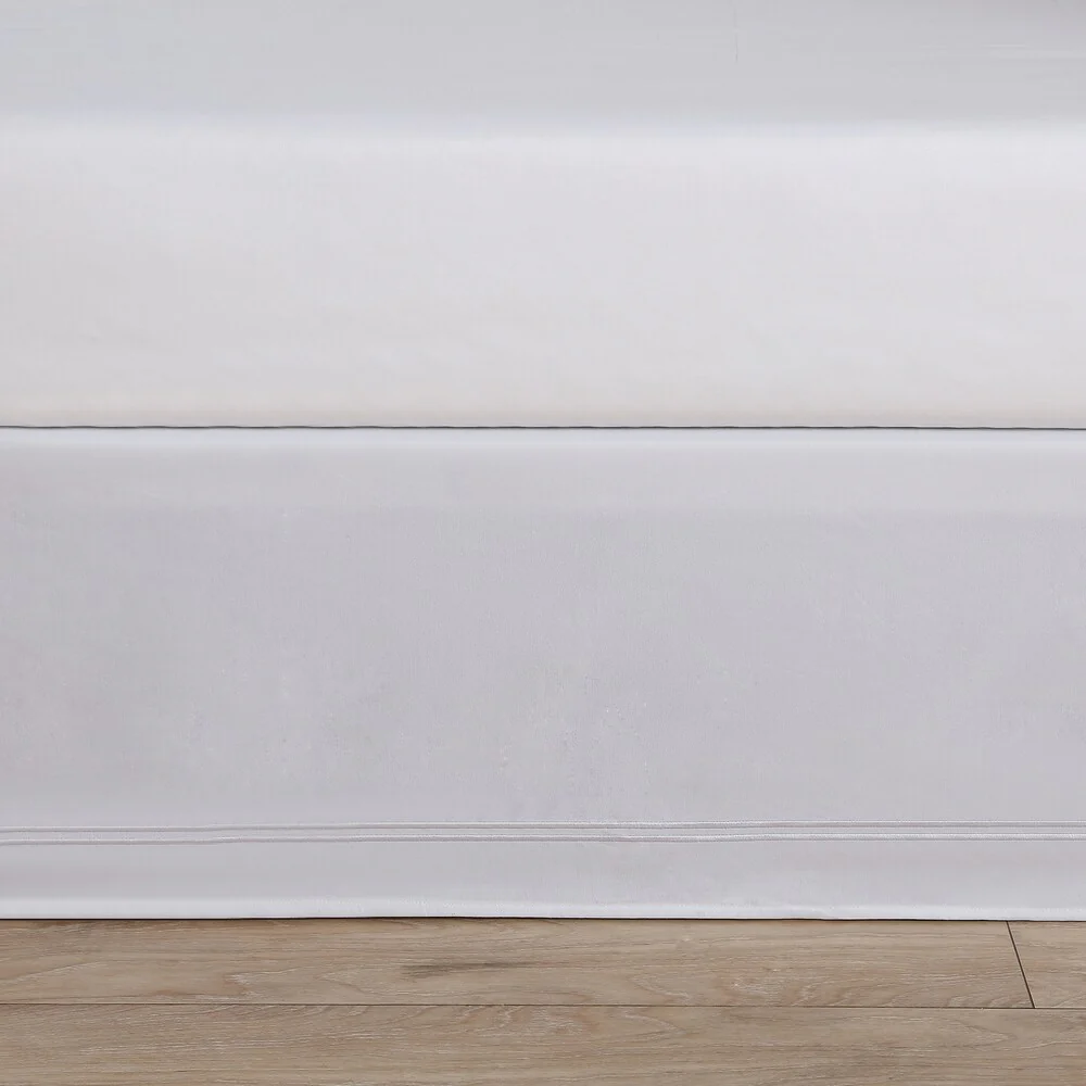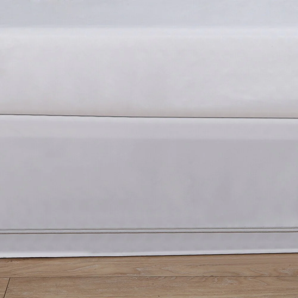 Complete the look of your bedding and conceal clutter beneath your bed with this simple white bed skirt. With its clean lines and embroidered detailing, this bed skirt gives your room the look of an upscale luxury hotel. The skirt’s machine-washable polyester fabric offers easy cleaning.