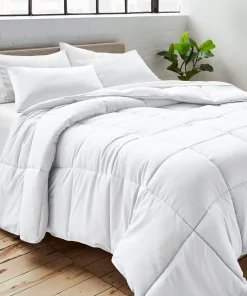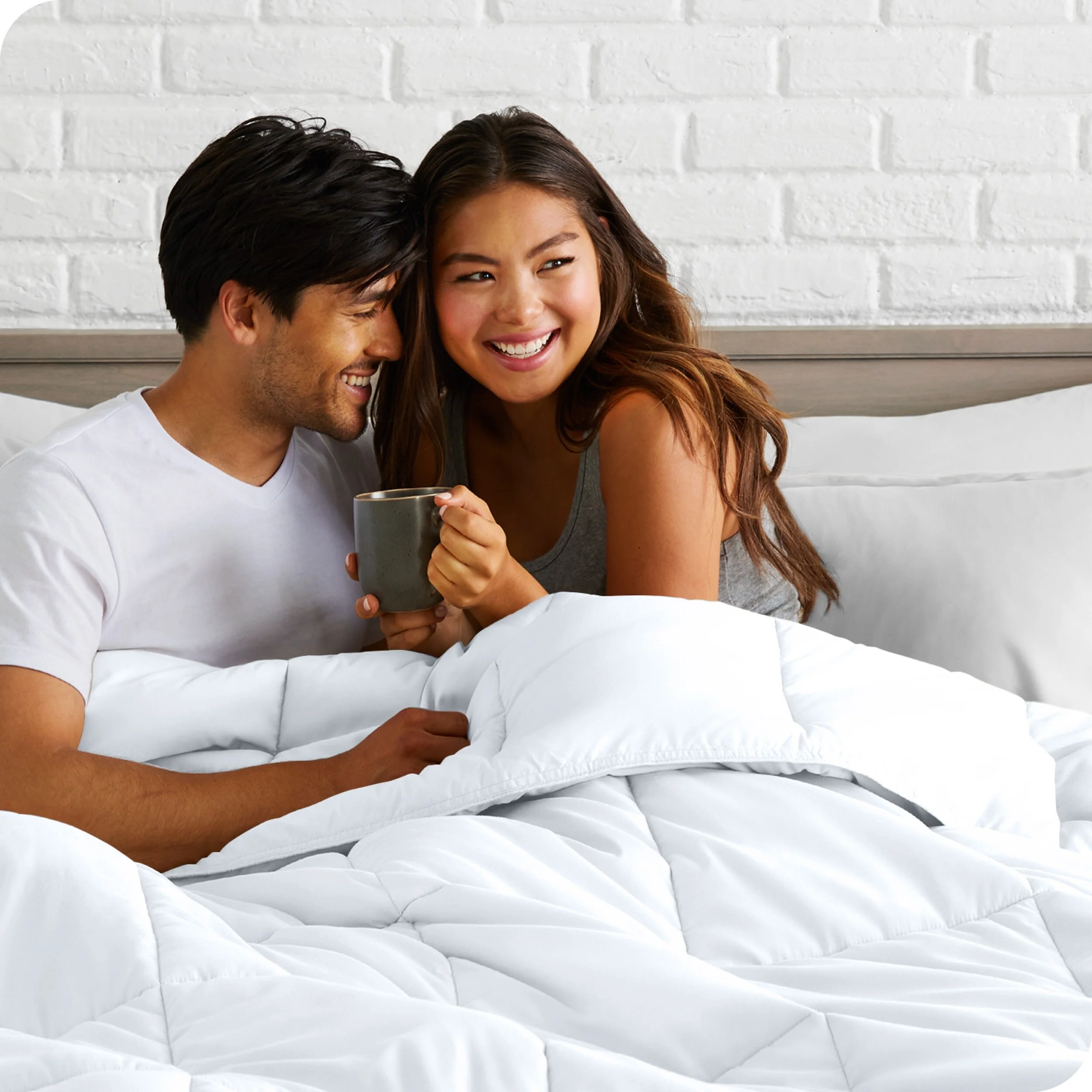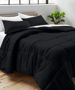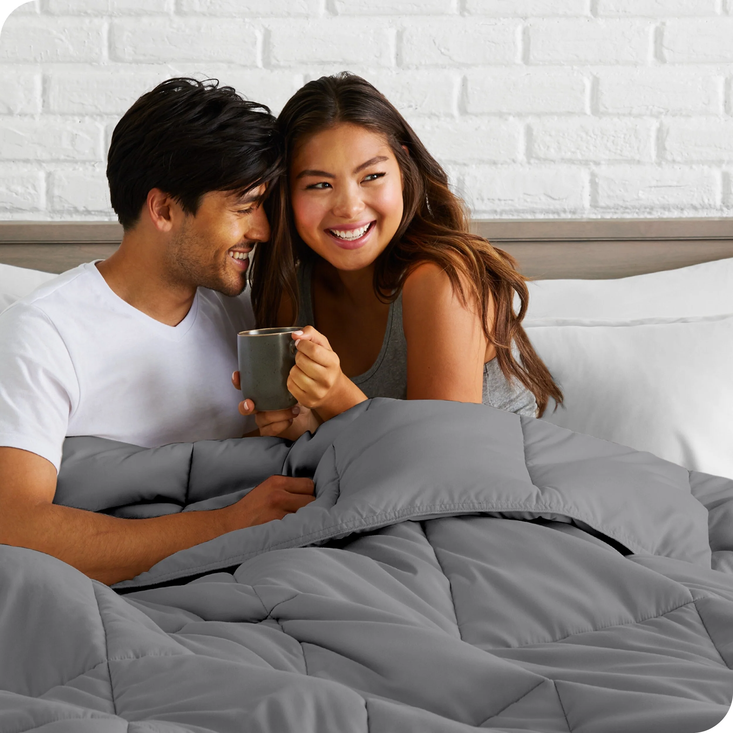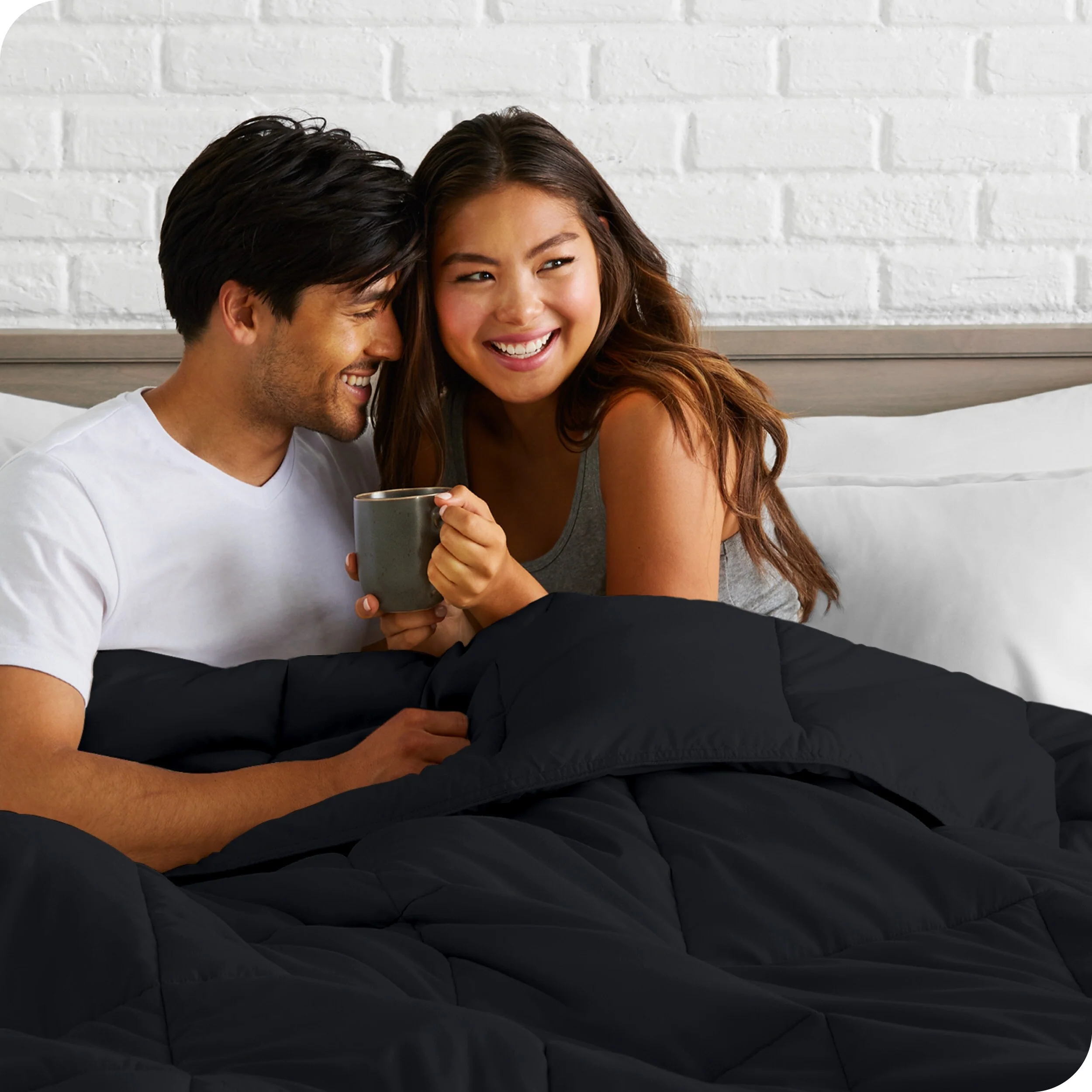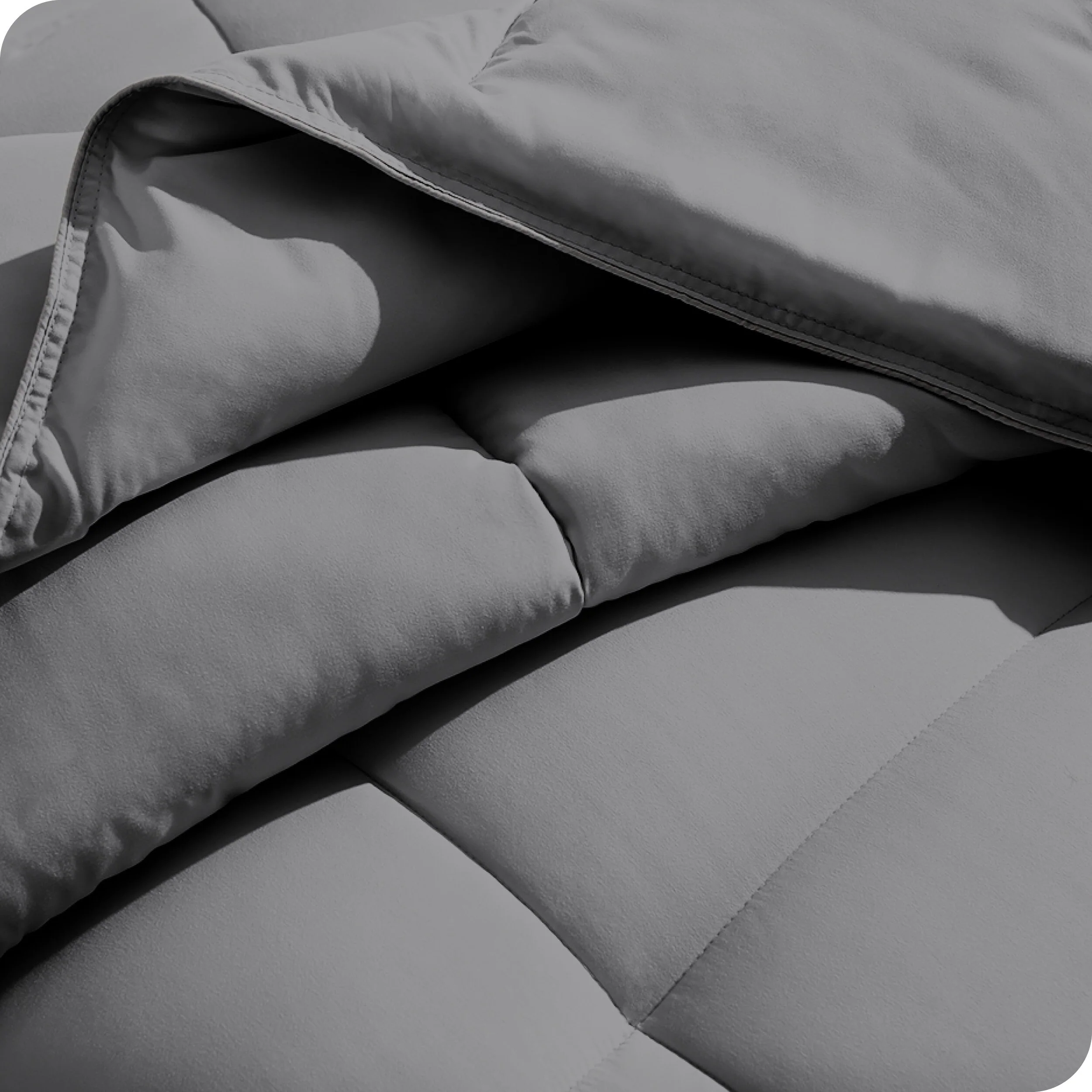 A fluffy comforter to use as a stand-alone comforter or inside a duvet cover. Made from double brushed microfiber for a soft touch and filled with polyester fiber fill. Machine washable on gentle cycle with cold water, air dry or tumble on low.