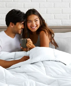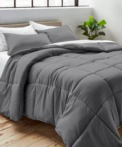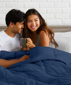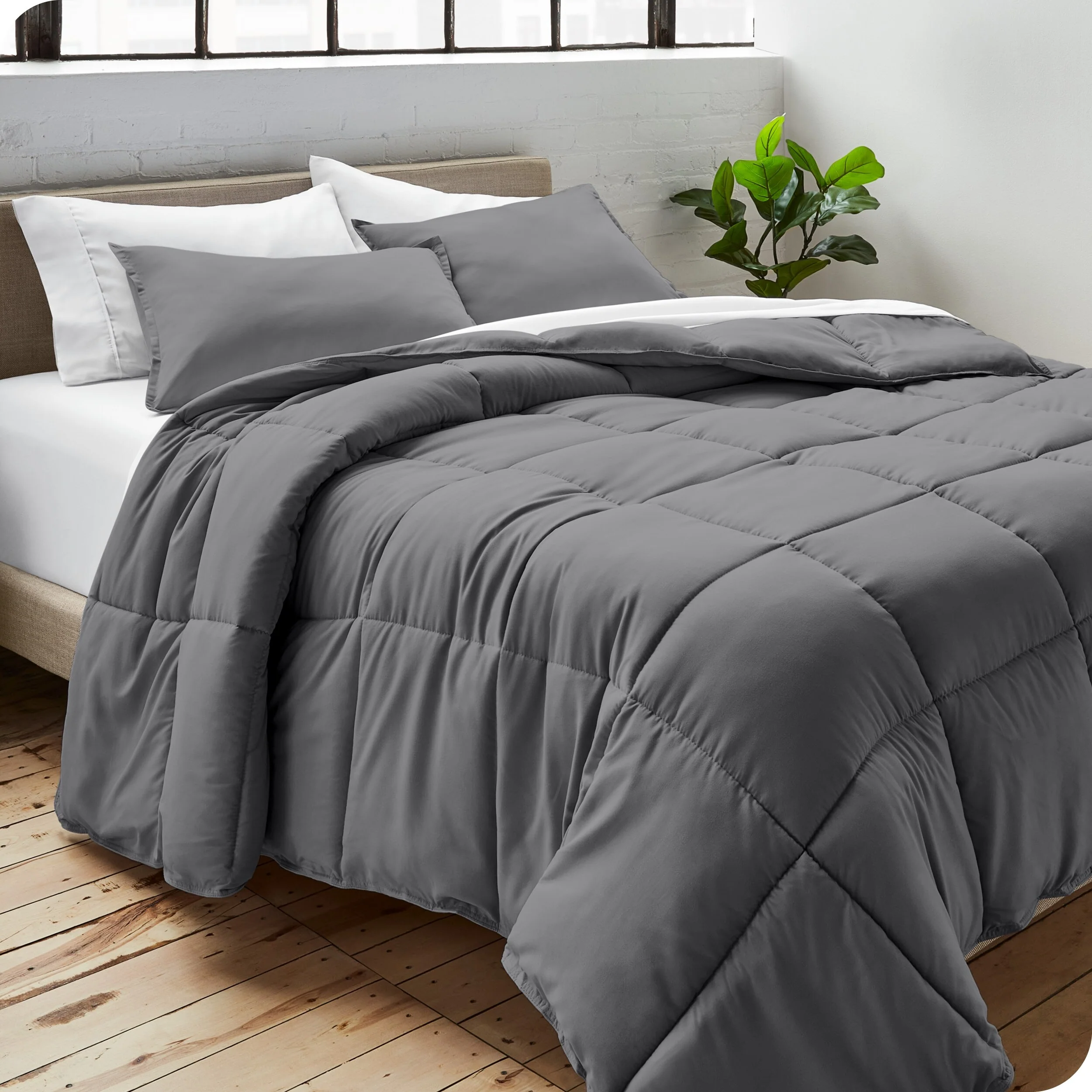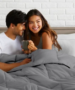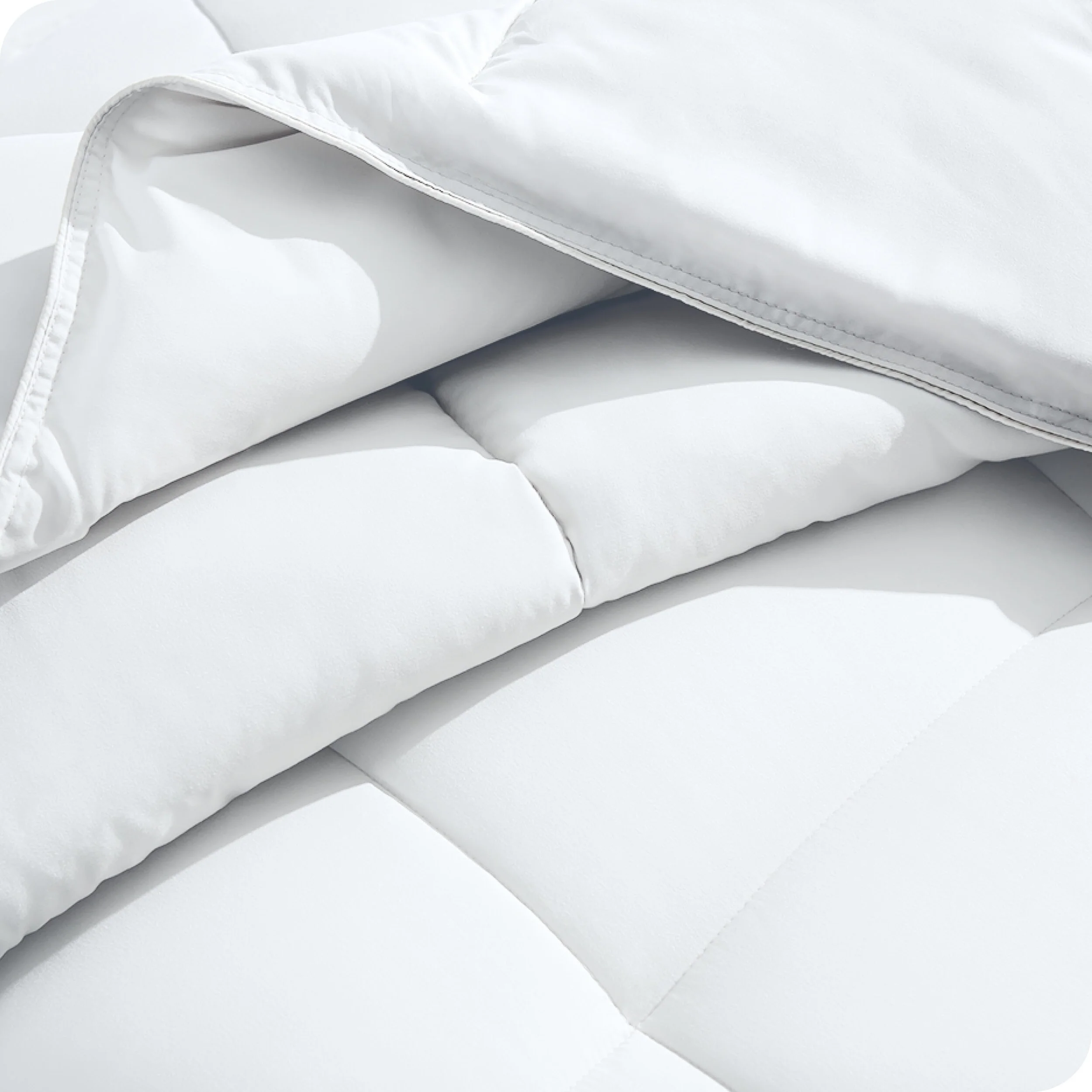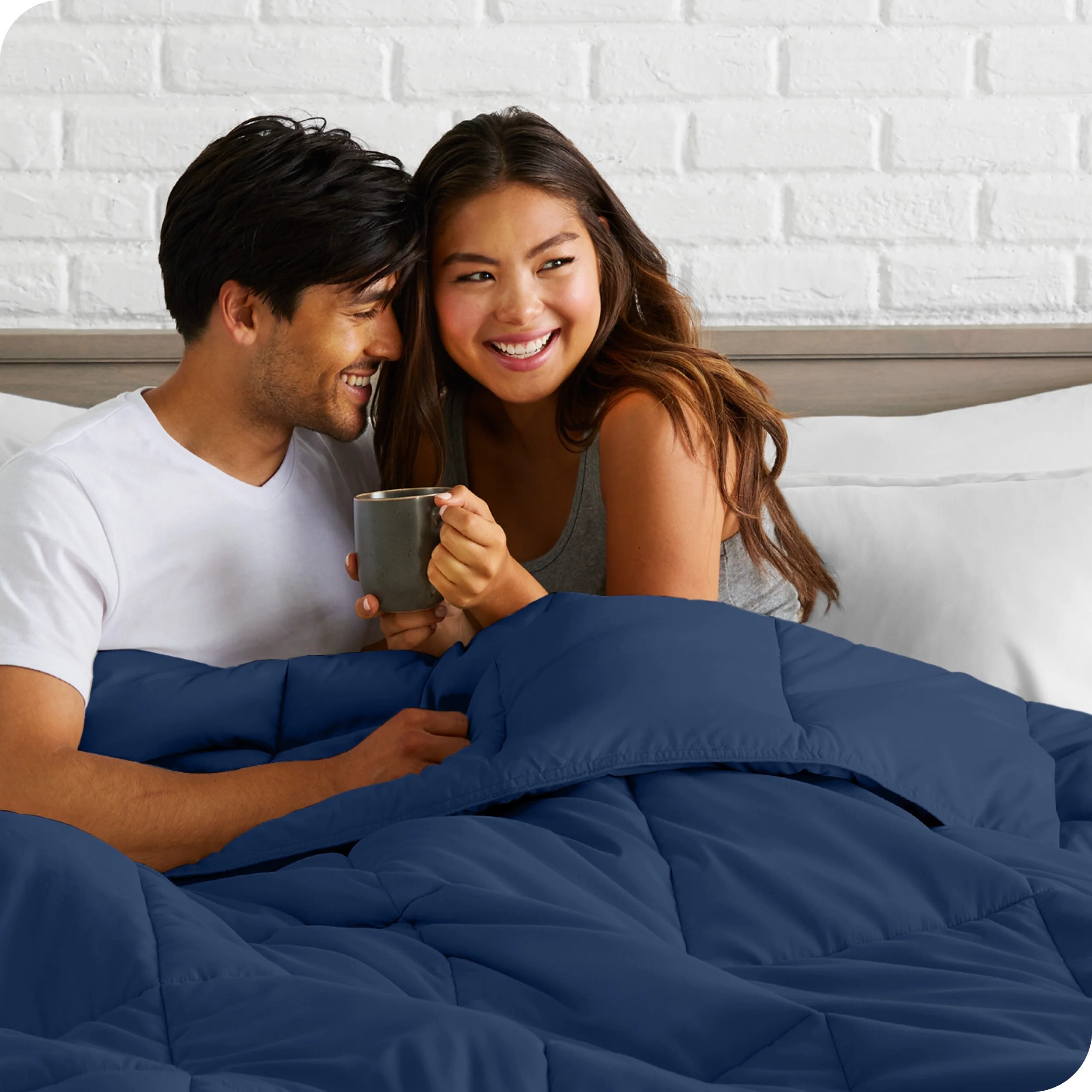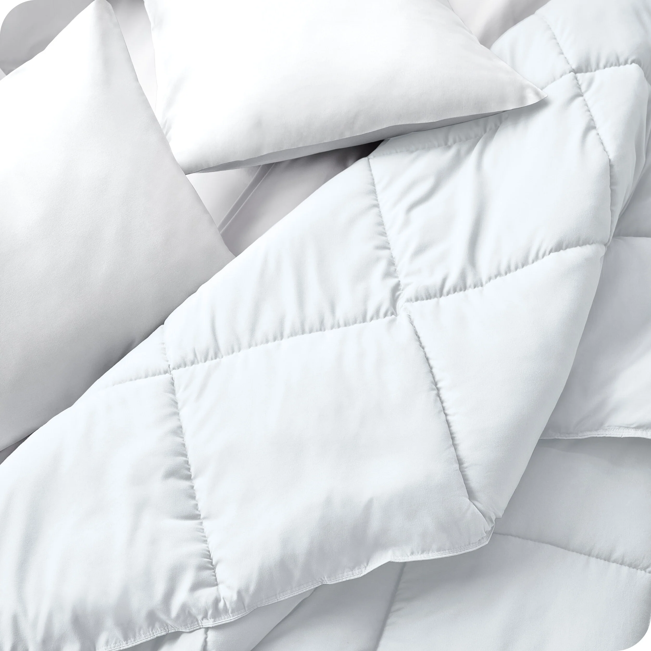 A fluffy comforter to use as a stand-alone comforter or inside a duvet cover. Made from double brushed microfiber for a soft touch and filled with polyester fiber fill. Machine washable on gentle cycle with cold water, air dry or tumble on low.