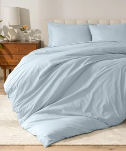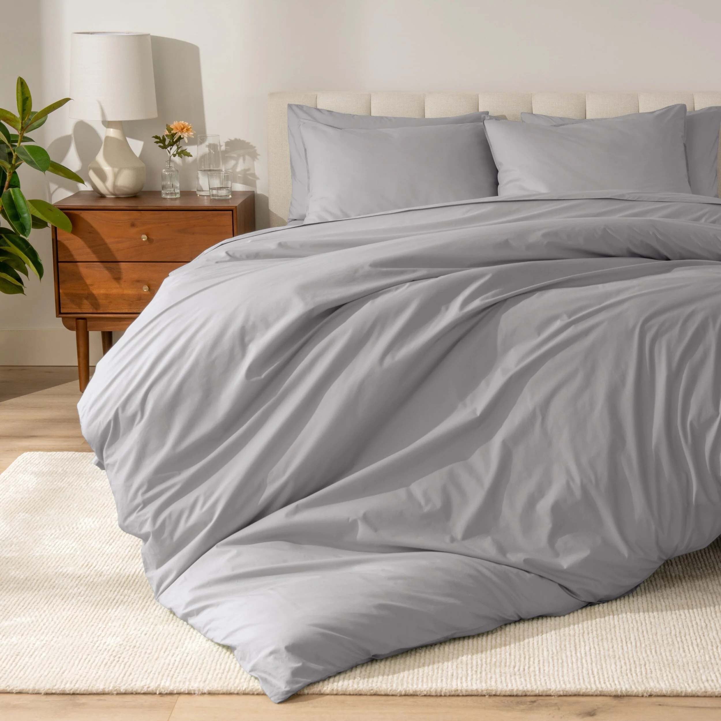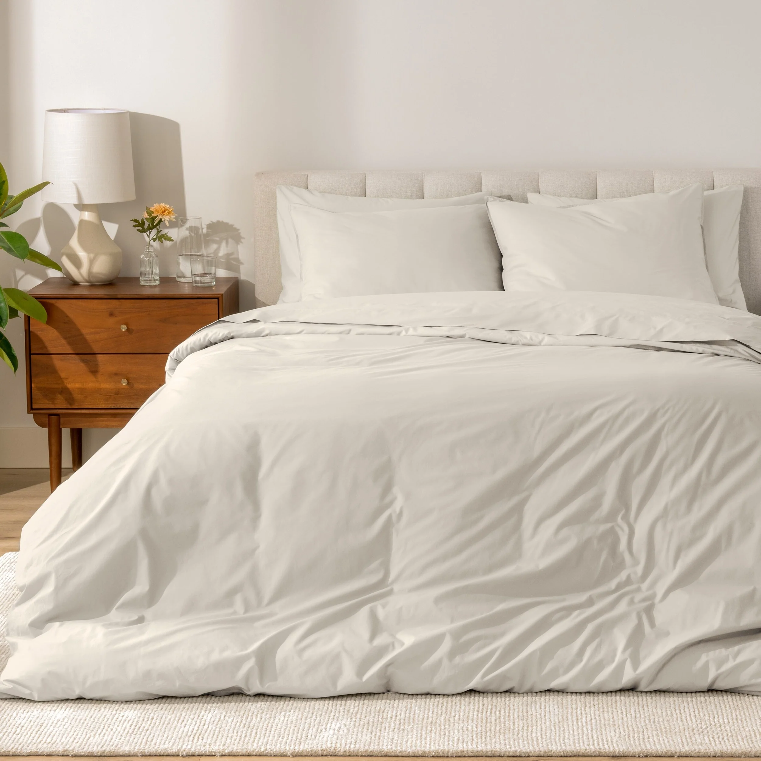 Our Organic Cotton Percale Duvet Covers are held to the highest environmental and social standards, using only organic cotton fibers and dyes. The percale duvet cover set is lightweight with a crisp finish that only gets better with time. Duvet insert/comforter sold separately.