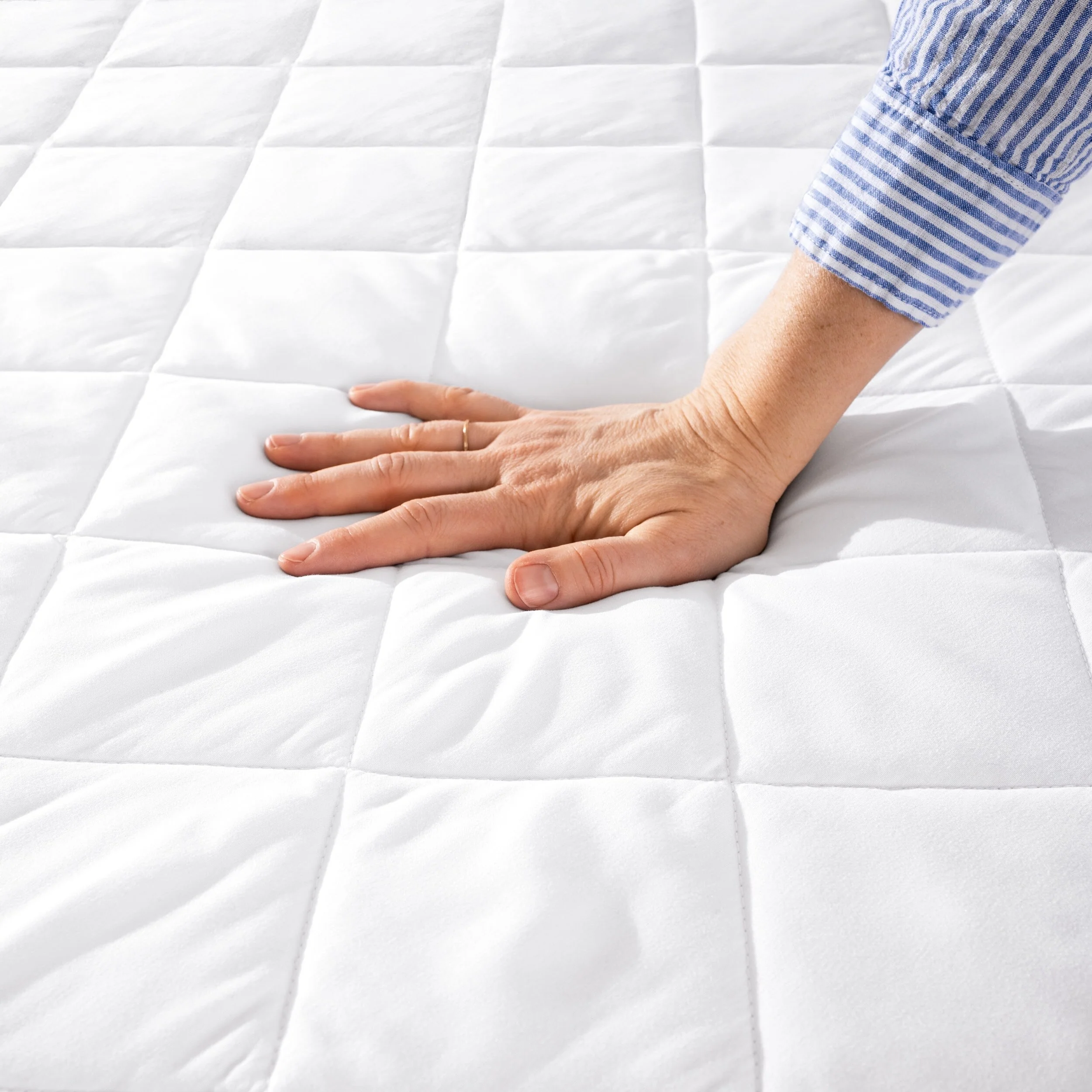 Our deep pocket Quilted Mattress Pad fits all mattresses from 6" to 15". Features a fully elasticized deep fitted skirt that will stay tight to your mattress and will not slip off. Breathable fabric and airy filling to add comfort to any mattress.