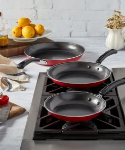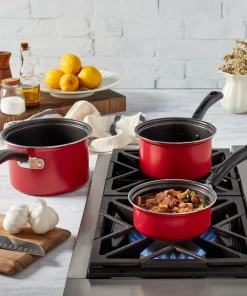 Built to perform. Made from high quality carbon steel for superior heat distribution and will retain heat longer than your standard aluminum cookware. This set is suitable for most cooking surfaces; for a bonus, these sauce pans have ergonomic handles are especially designed to provide a comfortable secure grip.Made with ultra -durable non-stick coating which provides effortless food release and easy cleanup. Promotes low-fat cooking with less use of oil or fat; cookware is energy effcient as it heats up quickly and retains heat evenly. Ergonomically designed handles provide a comfortable and confident grip; durable and easy-to-clean colored exterior. This set is suitable for all stove types, including induction.