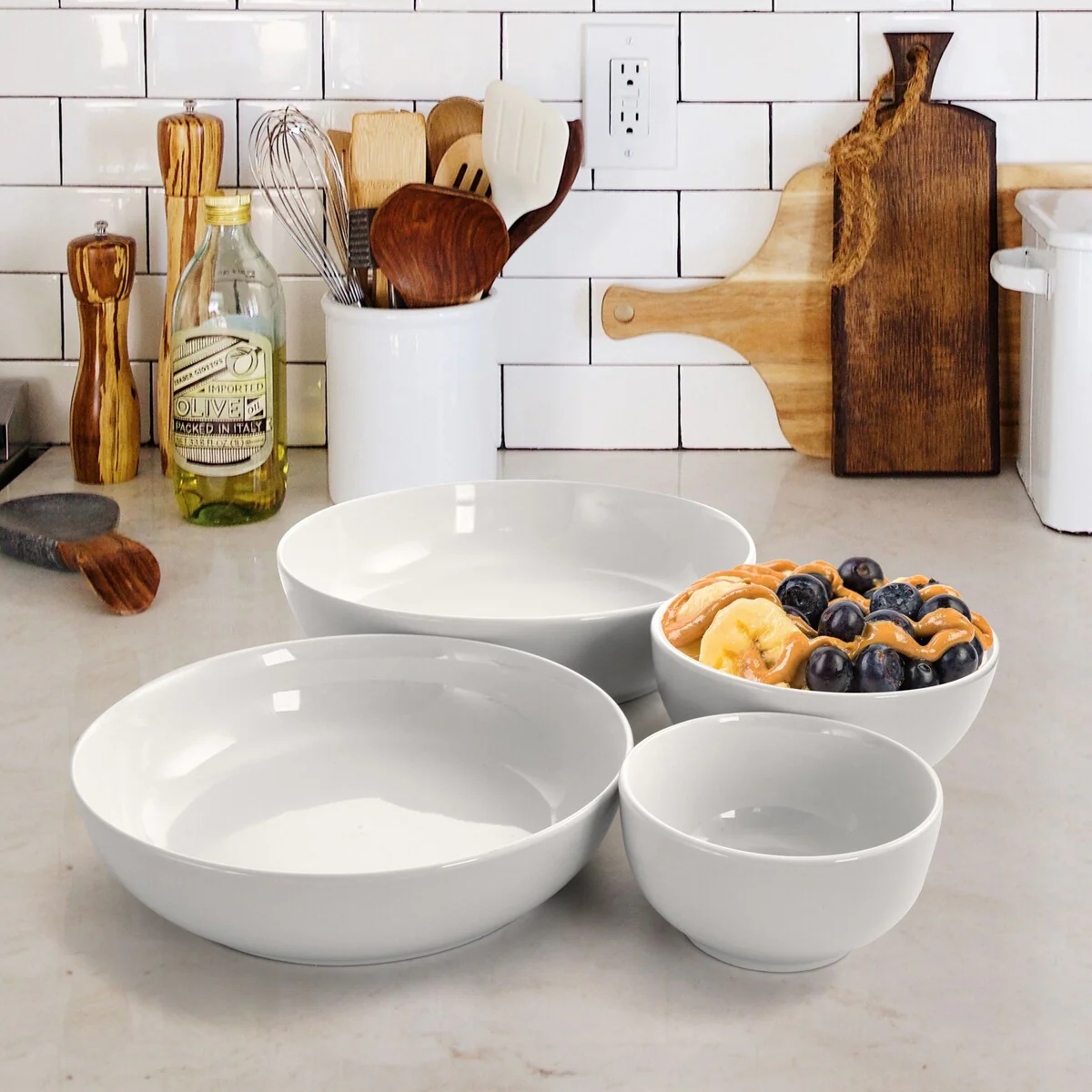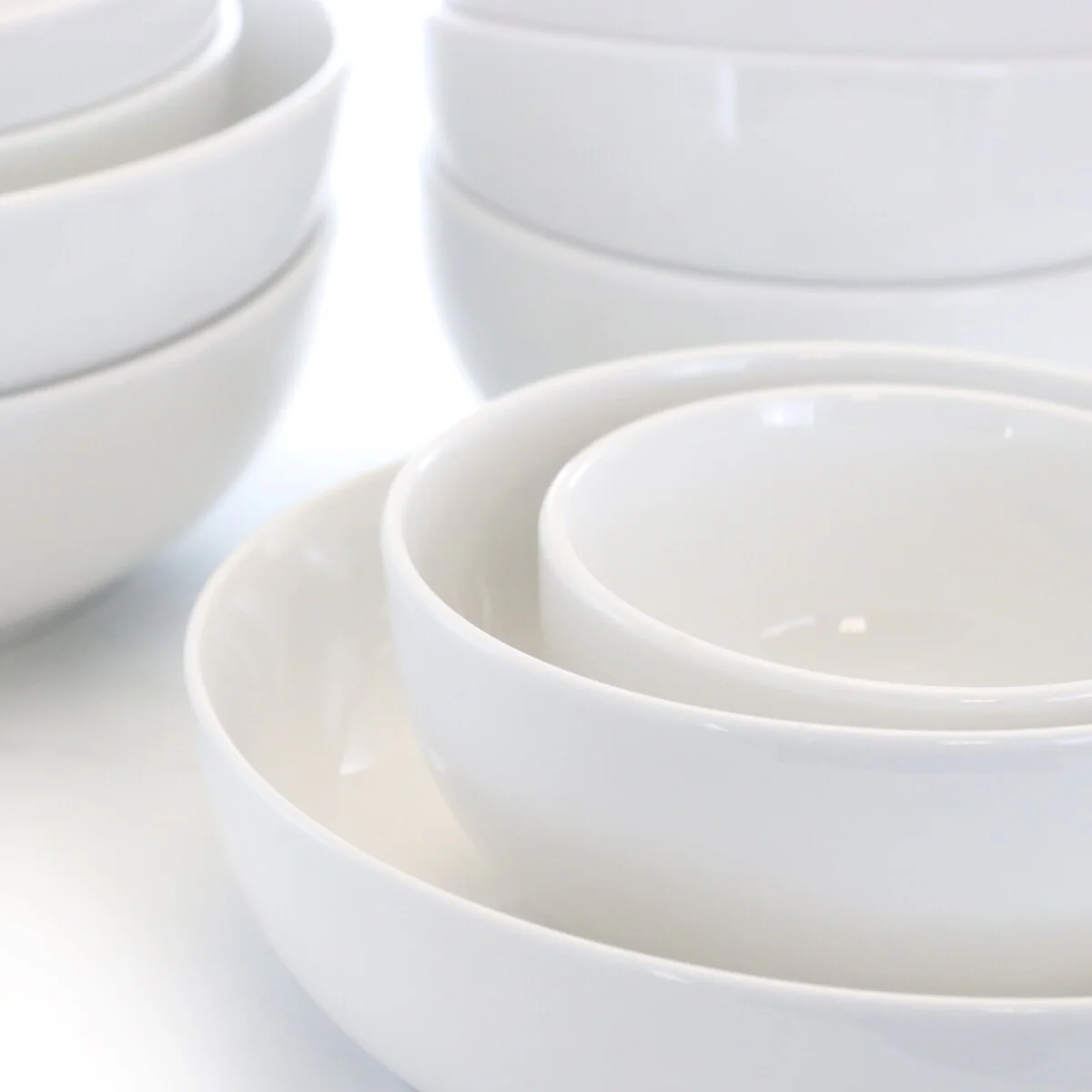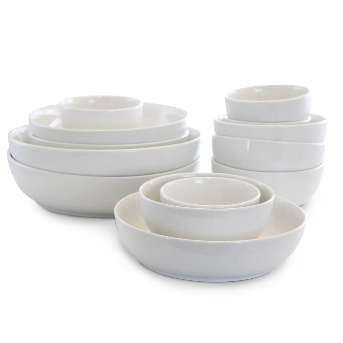 This 14 Piece Round Ceramic Bowl Set is a great dinnerware essential with its large array of bowls. Serve soups, salads, pasta, and other saucy dishes plated in a classy white bowl that brings out the color of the meal. The ceramic make allows this table setting to be dishwasher safe for easy cleaning and to be microwave safe for fast heating. Durable yet elegant, the glossy finish beautifies the tableware. The bowl set is perfectly suitable for special occasions and casual evenings.