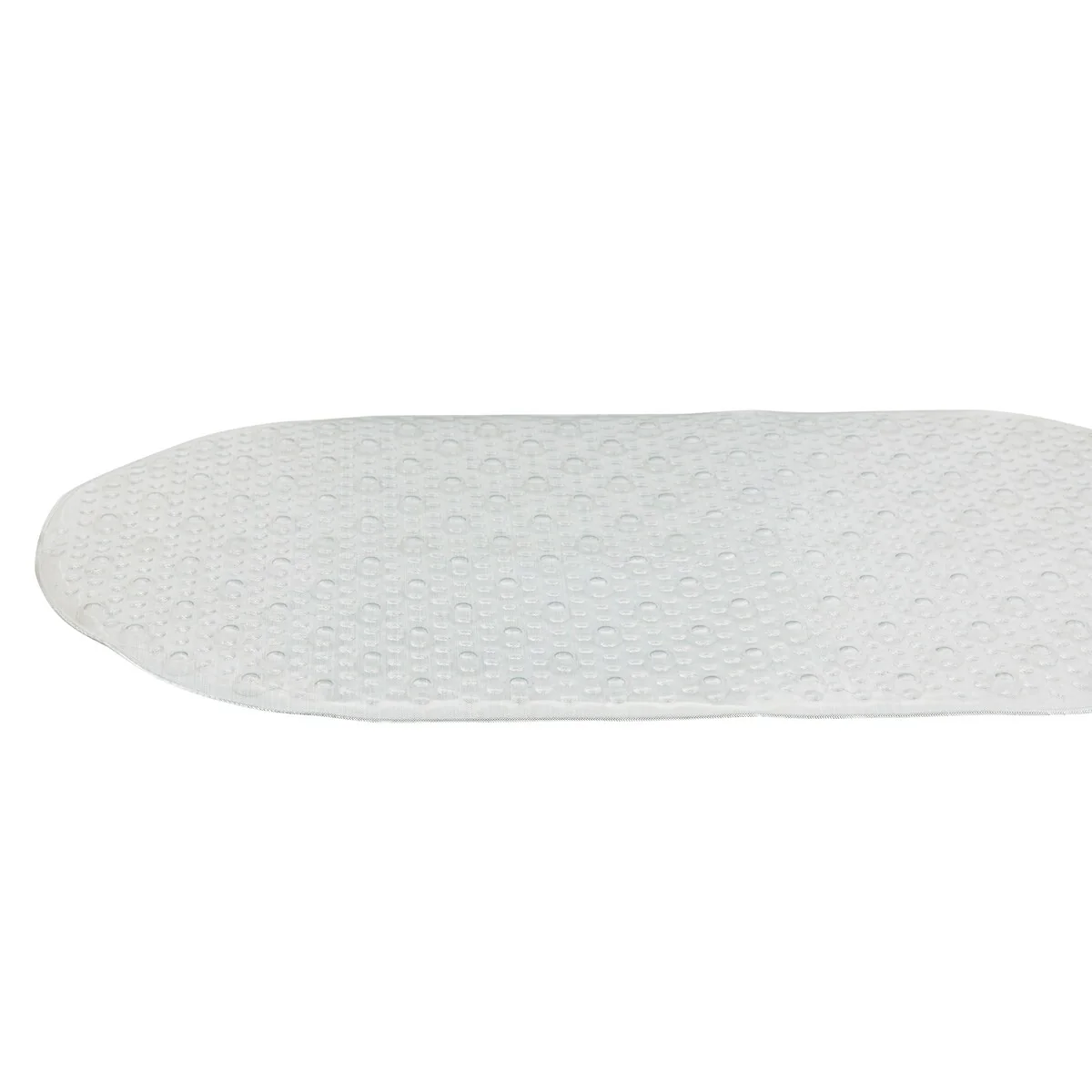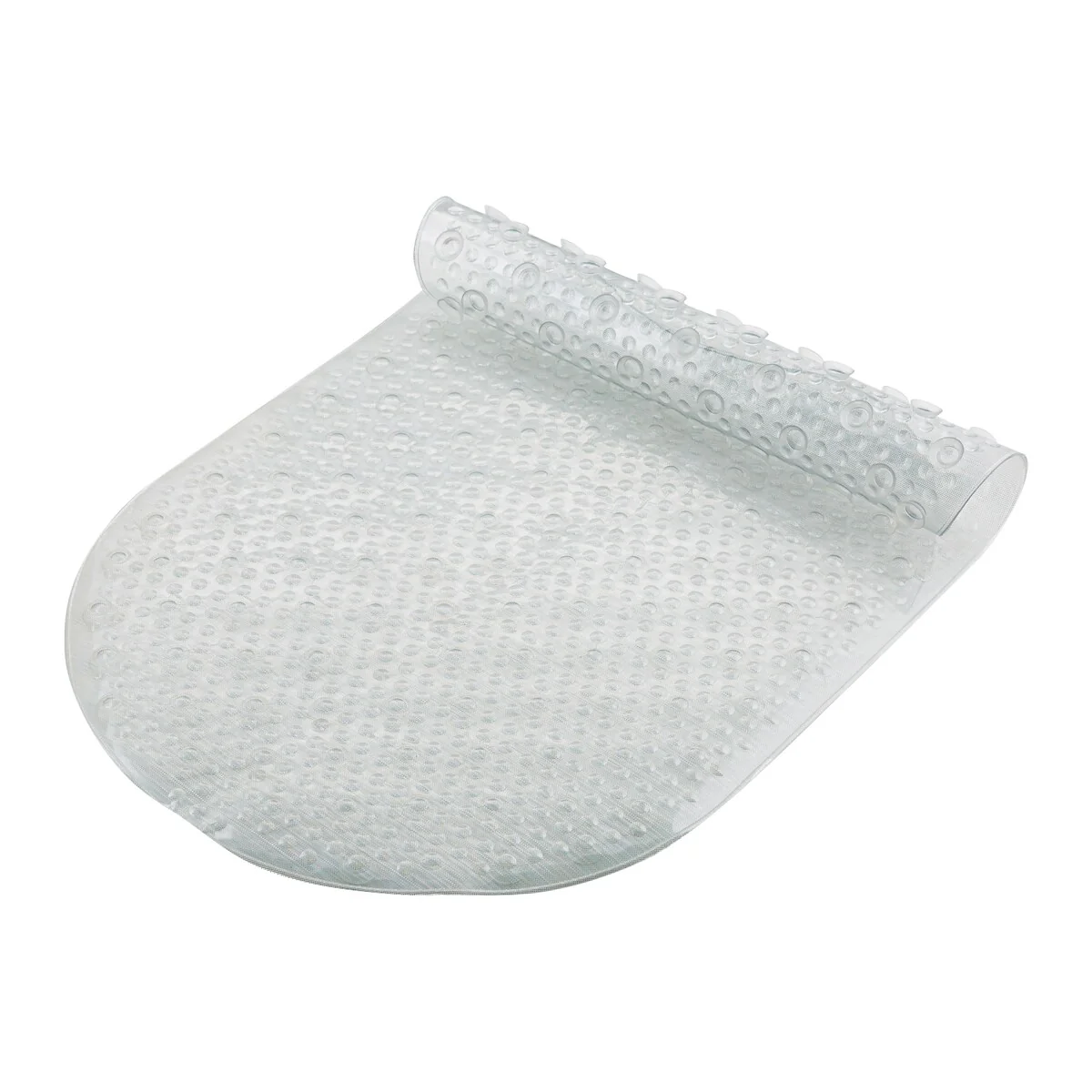 Keep safety and aesthetics in mind with this beautiful Bath Bliss Bath Mat. With a suction cup base, this bath mat is designed to stay in place, creating an anti-slip environment in your tub and shower. The massaging surface is great for your feet, making your shower feel like a spa. The self-draining oval design prevents water back up and dries fast.