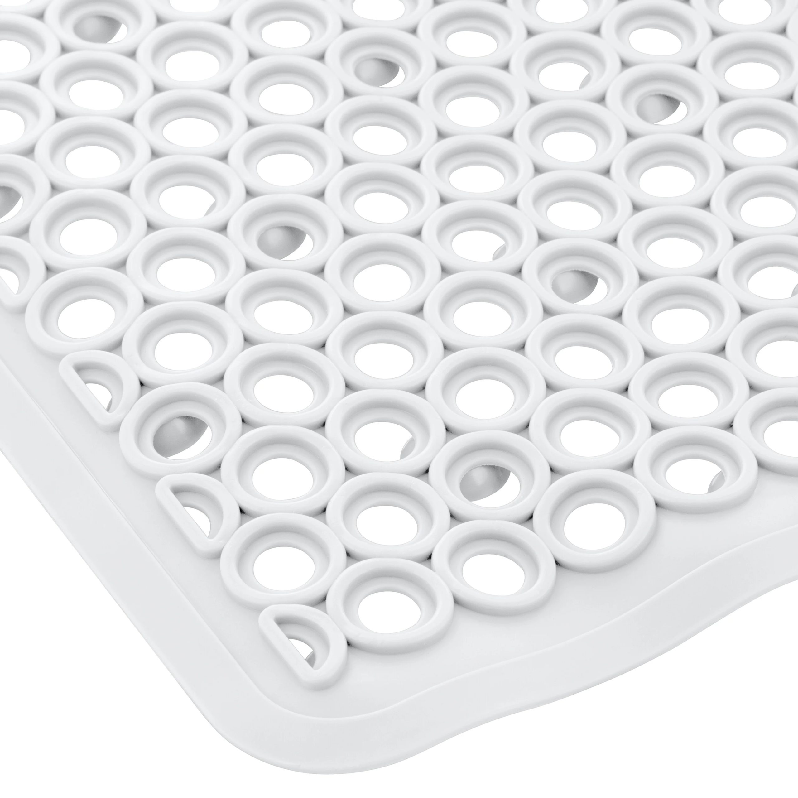 Keep safety and aesthetics in mind with this beautiful Bath Bliss Self-Draining Bathmat. With a suction cup base, this bathmat is designed to stay in place, creating an anti-slip environment in your tub and shower. The self-draining design prevents water back up and dries fast to keep your shower clean. This bathmat is designed phthalate free to help lower your carbon footprint. It is made for safety, comfort, and built to last. Every shower could use a Bath Bliss bathmat!