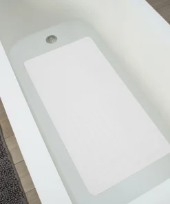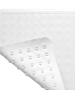 Use the Bath Bliss bath mat in your tub or shower for extra safety. The Jumbo size provides extra coverage in your whole tub or shower. The anti-slip design is achieved using a suction cup underside that secures to any flat surface. The textured surface is for safety as well as comfort. This mat is machine washable and mildew resistant for an easy clean. The white color keeps your tub surface looking clean and modern. It can be rolled up and stored out of the way when not in use too.