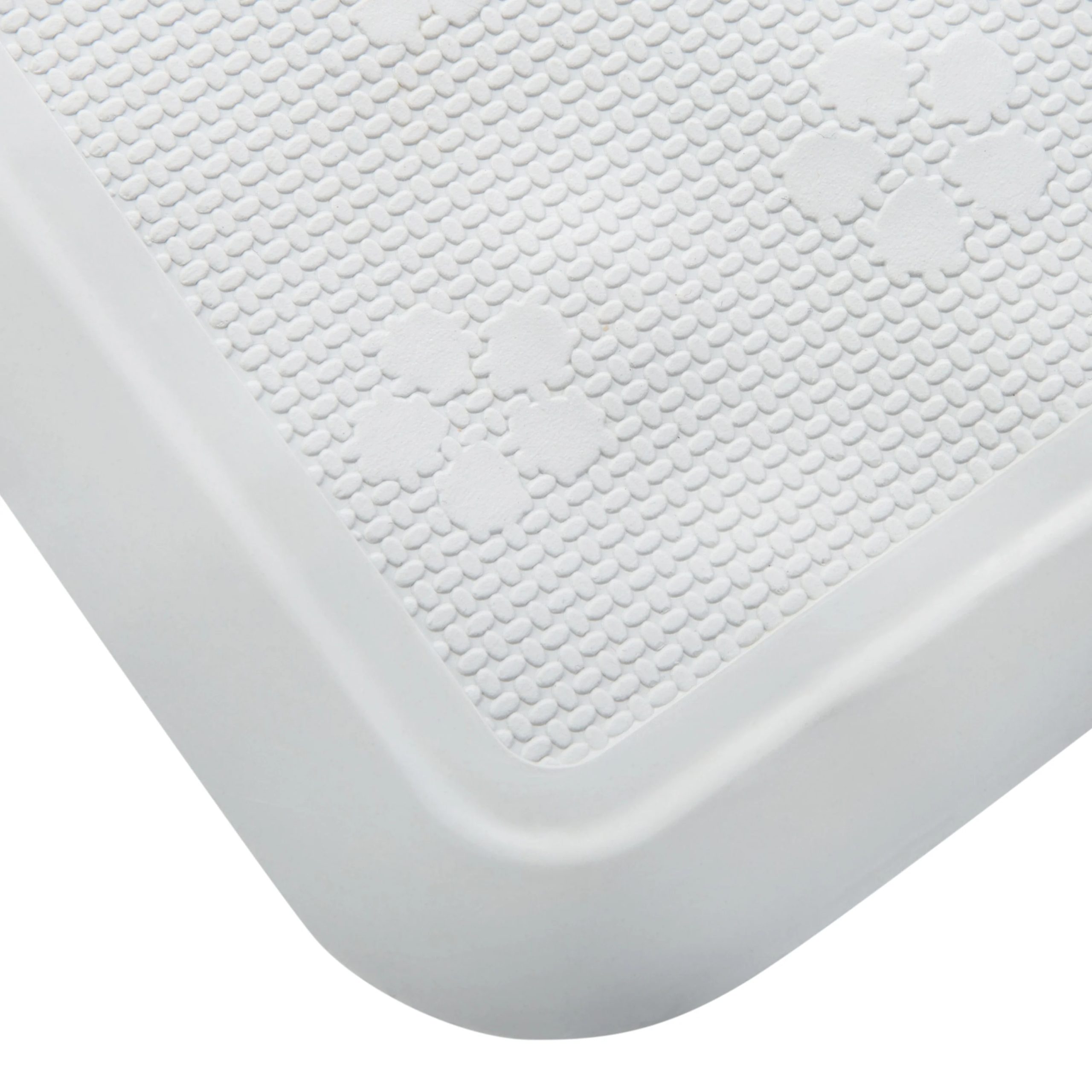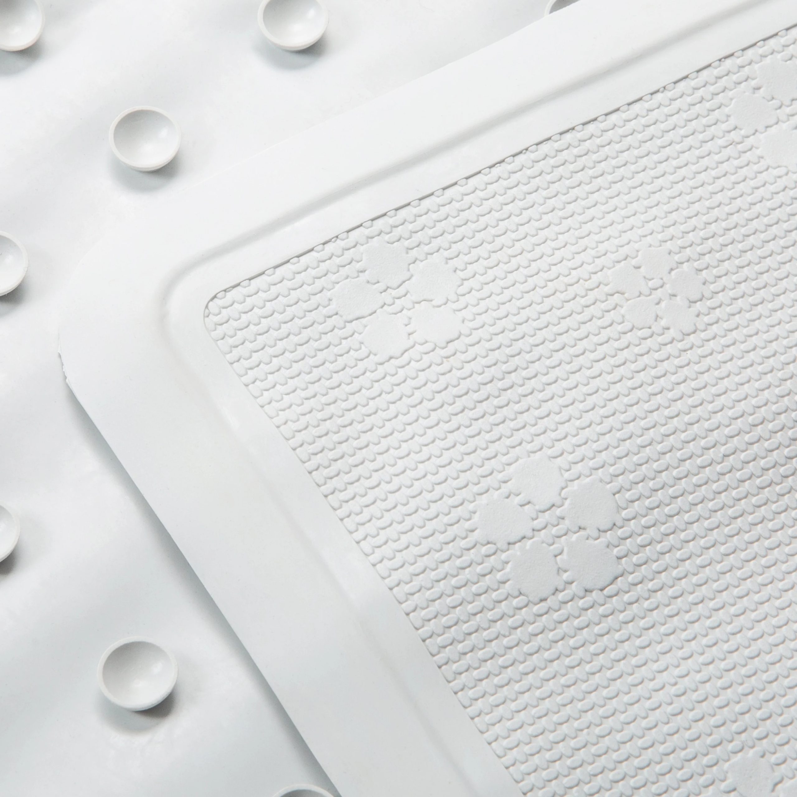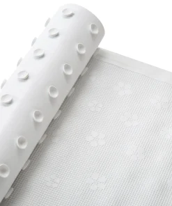 Keep your family safe with this Bath Bliss non-slip bath mat. With its non-slip textured surface falls and slips are prevented in the bath or shower. The Rubber material prevents mildew growth keeping your bathroom fresh and clean. The white design makes this mat blend in nicely with your bathroom decor. This bath mat is made for safety , comfort and built to last.