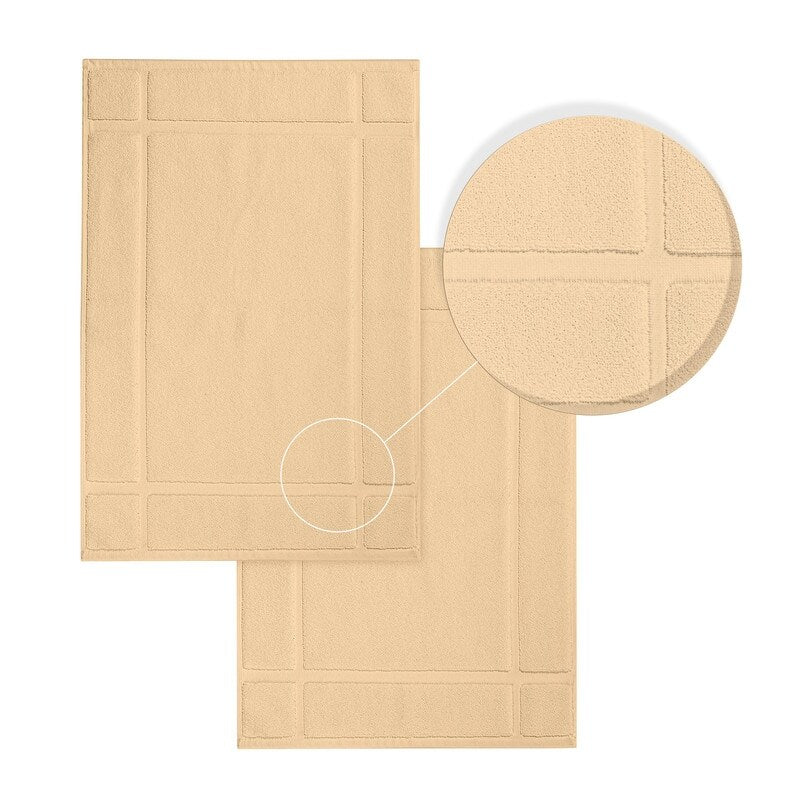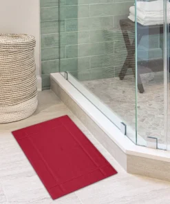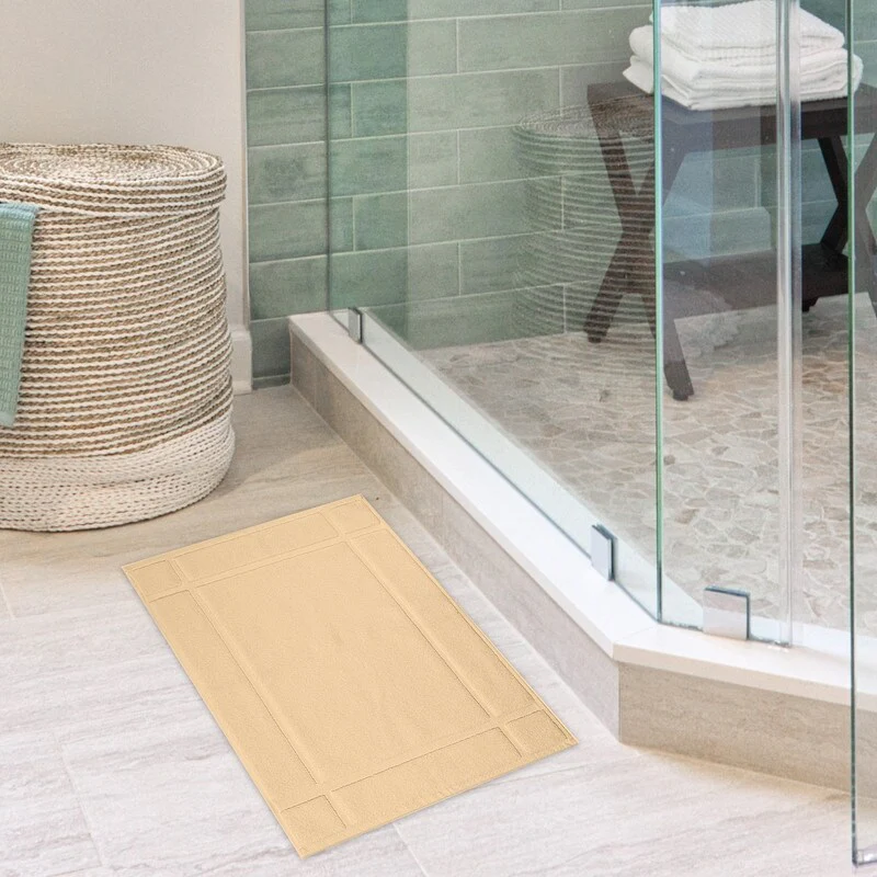 Our bath mat is composed of a 1350 GSM incredibly soft and warm cotton cloth that provides a snug protector for your feet. The thick bath mat provides relief from the cold floor. The cotton fabric is quite dense and does not easily deflate when used. Mates add luxurious softness and aptitude to your bathroom design. For increased durability and visual appeal, the edges are double-stitched with a banded design.