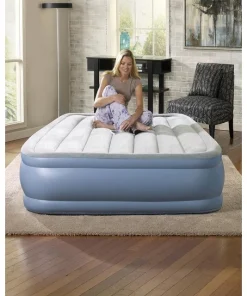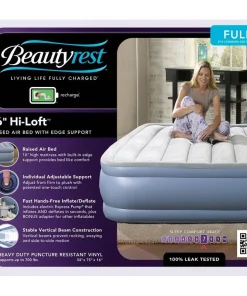 Experience the ultimate plush comfort with the Beautyrest Hi-Loft Inflatable Air Mattress. Perfect for camping, traveling, guests or sleepovers, this air mattress is constructed with a puncture-resistant PVC material and offers individual, adjustable support from firm to plush with patented one-touch control. The electric express pump allows for a hands-free inflate and deflate process, while the stable vertical beam and lower angle beam construction prevents rocking and swaying, ensuring an undisturbed night’s sleep. Measuring at 16 inches in height and 53 inches in width, this mattress can accommodate up to 700 pounds and comes with a sturdy nylon carrying bag for easy storage.