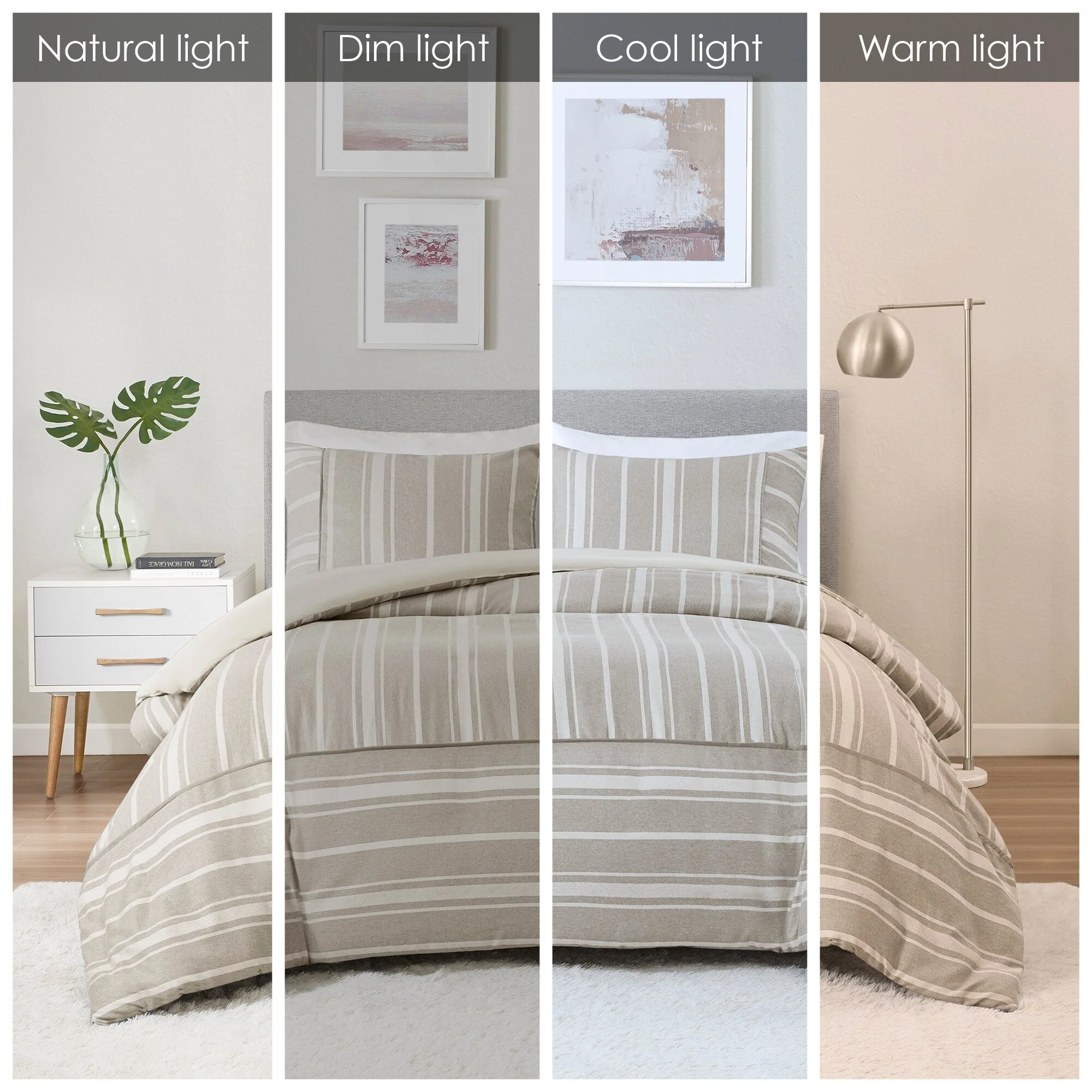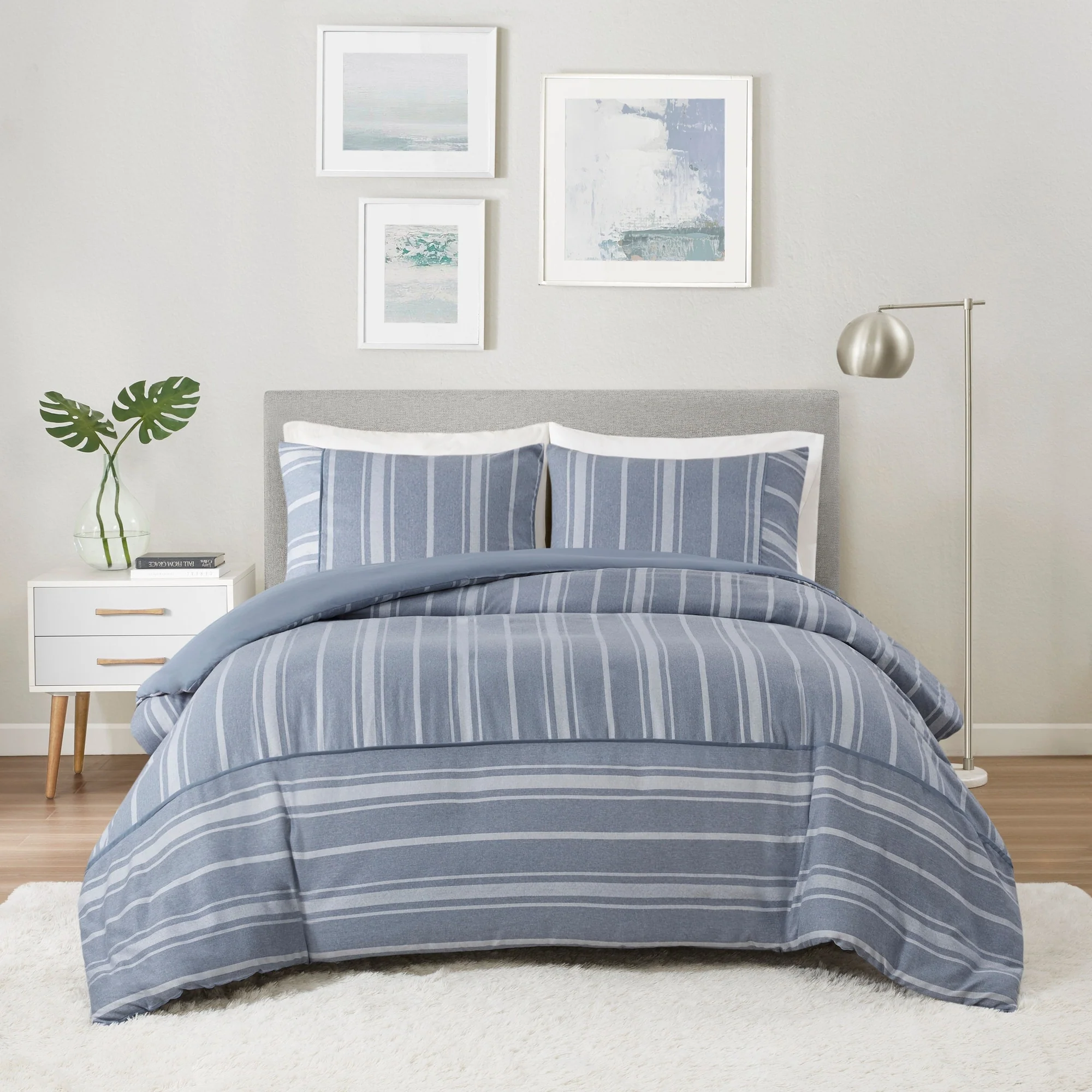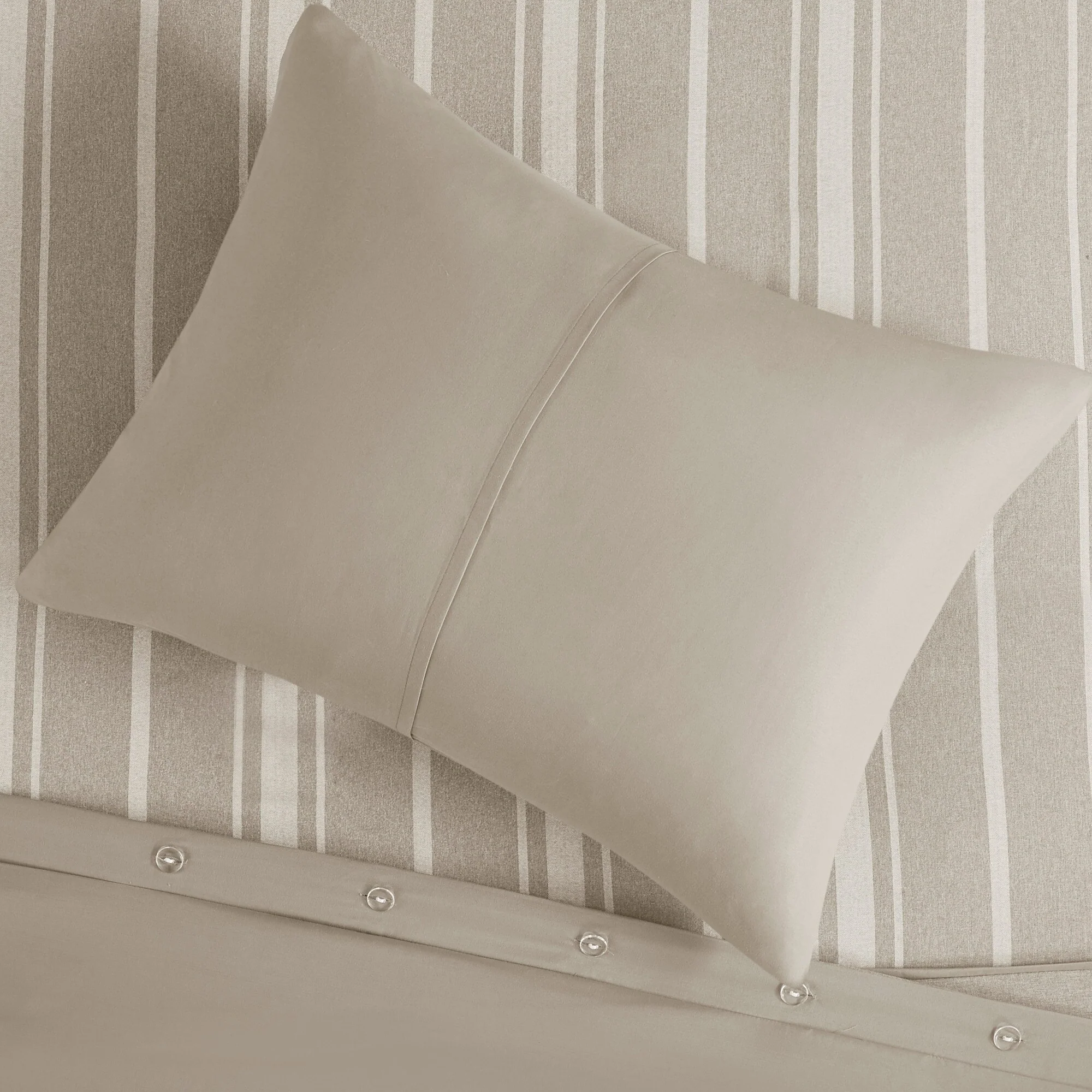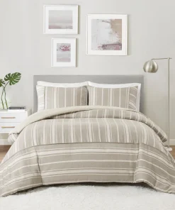A fresh take on a classic design, the Beautyrest Kent duvet cover set introduces a casual look that’s always in style. The duvet cover’s herringbone pattern is paired with a stripe design in a lighter hue for a practical, yet charming allure.