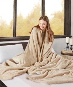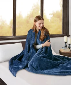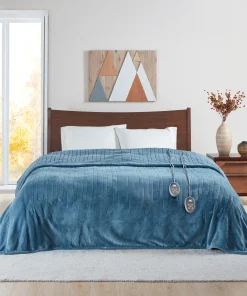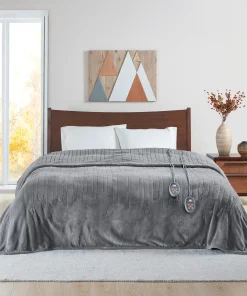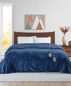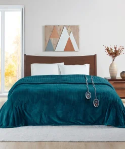 Sleep in ease in our Beautyrest Heated blanket with Secure Comfort Technology, which is designed to virtually eliminate ElectroMagnetic Field emissons. The soft flexible wires and ultra-soft microlight plush fabric ensures your comfort. It reverses to a soft berber that adds extra warmth and loft. The heated blanket features 10 hour auto shut off and has 20 different temperature settings so you can customize the precise temperature you want. It’s also machine washable for easy care and OEKO-TEX certified, meaning it does not contain any harmful substances or chemicals to ensure quality comfort and wellness. Twin and Full size have one controller, Queen and King size have 2 controllers. Includes manufacturer’s 5-year warranty. Friendly reminder: to ensure the longevity of your heated blanket, always straighten and lay the wires flat after washing.