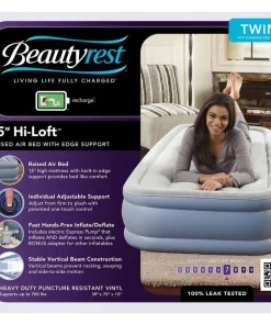The Beautyrest name is one that has proven to have truly incredible sleep solutions. With the Simmons Hi-Loft Inflatable Air Mattress you can now enjoy the plush, bed-like comfort offered from this unique air mattress. Whether it be for camping, RVs, traveling, guests or sleepovers, you can trust that the Simmons Hi-Loft Air Mattress is a reliable solution for your needs. The bed rapidly inflates and deflates using the included electric express pump, giving you an extra mattress in just seconds or the ability to quickly deflate and store it away at a moment’s notice. The Simmons Hi-Loft Inflatable Air Mattress allows you to easily adjust from firm to plush with a patented one-touch control system which makes finding the ideal level of comfort simple. The vertical beam construction offers stability and prevents rocking, swaying, and side-to-side motion for an undisturbed night’s rest. Whatever your need may be you can rest assured knowing that Simmons offers your guest, family, or whoever else may need it a supportive and comfortable night’s sleep.