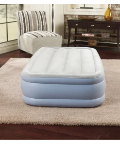 The Beautyrest name is one that has proven to have truly incredible sleep solutions. With the Simmons Hi-Loft Inflatable Air Mattress you can now enjoy the plush, bed-like comfort offered from this unique air mattress. Whether it be for camping, RVs, traveling, guests or sleepovers, you can trust that the Simmons Hi-Loft Air Mattress is a reliable solution for your needs. The bed rapidly inflates and deflates using the included electric express pump, giving you an extra mattress in just seconds or the ability to quickly deflate and store it away at a moment’s notice. The Simmons Hi-Loft Inflatable Air Mattress allows you to easily adjust from firm to plush with a patented one-touch control system which makes finding the ideal level of comfort simple. The vertical beam construction offers stability and prevents rocking, swaying, and side-to-side motion for an undisturbed night’s rest. Whatever your need may be you can rest assured knowing that Simmons offers your guest, family, or whoever else may need it a supportive and comfortable night’s sleep.