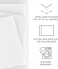 Pull together the contemporary charm of your bedroom decor with this Becky Cameron sheet set. The sophisticated stippled pattern lends an ornate touch to your bed, while the ultra-soft microfiber feels luxurious on your skin. Featuring antimicrobial fabric for sleepers with sensitive skin, this machine-washable sheet set boasts a wrinkle-free design for easy maintenance.