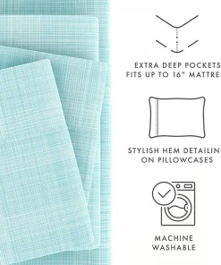 - 16-inch deep pocket fitted sheets with fully elasticized corners for a perfect fit
