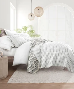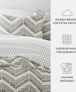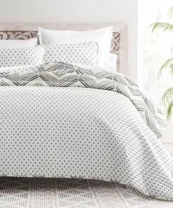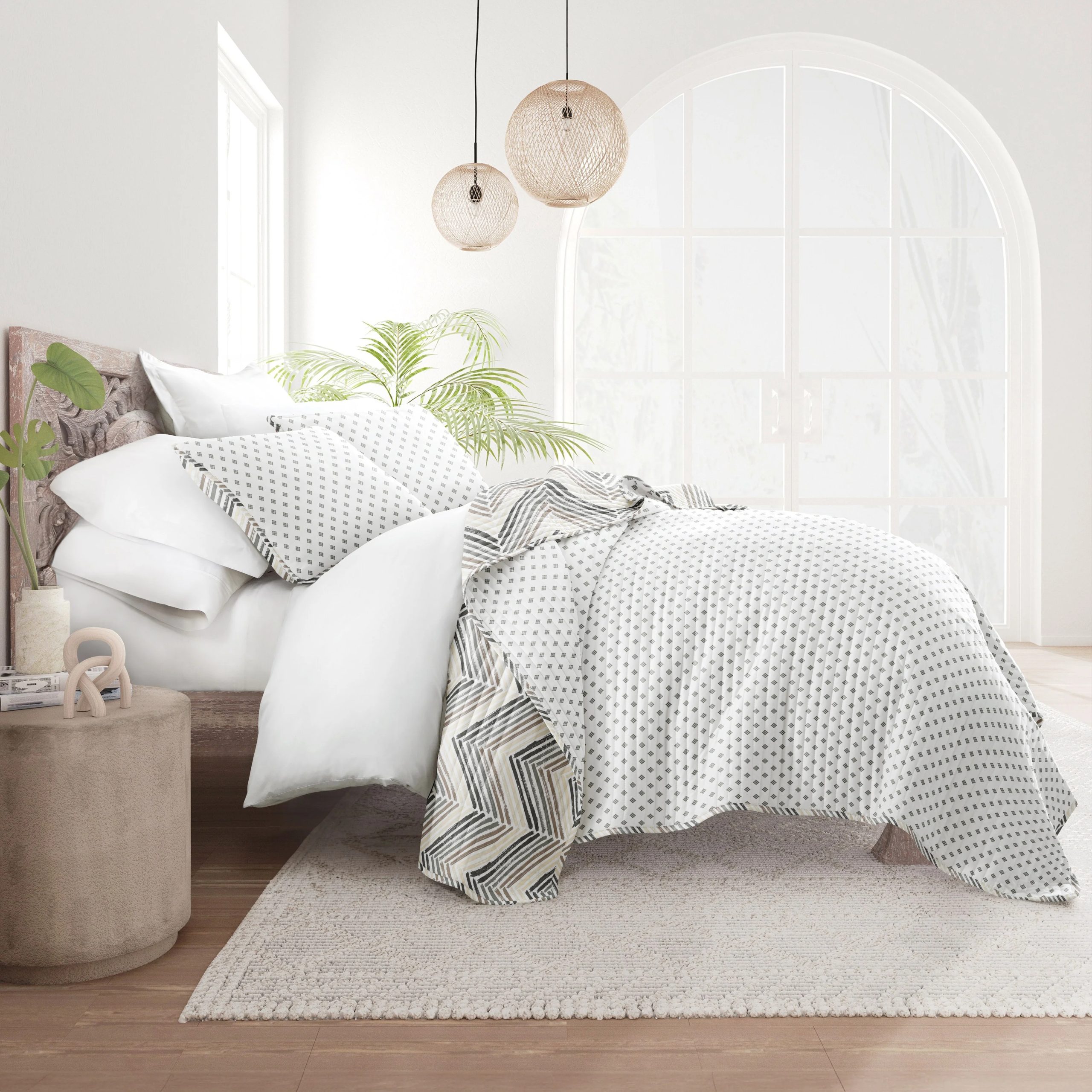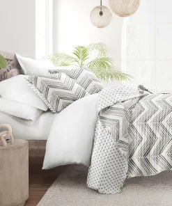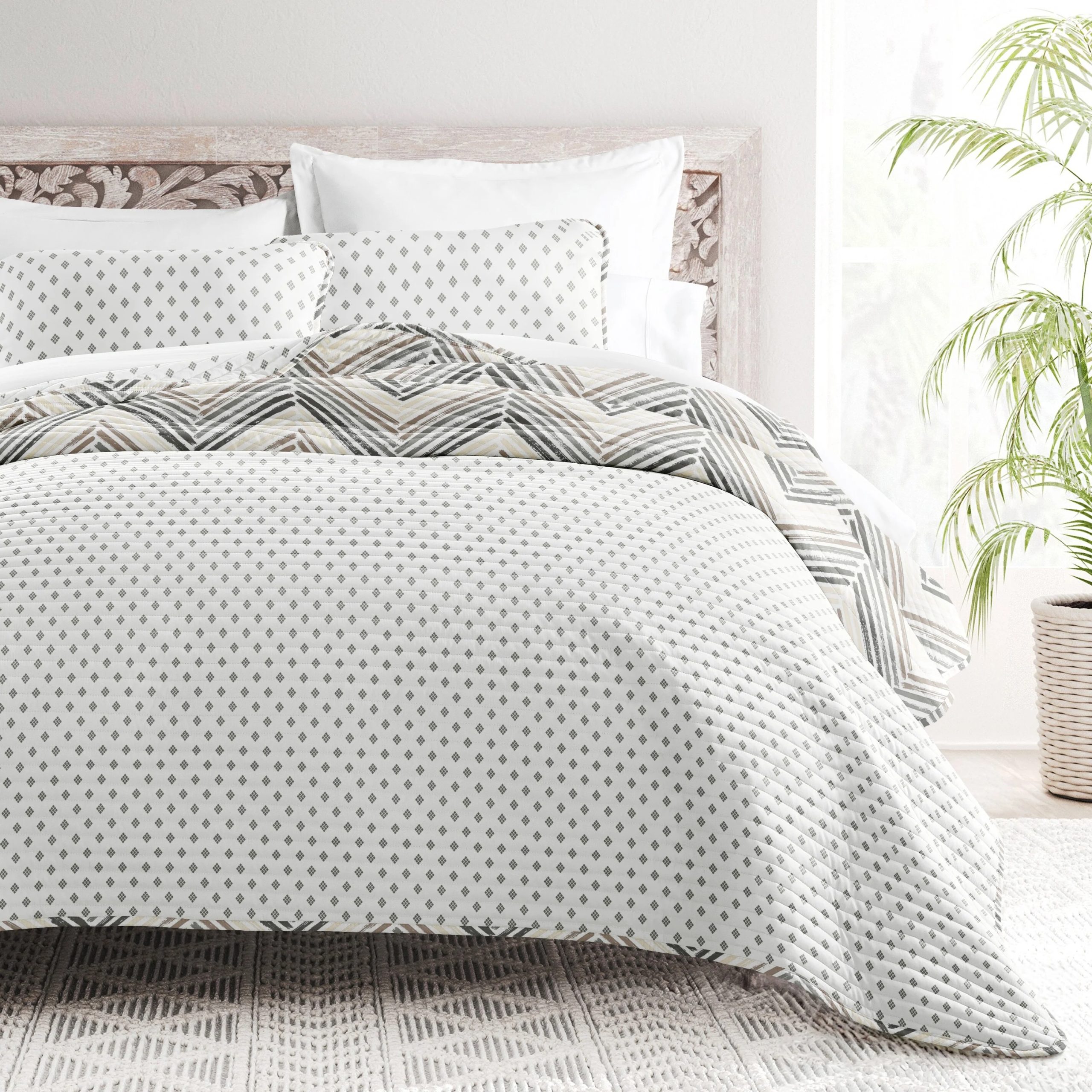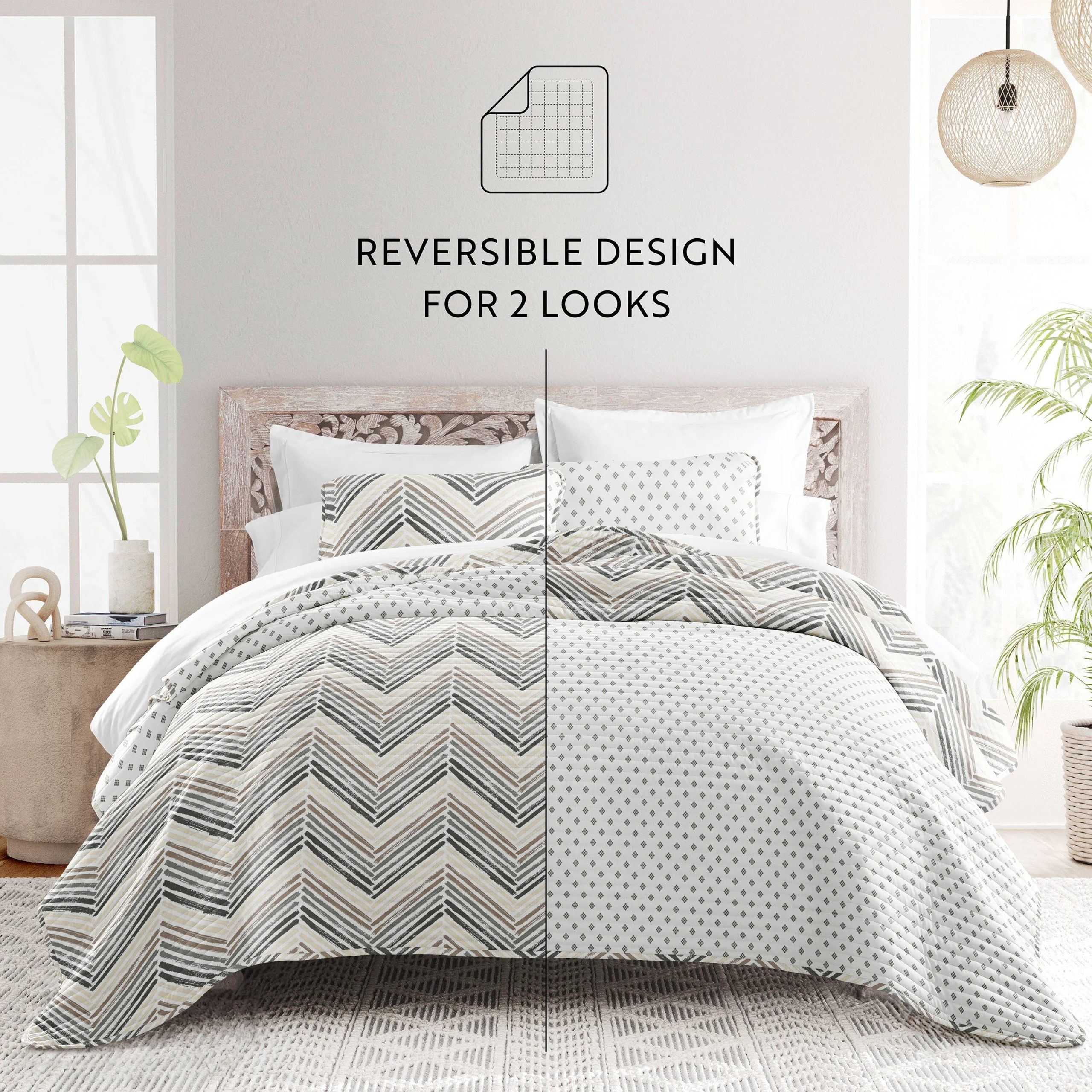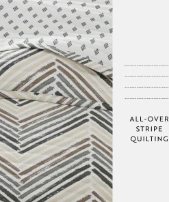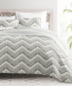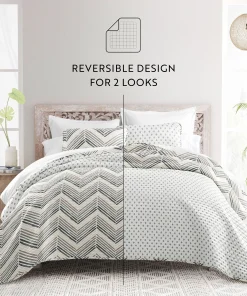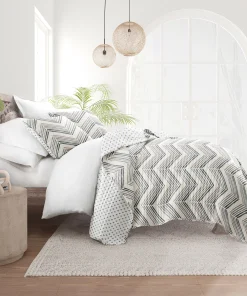 Add a cozy yet stylish touch to your bedroom with this Becky Cameron All Season 3 Piece Diamond Chevron Reversible Quilt Set with Shams. Made from 100% imported 95 GSM microfiber, the quilt features a geometric print with a painted chevron pattern in neutral tones and is double-brushed for an incredibly soft and cozy feel. The subtle quilting lines add dimension to the quilt while the reversible design allows for versatility in styling. This quilt set is also filled with artificial down, making it a great option for those with allergies or sensitive skin.
