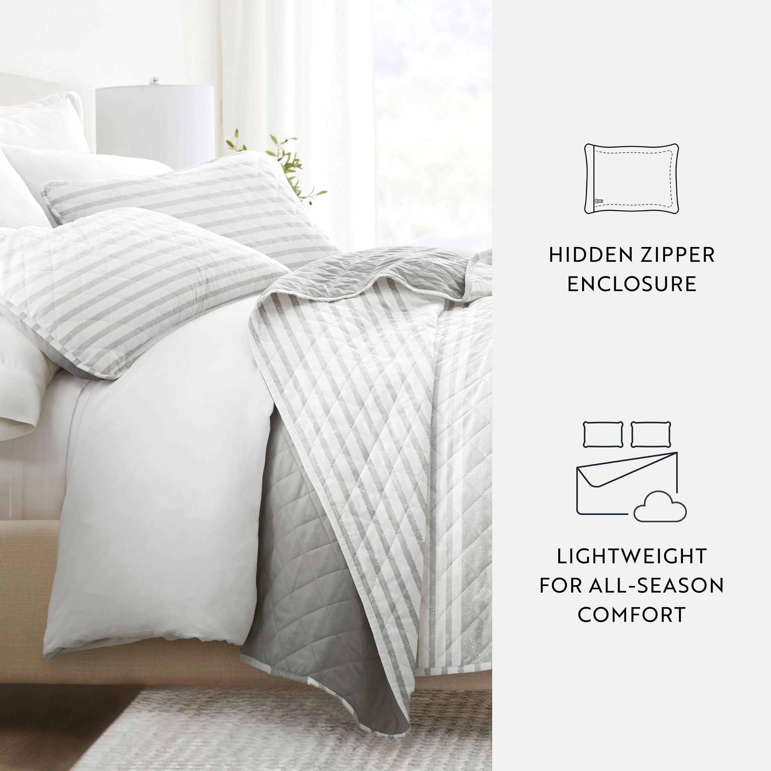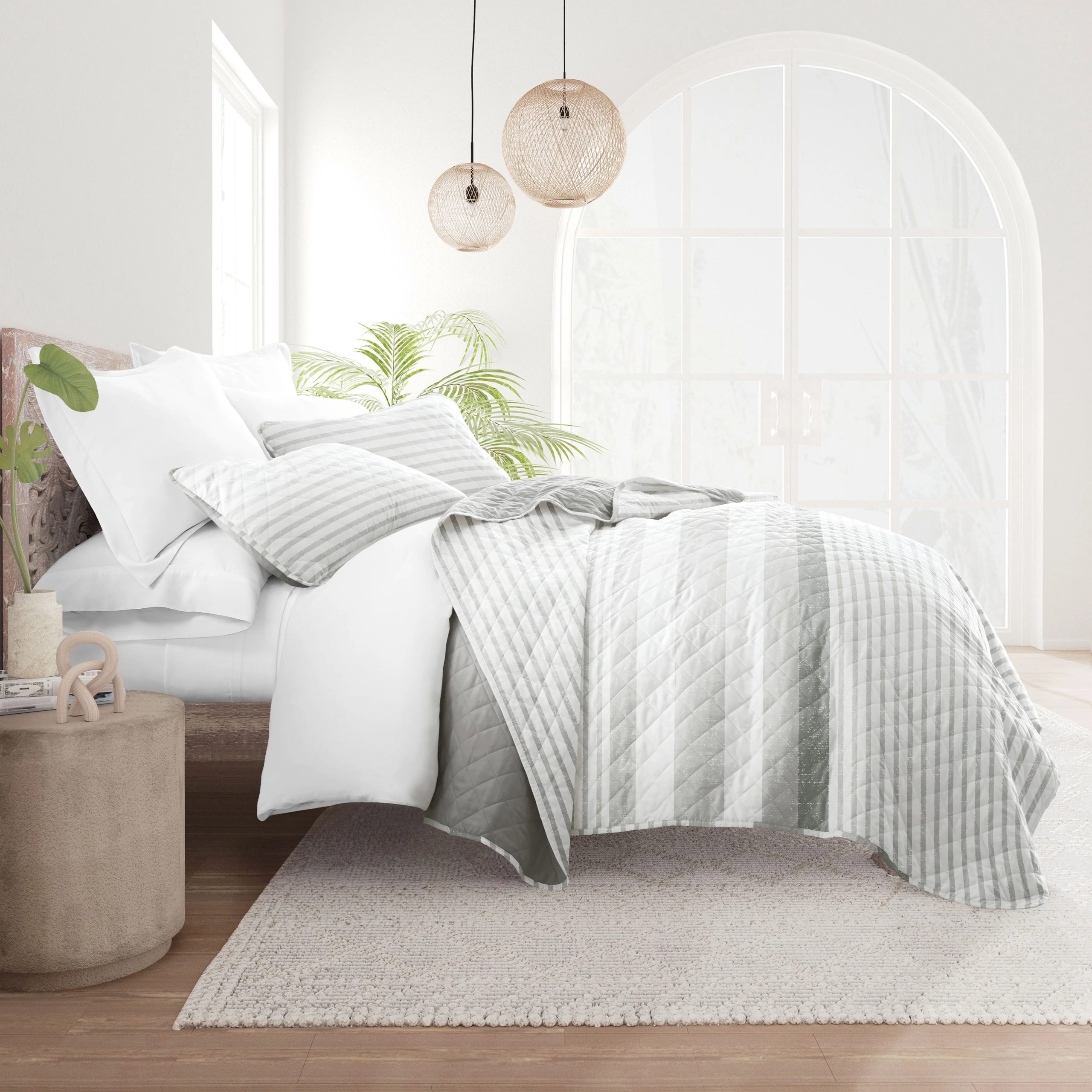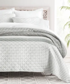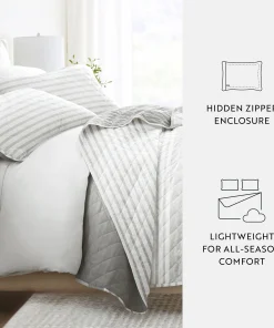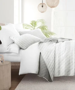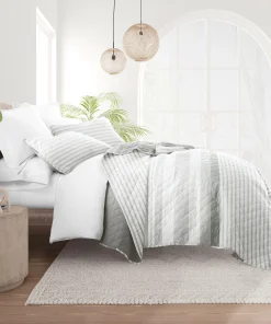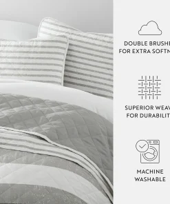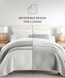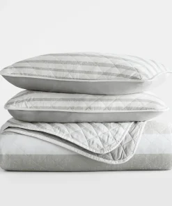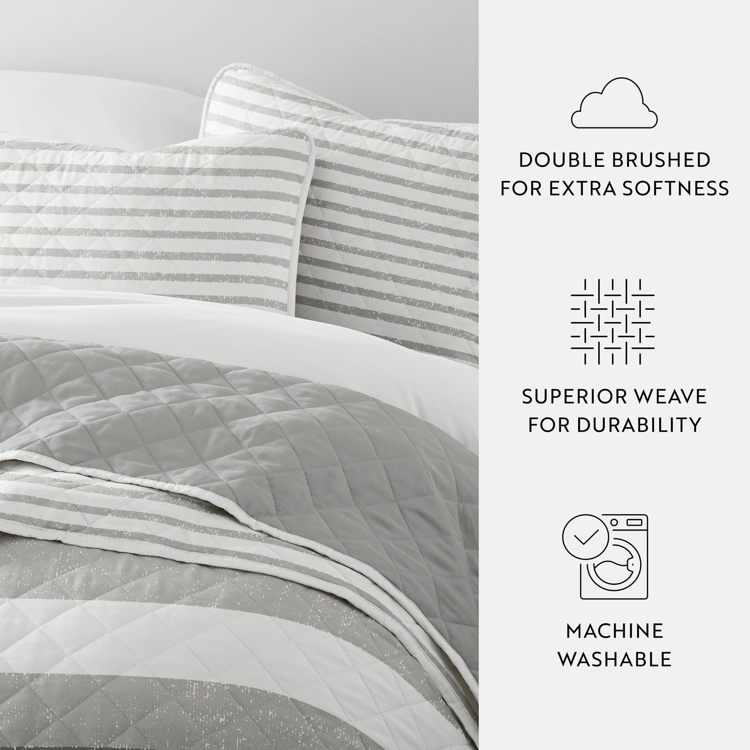 Experience comfort and style with the Becky Cameron All Season 3 Piece Summer Stripes Reversible Quilt Set with Shams. This super soft and cozy microfiber quilt set features regatta thick and thin stripes with beautiful diamond quilting in natural colors, adding dimensions to your bedroom. The quilt is generously filled with artificial down and double brushed for that extra softness. Plus, the set is easy to care for and machine washable.
