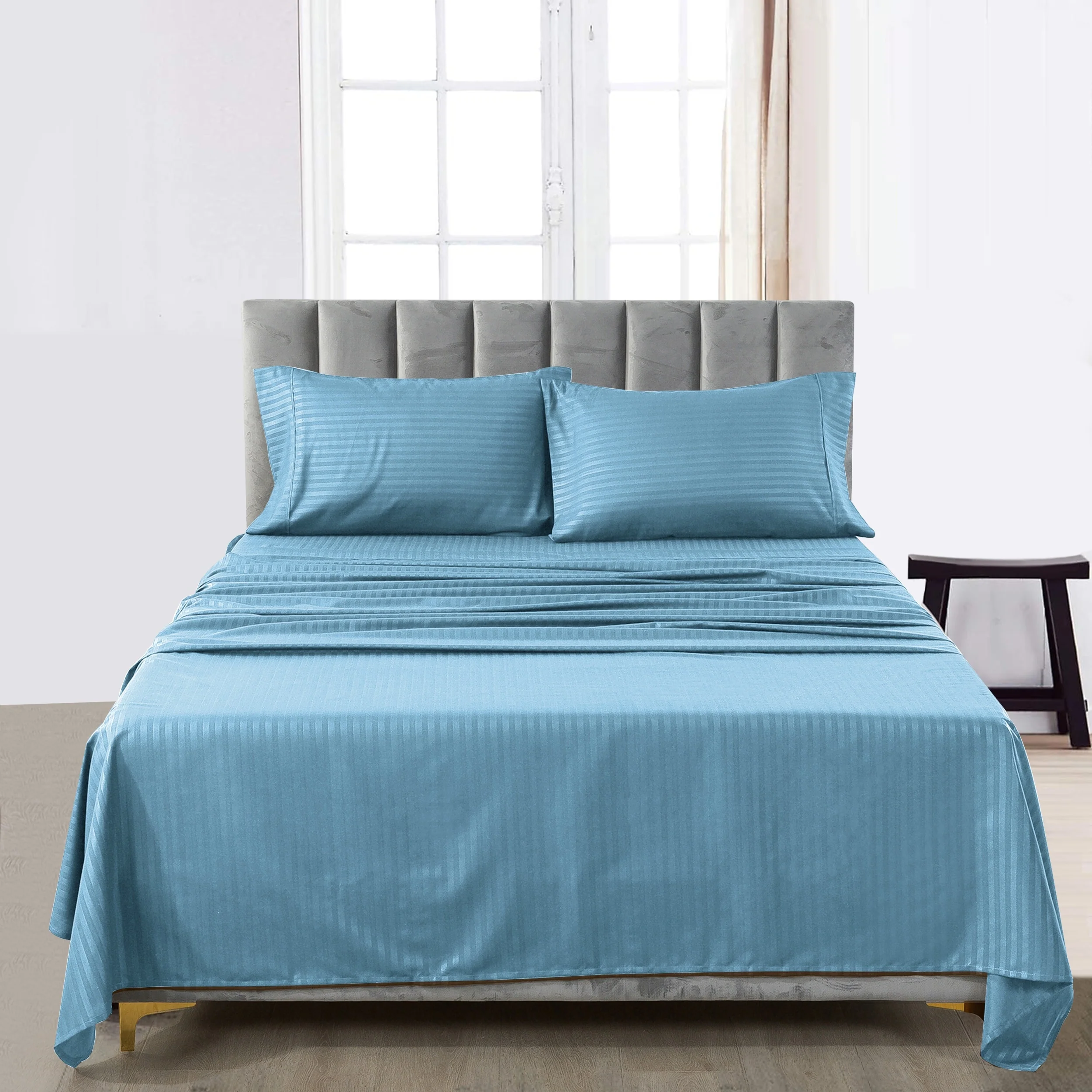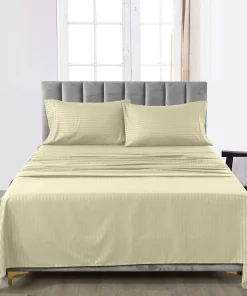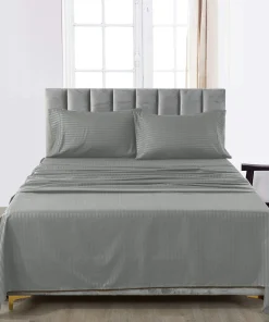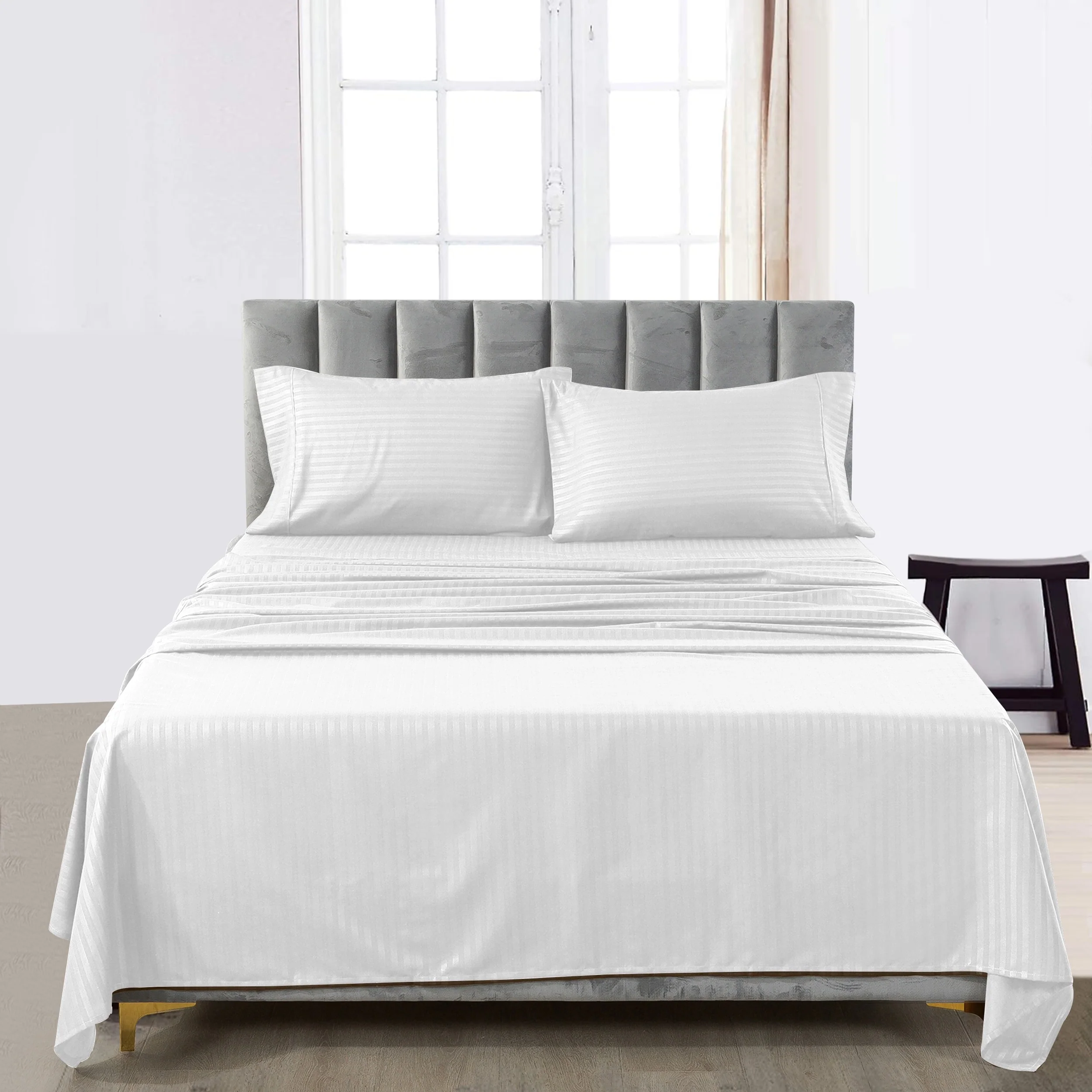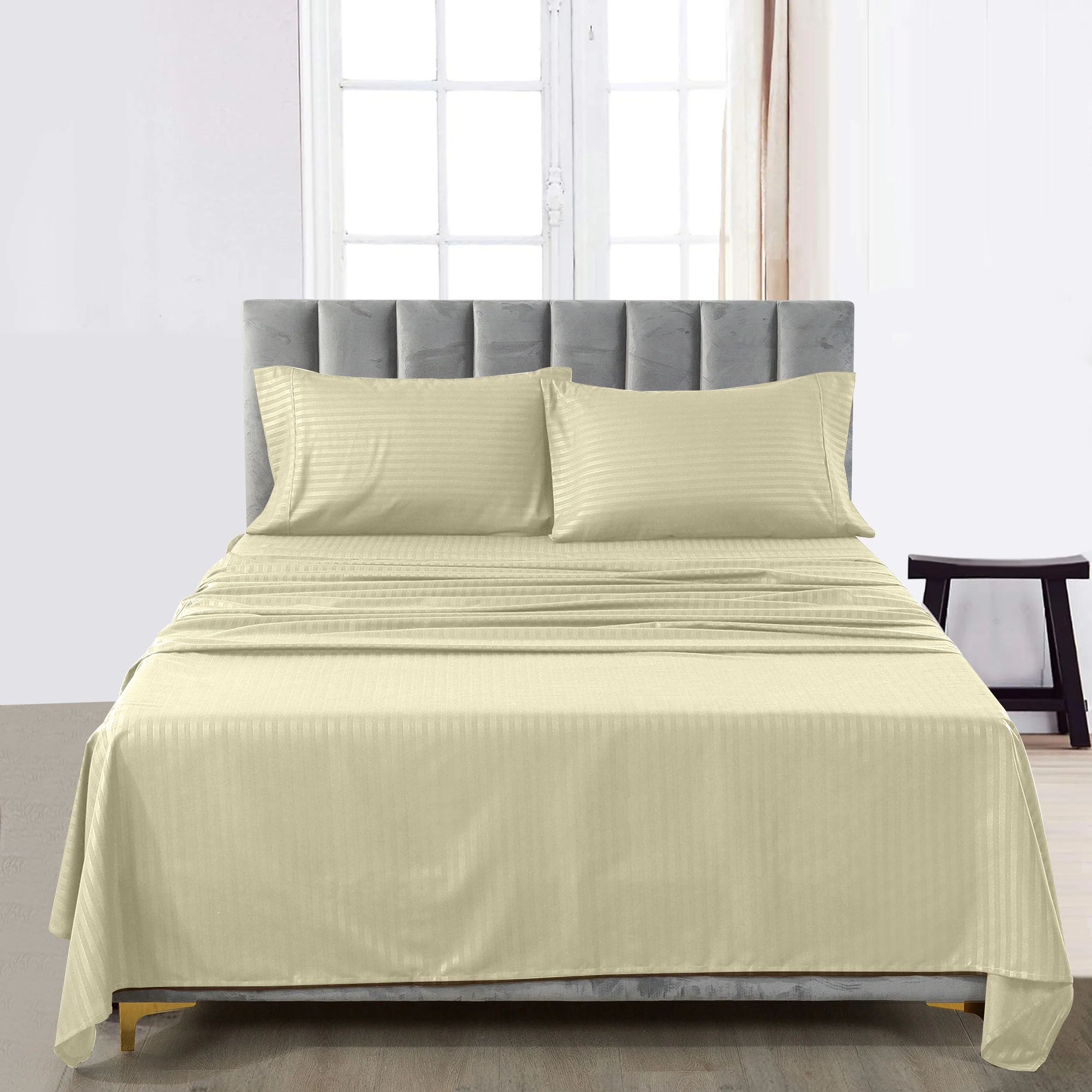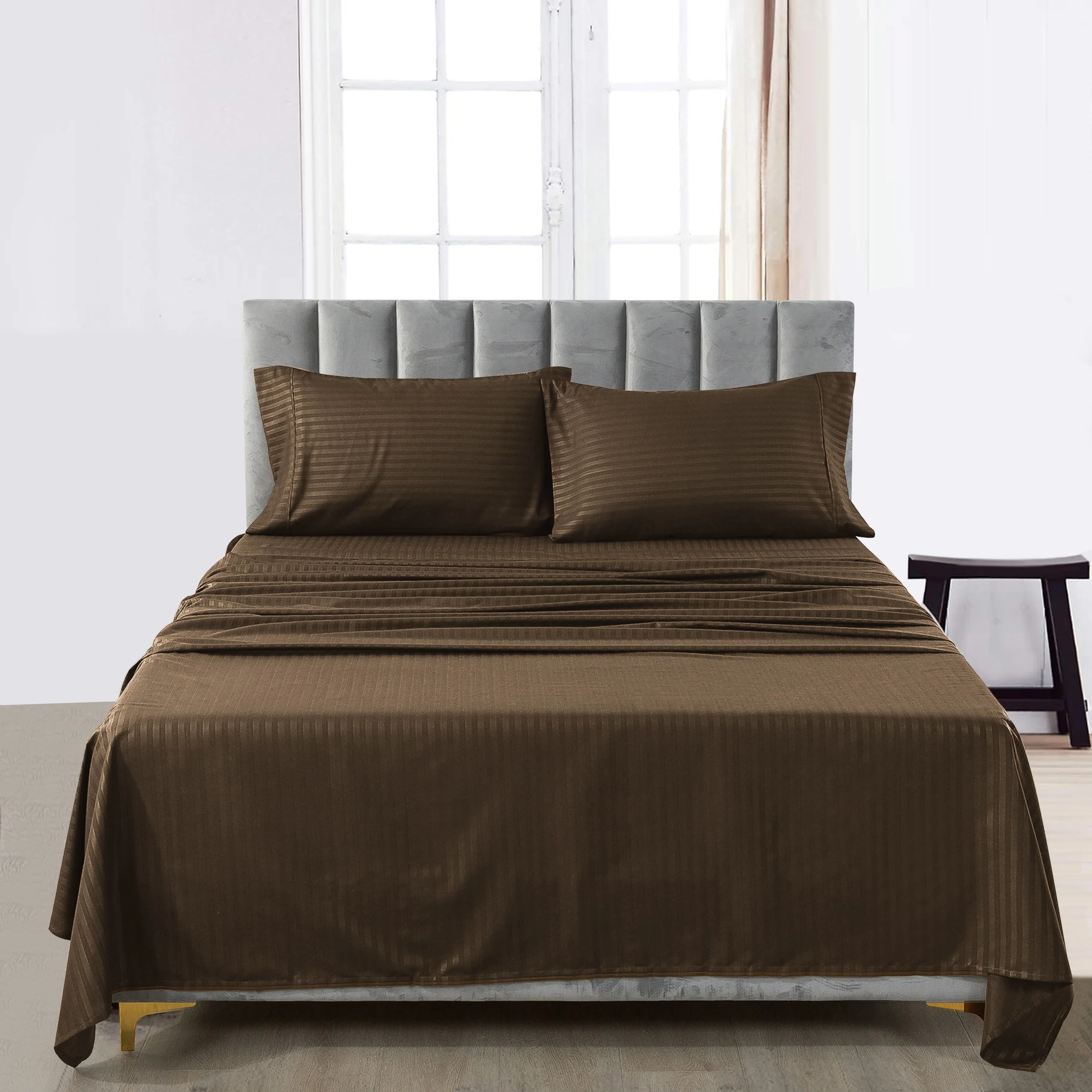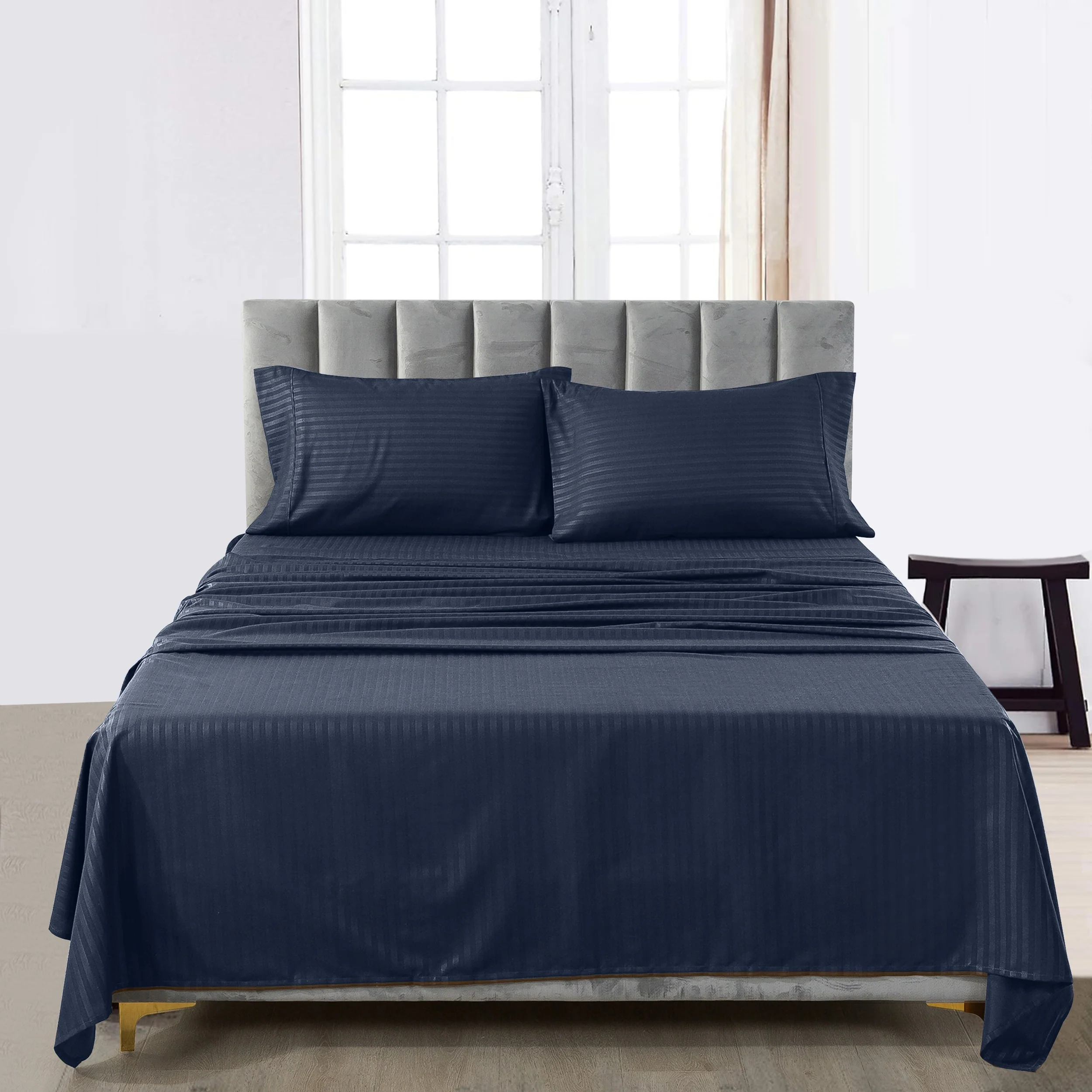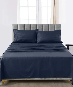 Experience luxurious comfort with our Striped Brushed Microfiber 4-Piece Bed Sheet Set. Crafted from soft brushed microfiber, these sheets are hypoallergenic, fade-resistant, and wrinkle-resistant, making them a comfortable and elegant addition to any bedroom. With deep pockets and fully elasticized fitted sheets, they offer a perfect fit for mattresses up to 16 inches thick. Available in classic stripe pattern and a variety of vibrant colors to match your bedroom decor.
