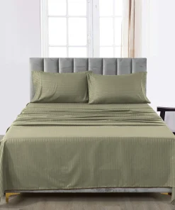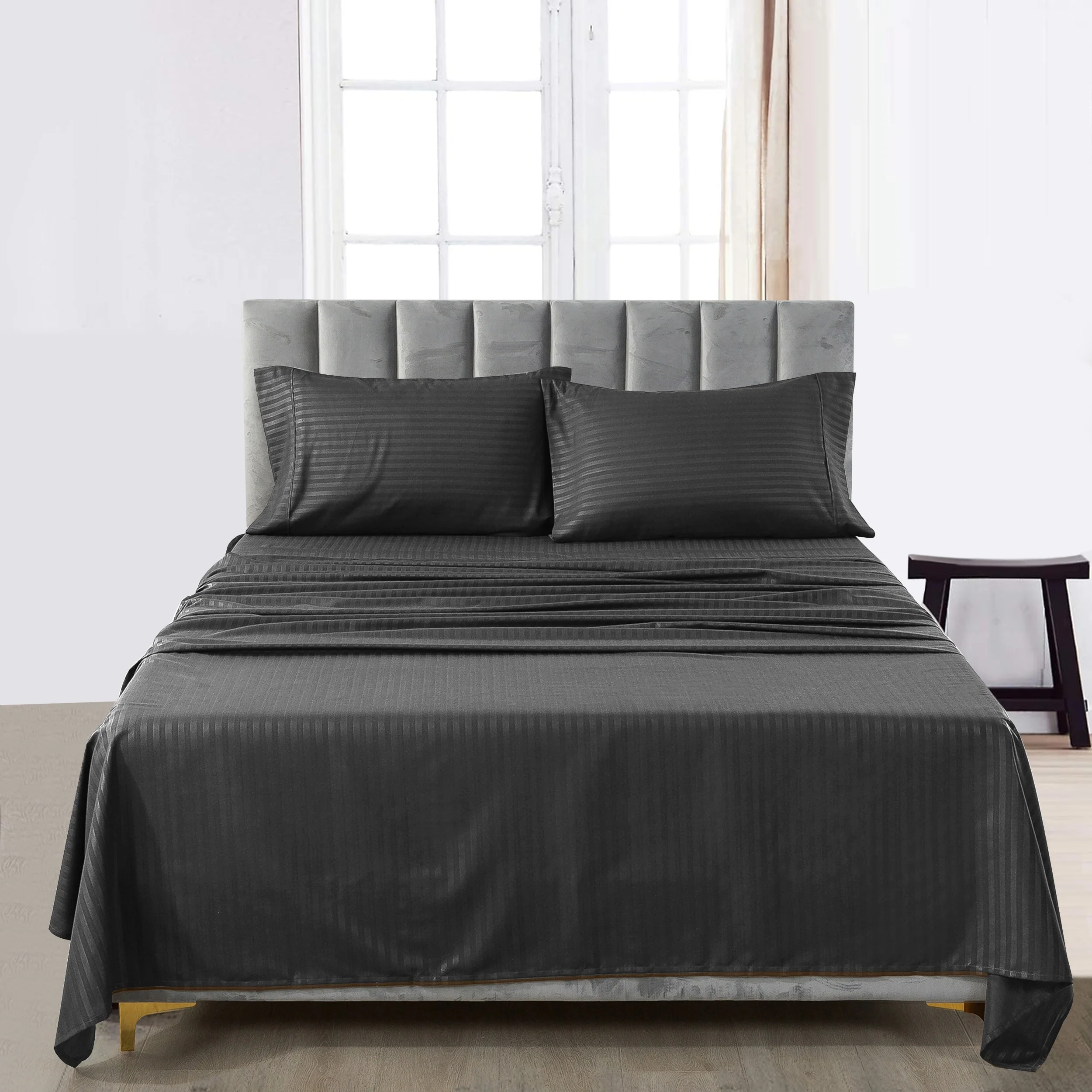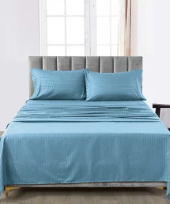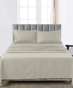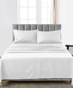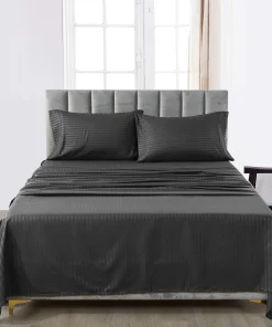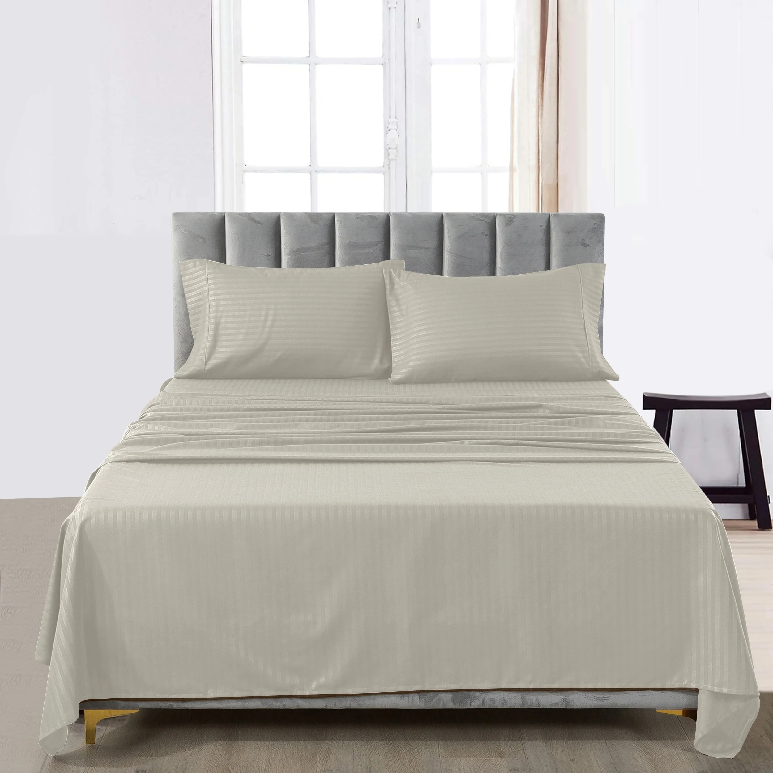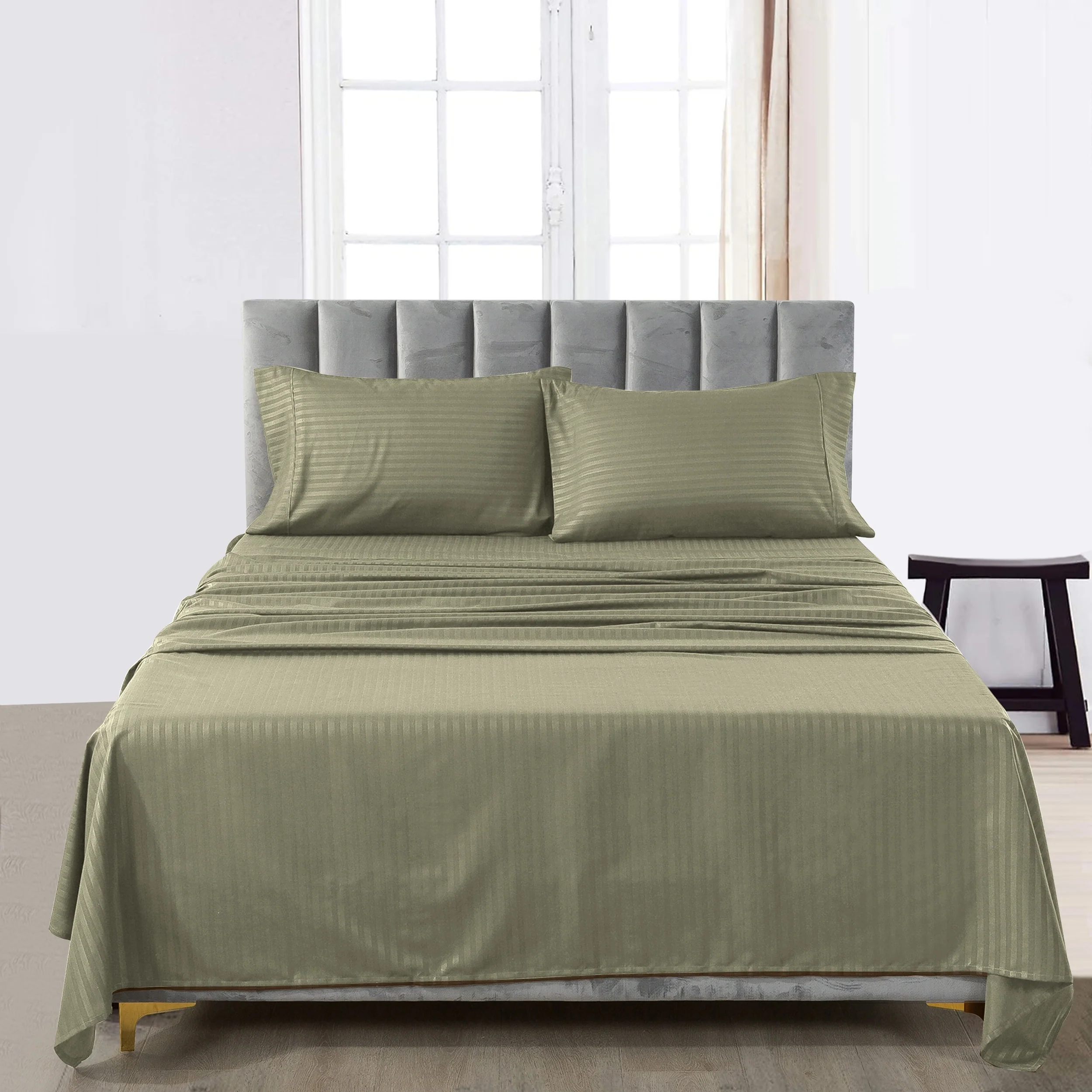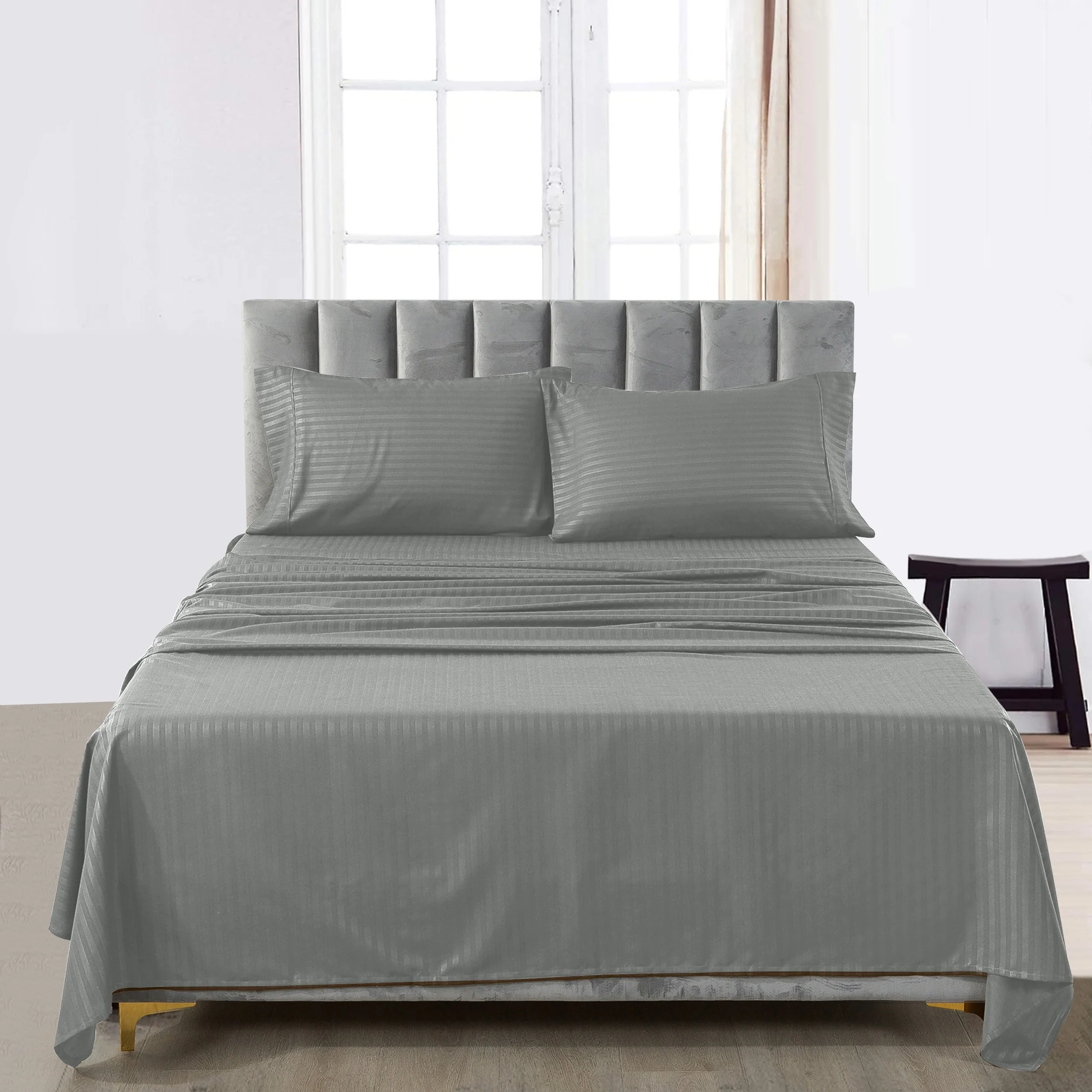 Experience luxurious comfort with our Striped Brushed Microfiber 4-Piece Bed Sheet Set. Crafted from soft brushed microfiber, these sheets are hypoallergenic, fade-resistant, and wrinkle-resistant, making them a comfortable and elegant addition to any bedroom. With deep pockets and fully elasticized fitted sheets, they offer a perfect fit for mattresses up to 16 inches thick. Available in classic stripe pattern and a variety of vibrant colors to match your bedroom decor.