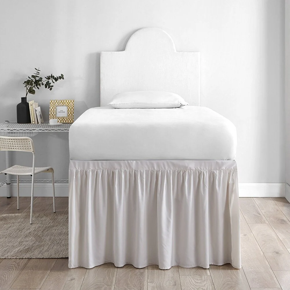 The Bed Skirt Twin XL (3 Panel Set) is perfect for those looking to add decor to their bedroom, while also hiding unsightly underbed storage! This Bed Skirt Set comes with a total of 3 microfiber panels (each 45"w x 30"H), enough to cover one full side and the front of a Twin XL bed, which is perfect for dorm room beds as they are usually positioned up against a wall.