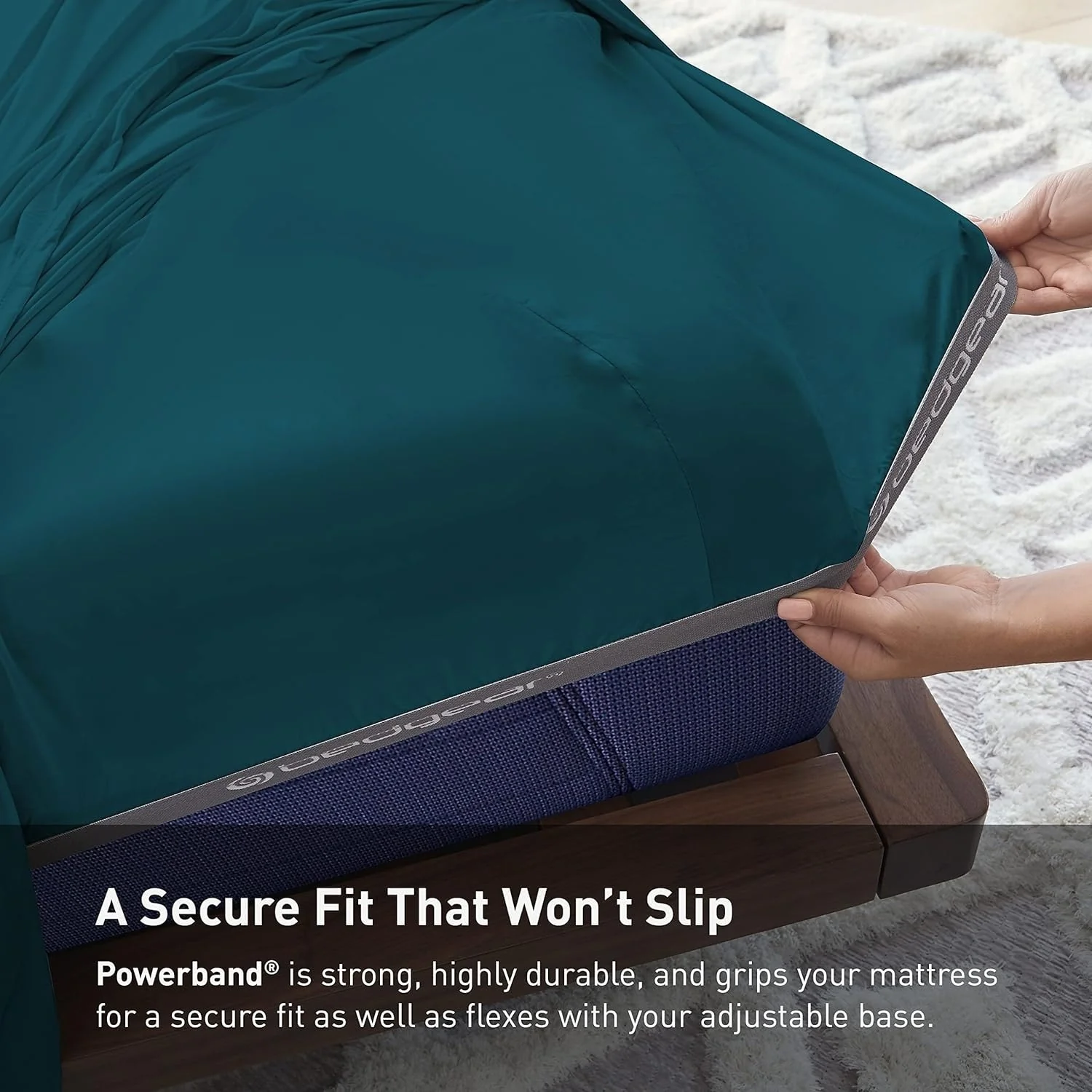 - DEEP POCKETS & SECURE FIT: Never worry about slipping sheets again. The fully-banded elastic and Powerband on this fitted sheet securely fits and grips to your mattress. The included pillowcases feature a Luxe Powerband, ensuring a snug fit on your pillow. These sheets have 17 inch deep pockets and are adjustable base friendly.