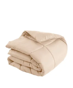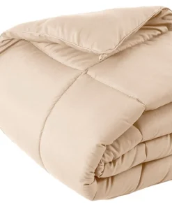 Enhance the elegance of your bedroom with this beige king box stitch microfiber down alternative comforter, a modern touch to your decor. Crafted from soft microfiber, this decorative comforter offers luxurious comfort and warmth with its polyester/polyfill fill material. The box-stitch construction not only adds a stylish flair but also keeps the fill evenly distributed for a cozy night’s sleep. The neutral beige color complements any existing decor effortlessly. Indulge in the comfort and sophistication this king-size bedding provides, making it a perfect addition to your bedroom ensemble. Sleep peacefully under this exquisite comforter knowing you’ve added both style and coziness to your space. 102-inch H x 90-inch W x 1-inch D