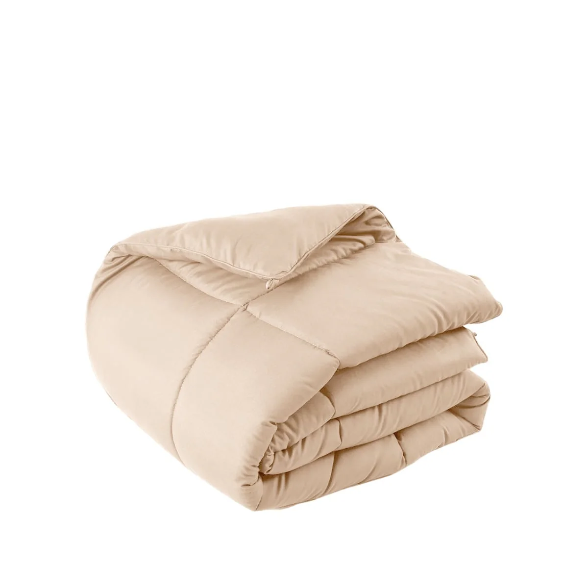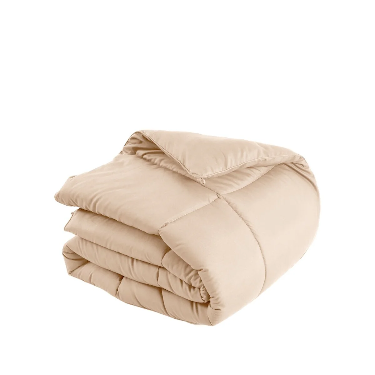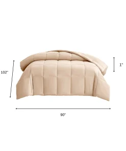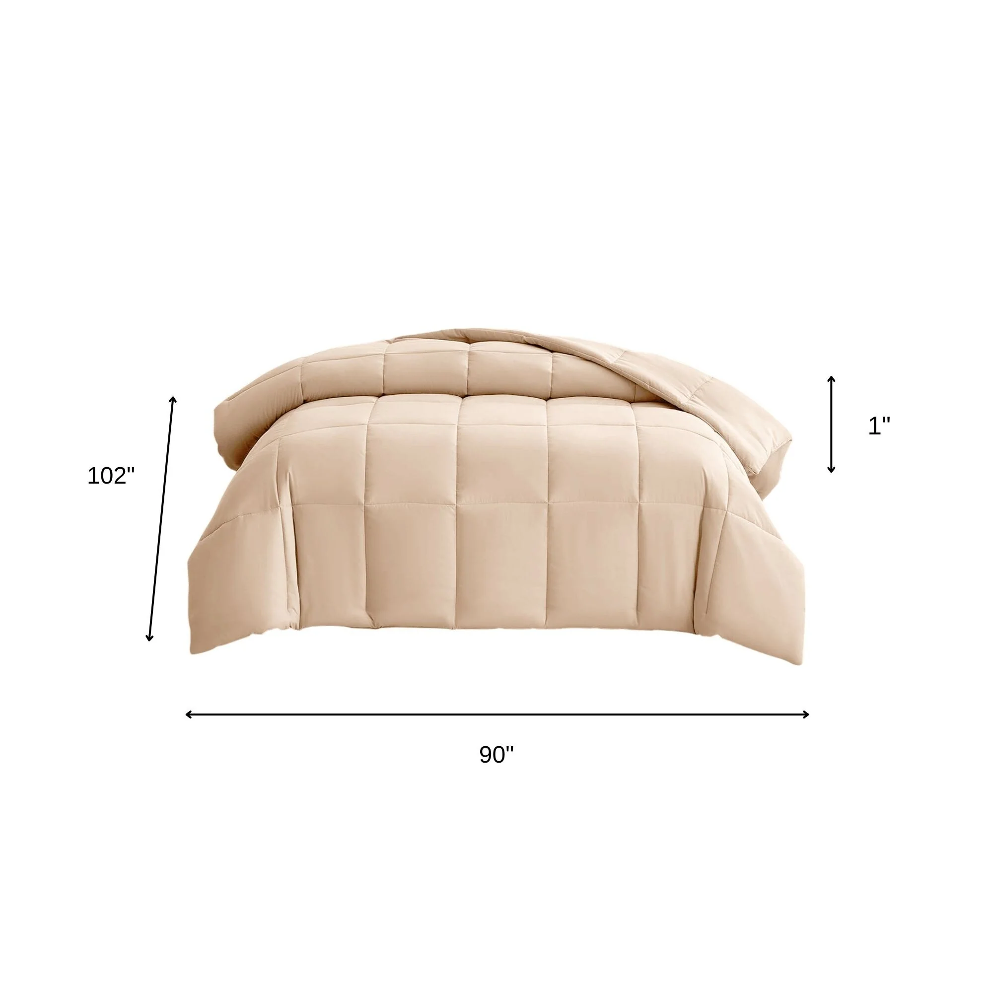 Beige King Box Stitch Microfiber Down Alternative Comforter