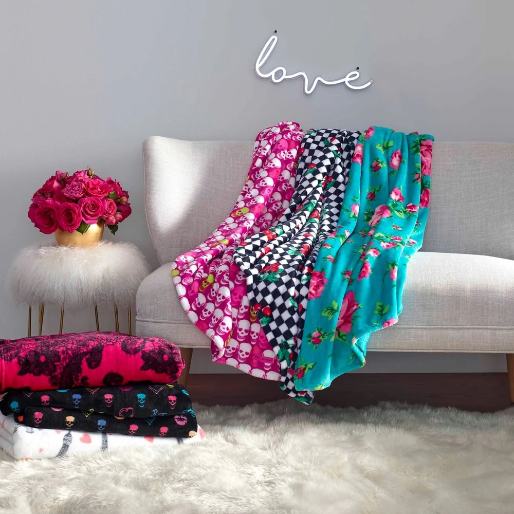 Add some French flair to your room or couch with the Betsey Johnson Paris Love Ultra Soft Plush Throw. The ultra-plush fleece throw features Eiffel Towers and pink hearts scattered on crisp white background. This throw is sure to keep you warm on those cold winter nights.