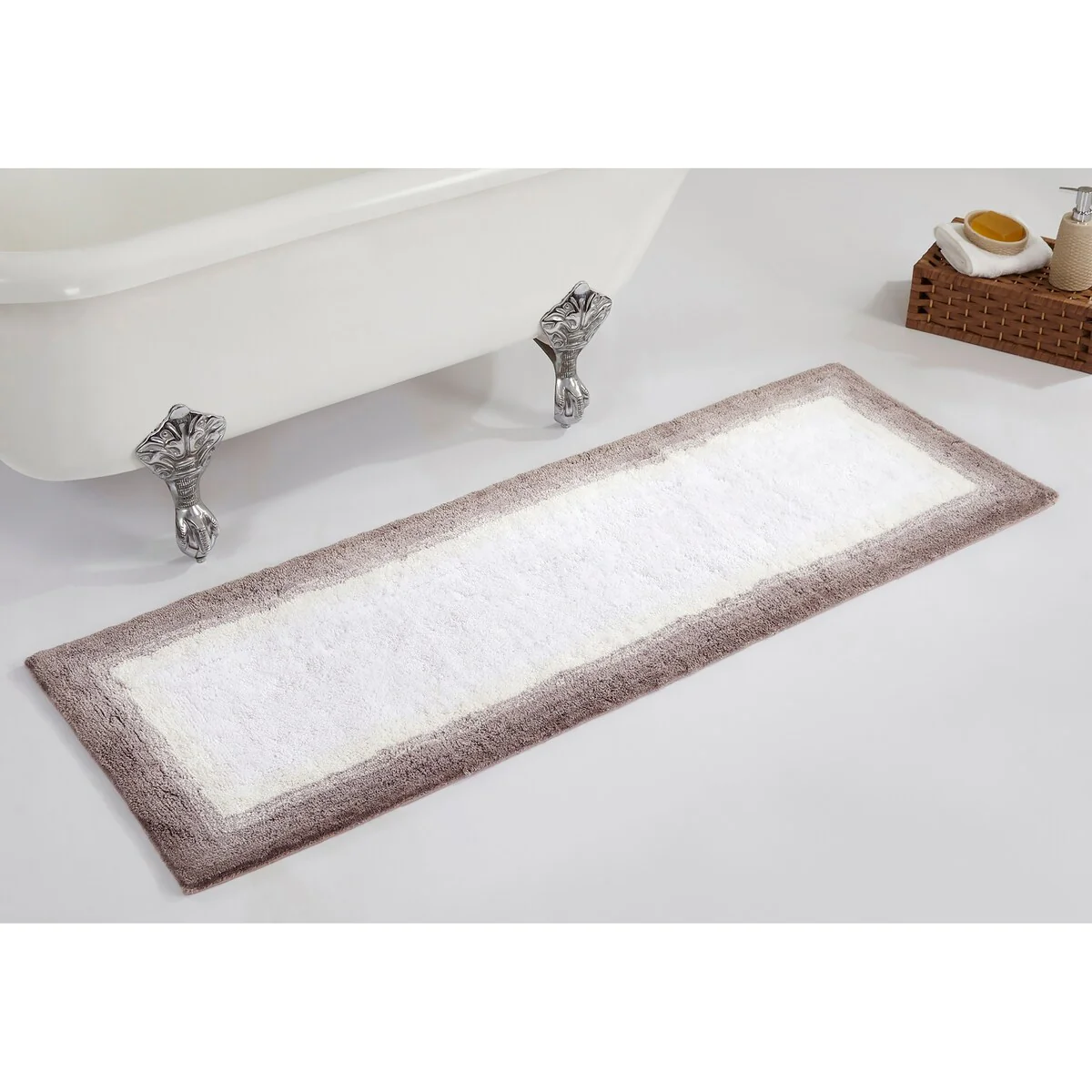 Convenience meets longevity with our Torrent Collection bath rugs, as they are conveniently machine washable for easy care, ensuring impressive durability in your home. Featuring an intriguing tonal Border with a gradation look, these rugs add a subtle yet sophisticated accent to your bathroom decor.