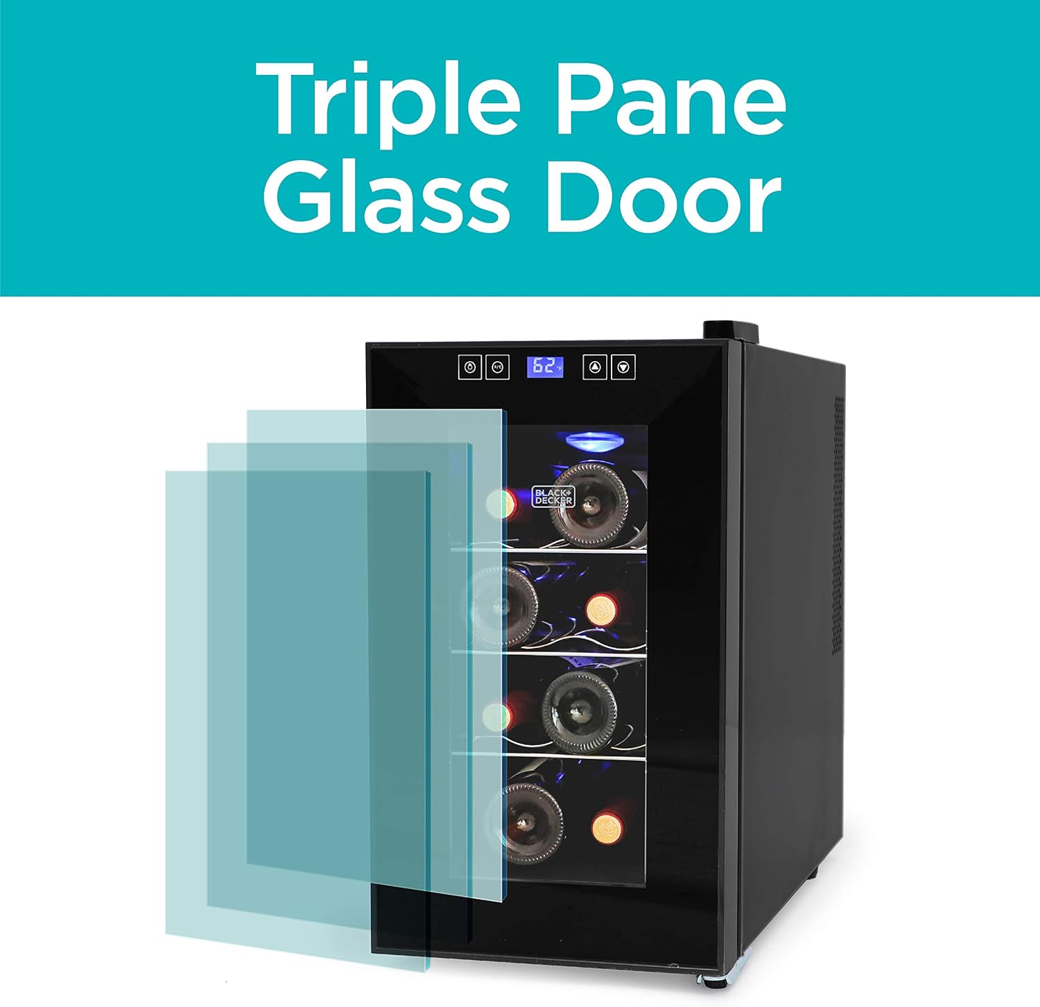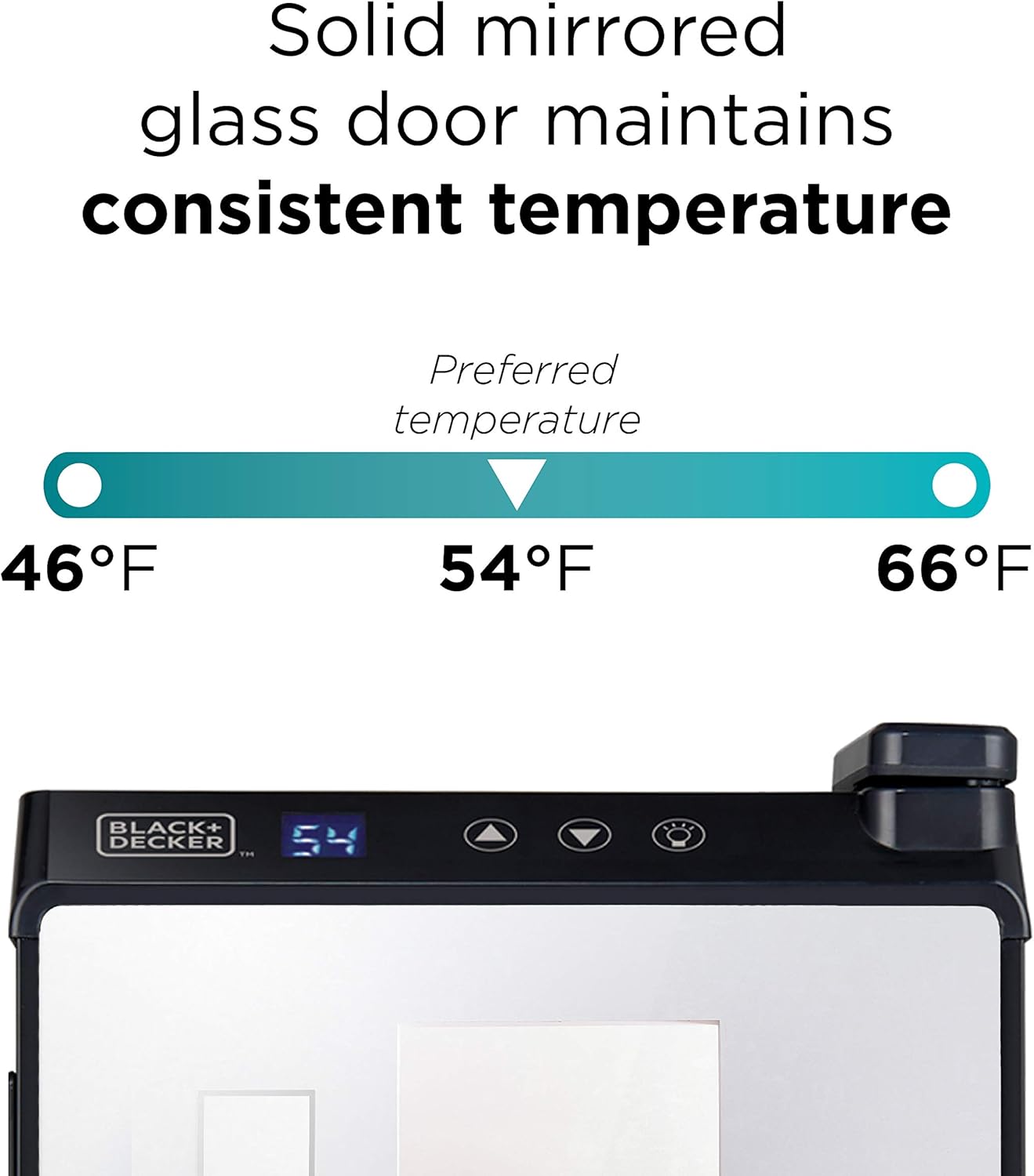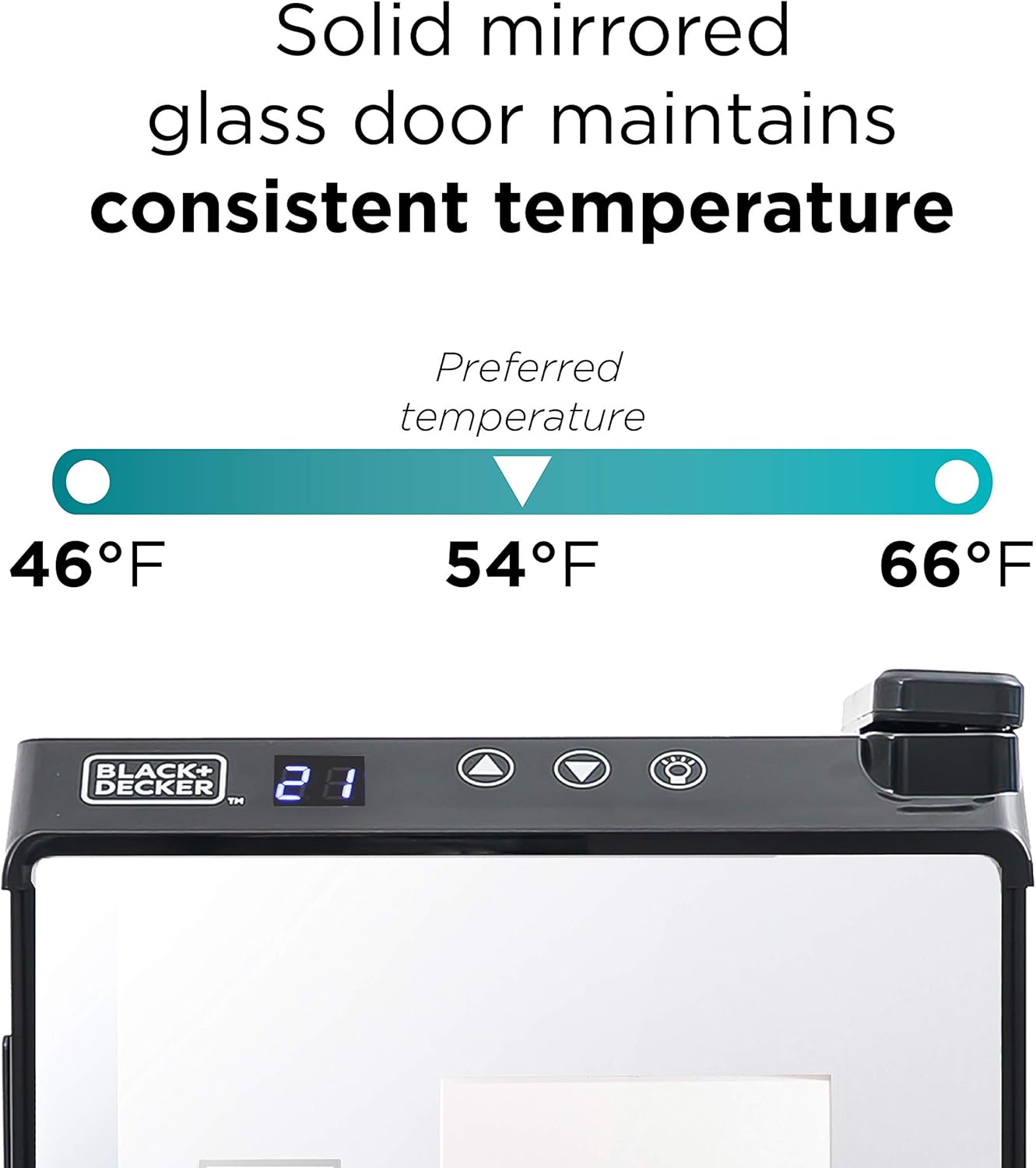BLACK+DECKER Wine Fridge 12 Bottles, Thermoelectric Wine Cooler Refrigerator with Mirrored Front, Freestanding 12 Bottle Wine Fridge, BD60336