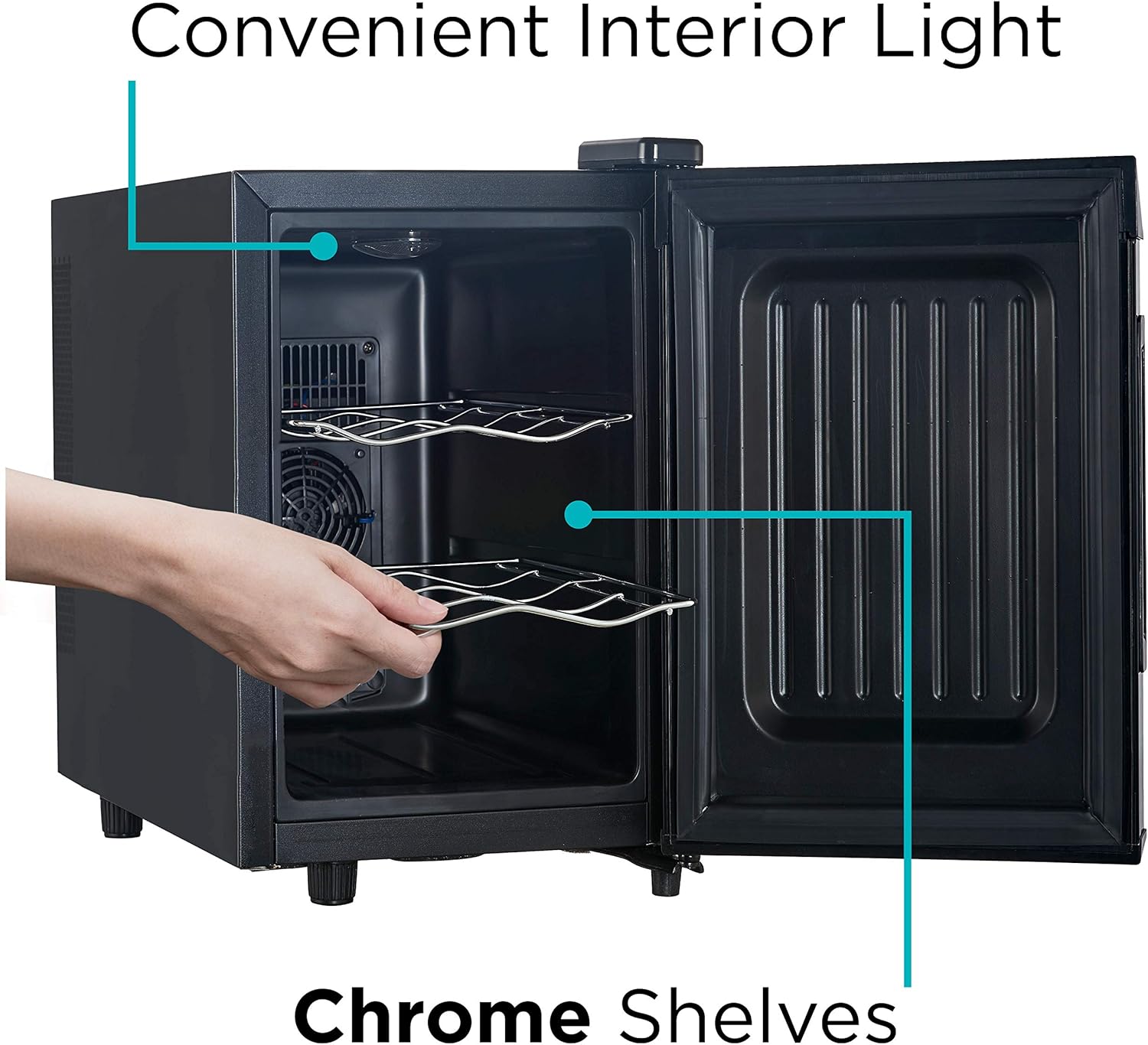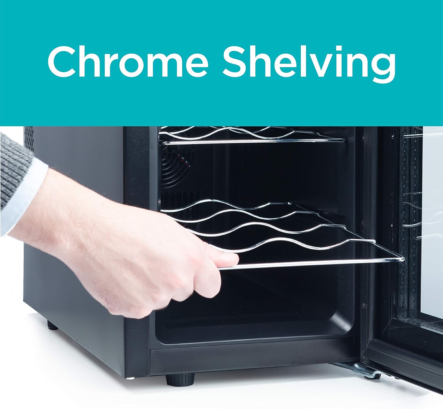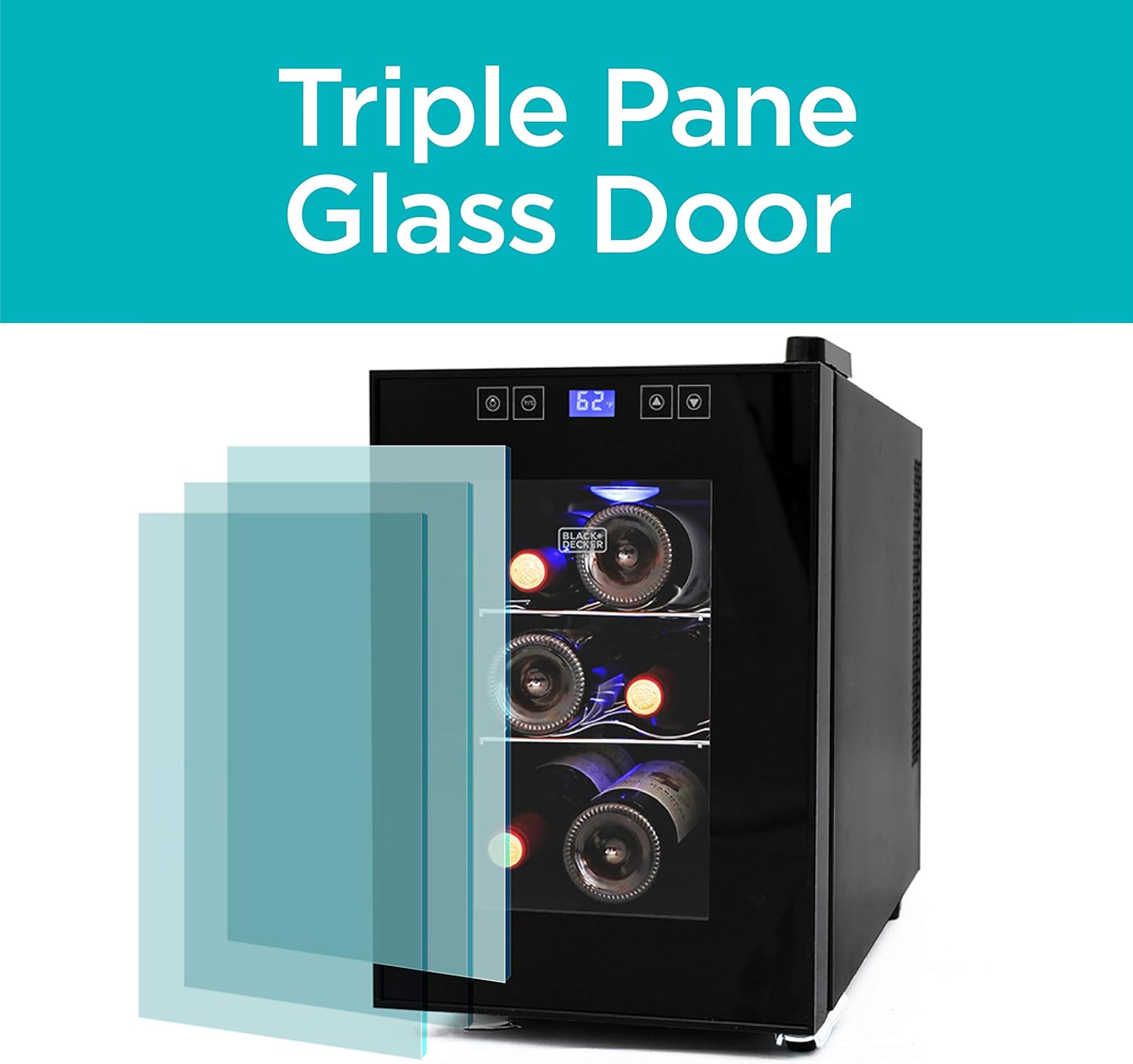 BLACK+DECKER Wine Fridge 12 Bottles, Thermoelectric Wine Cooler Refrigerator with Mirrored Front, Freestanding 12 Bottle Wine Fridge, BD60336