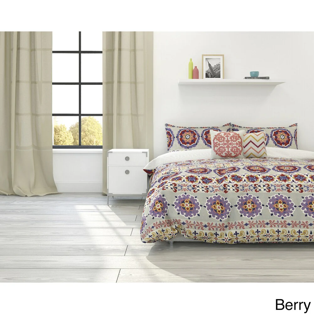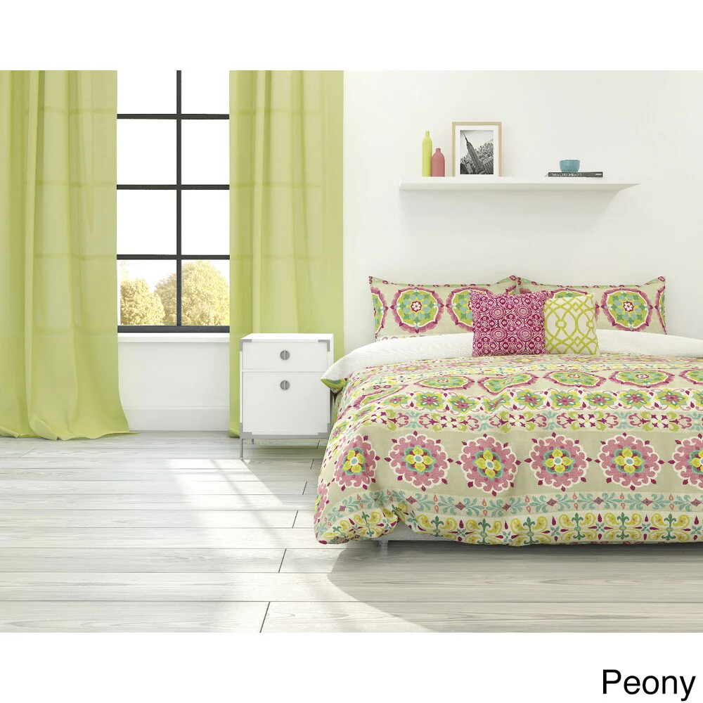 Printed in Spain on 100-percent natural, super soft cotton, this luxurious Bliss Duvet Cover Set will add style to your bedroom. A unique printing process translates the Colorfly artwork in a chic duvet pattern that coordinates easily. Ideal for any full, queen or king size bed, this duvet cover set includes three pieces.