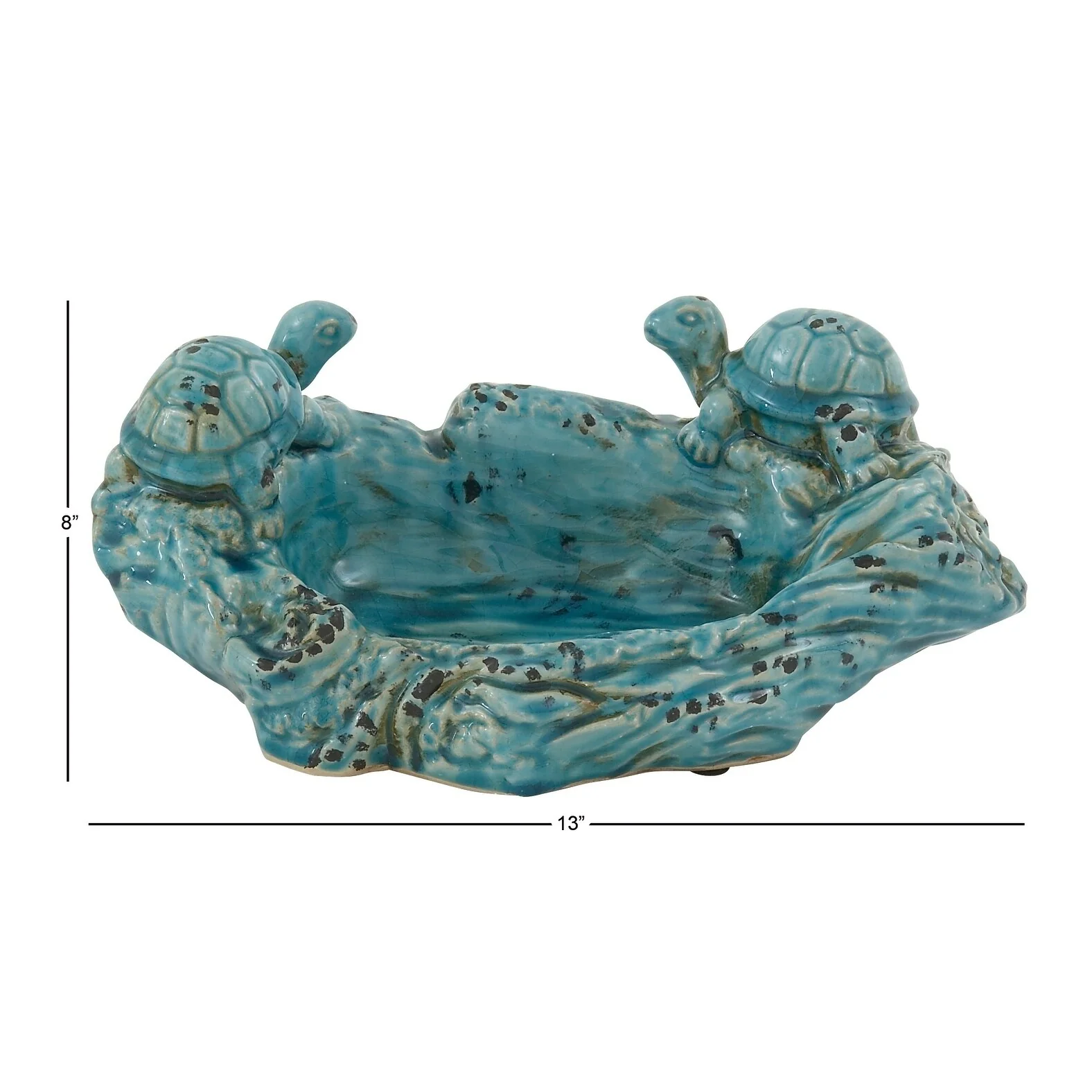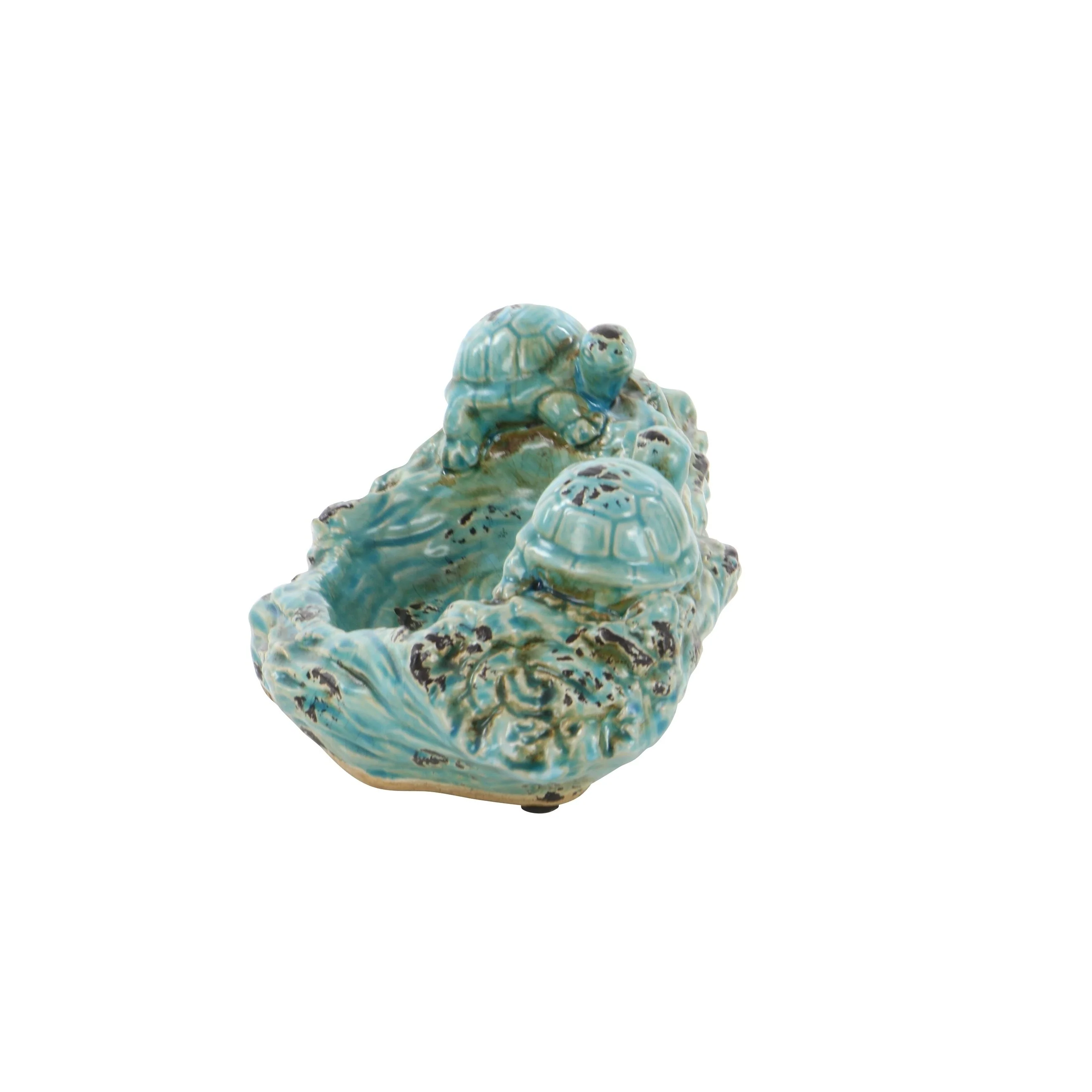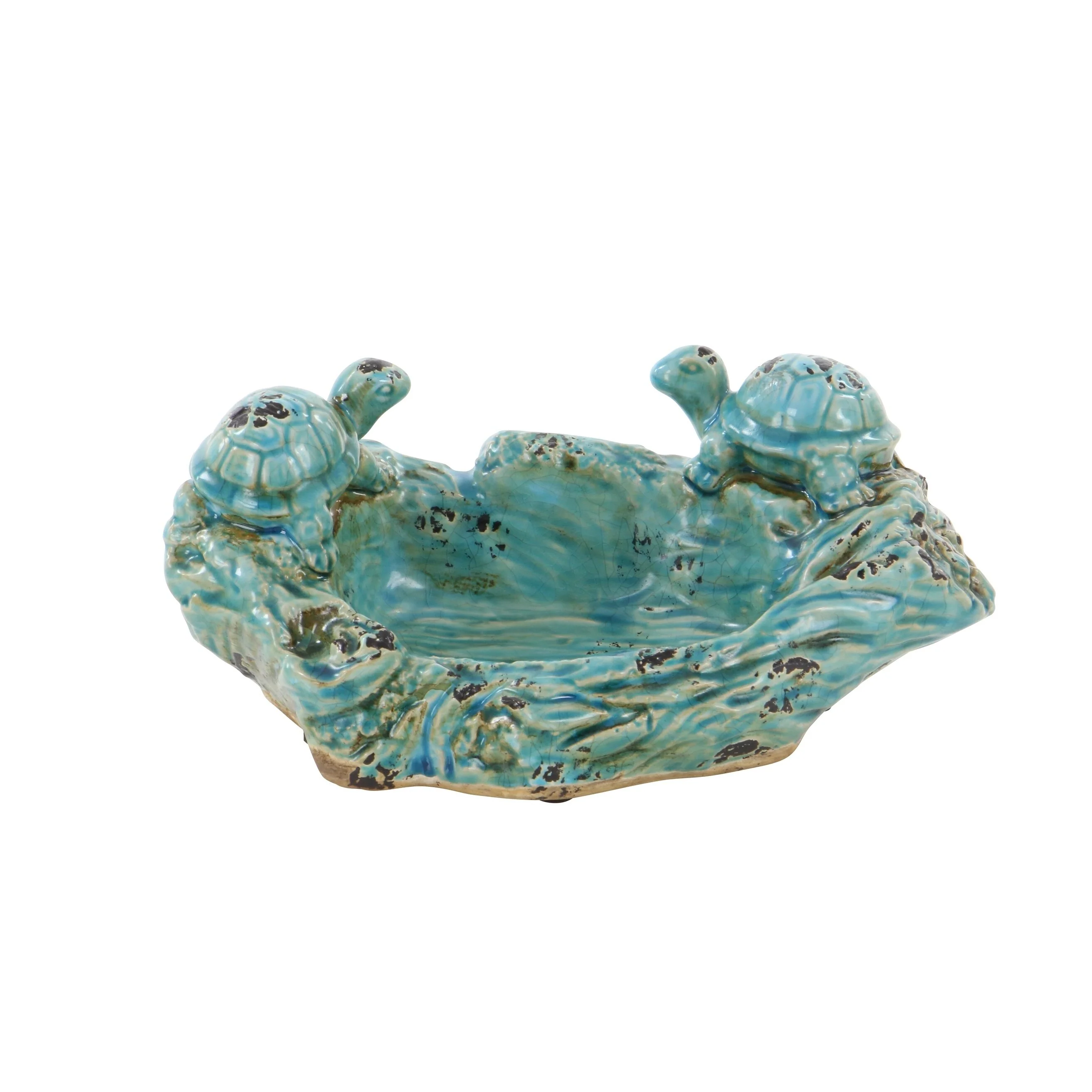 - Decorative blue turtle bowl adds a sweet touch to a counter or table