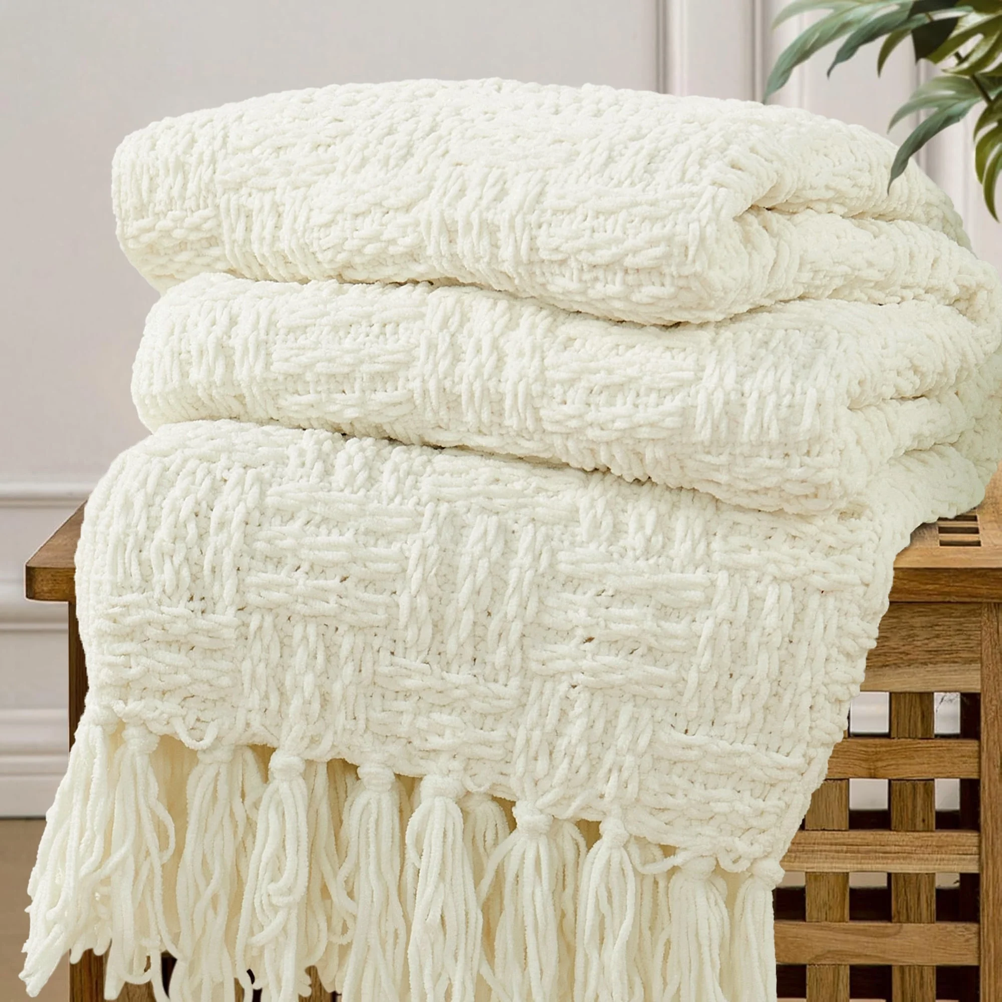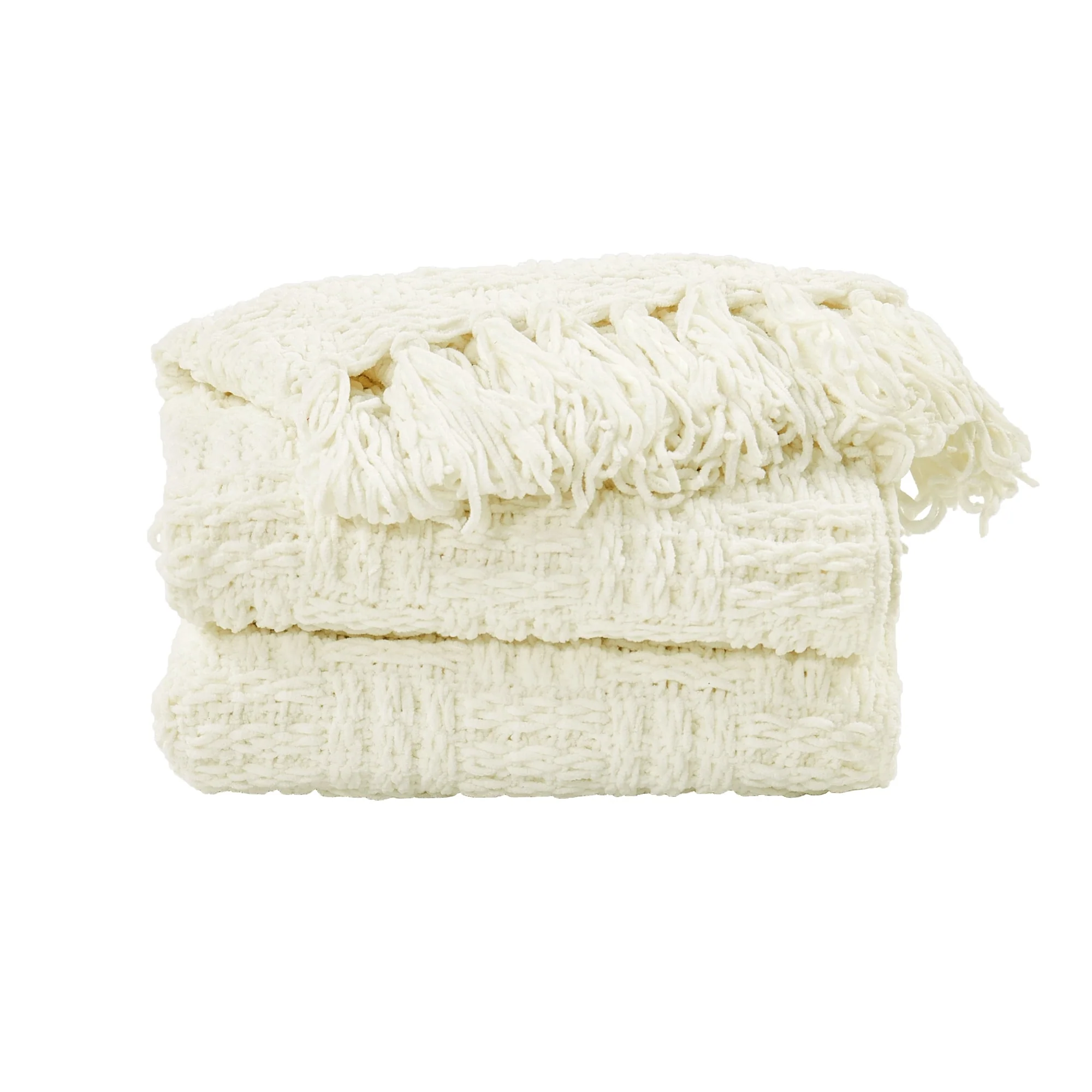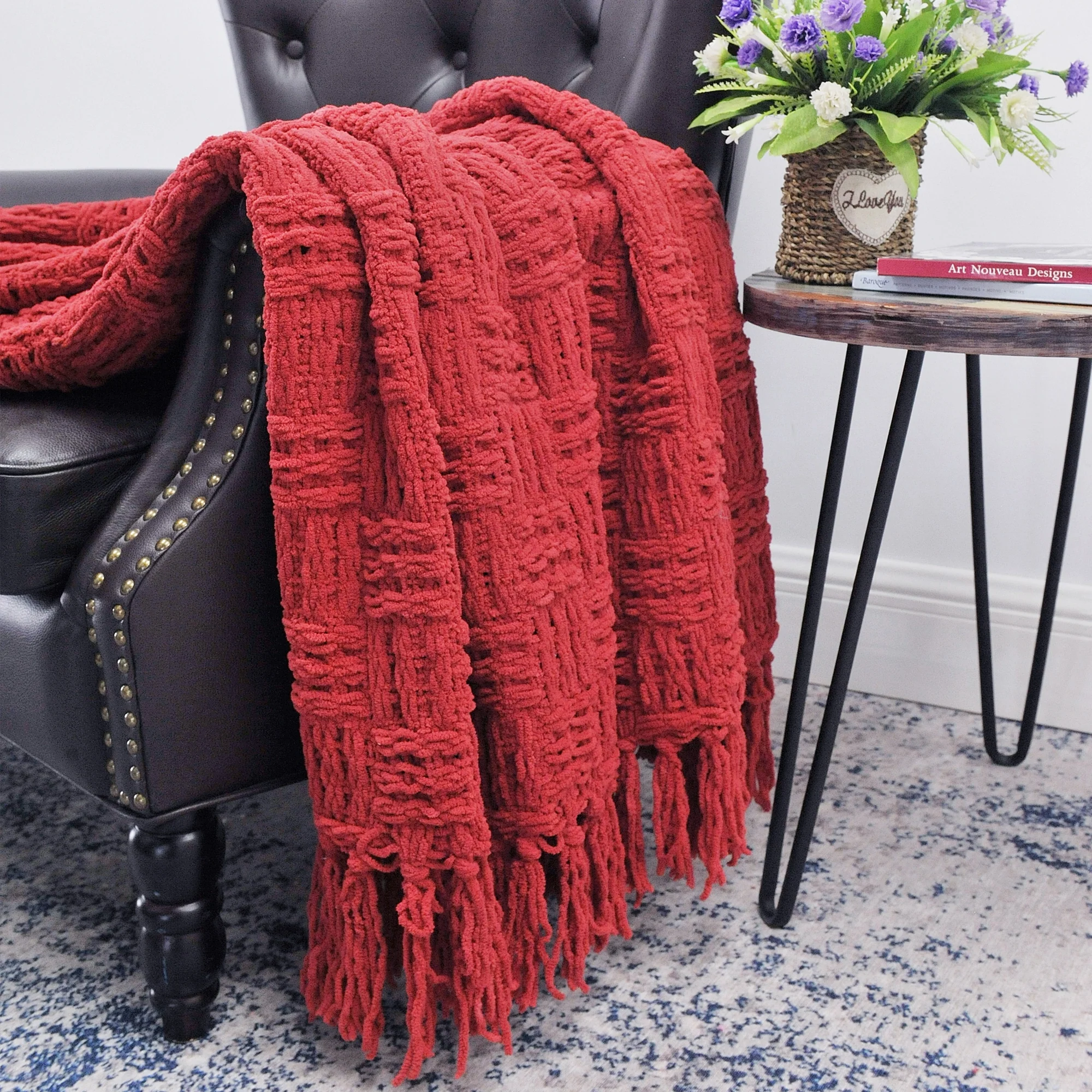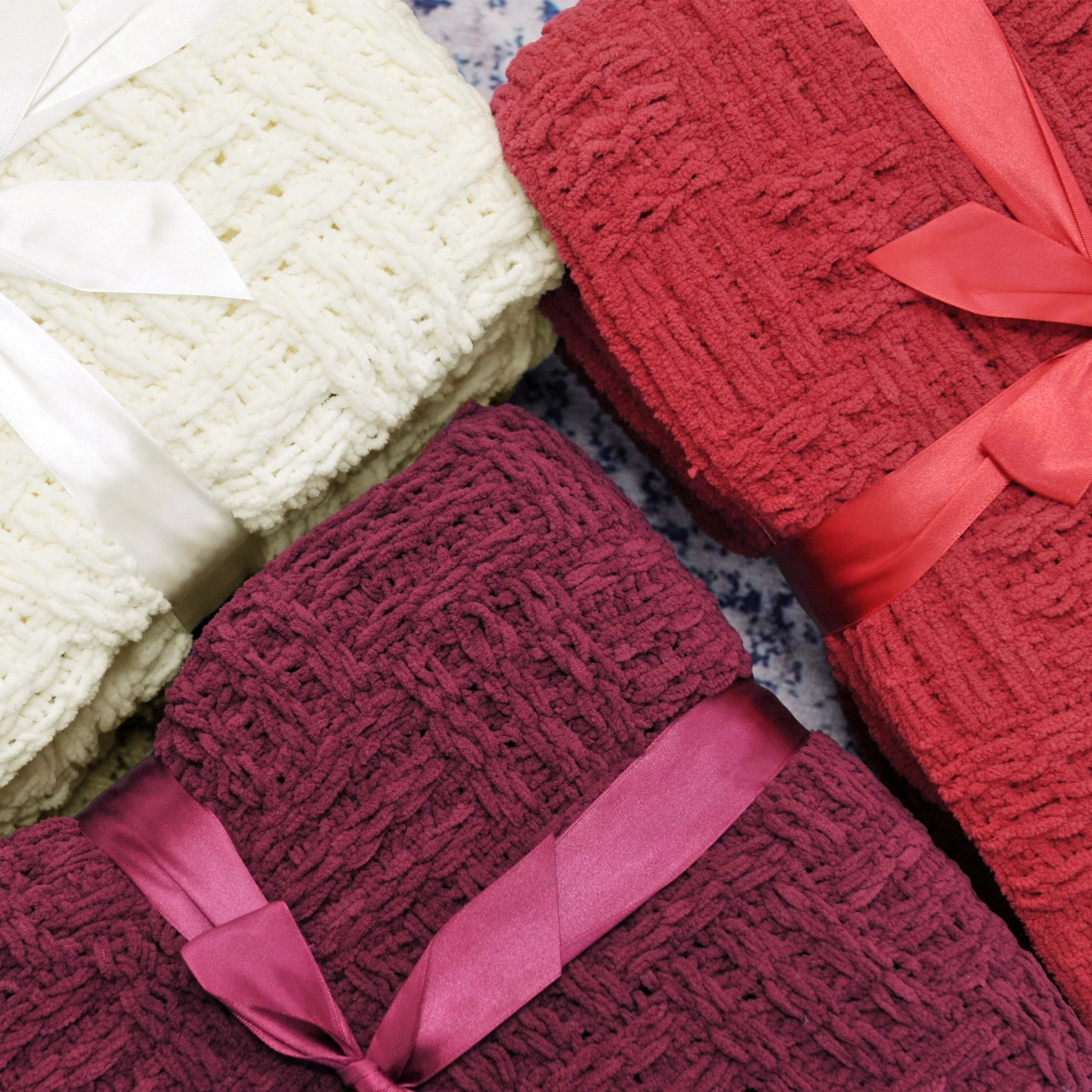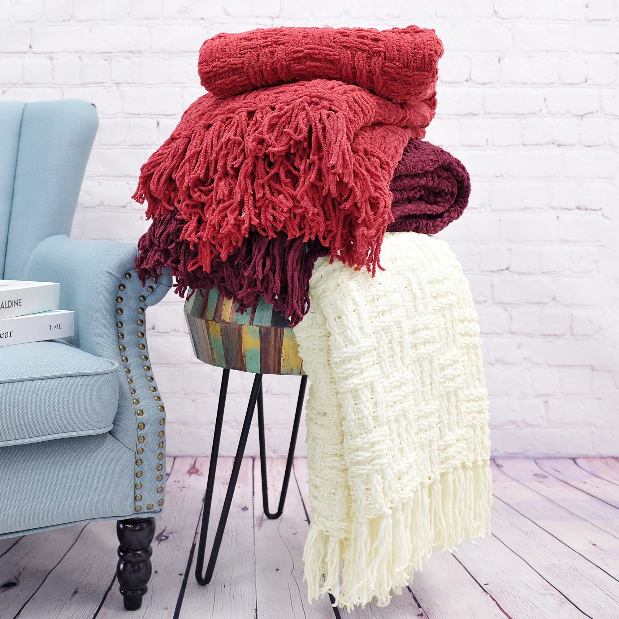Elevate the look and feel of your living space with this Cable Knitted Couch Cover Throw Blanket. Crafted from 100% polyester in a cable-knit design, this blanket offers exceptional softness and warmth, making it ideal for snuggling on chilly evenings. With its machine-washable fabric, this couch cover throw blanket is easy to maintain and retains its softness even after washing. Choose from three solid-color patterns – white, burgundy, or red – to complement your decor. This casual/classic style throw blanket measures 50 inches wide x 60 inches long.