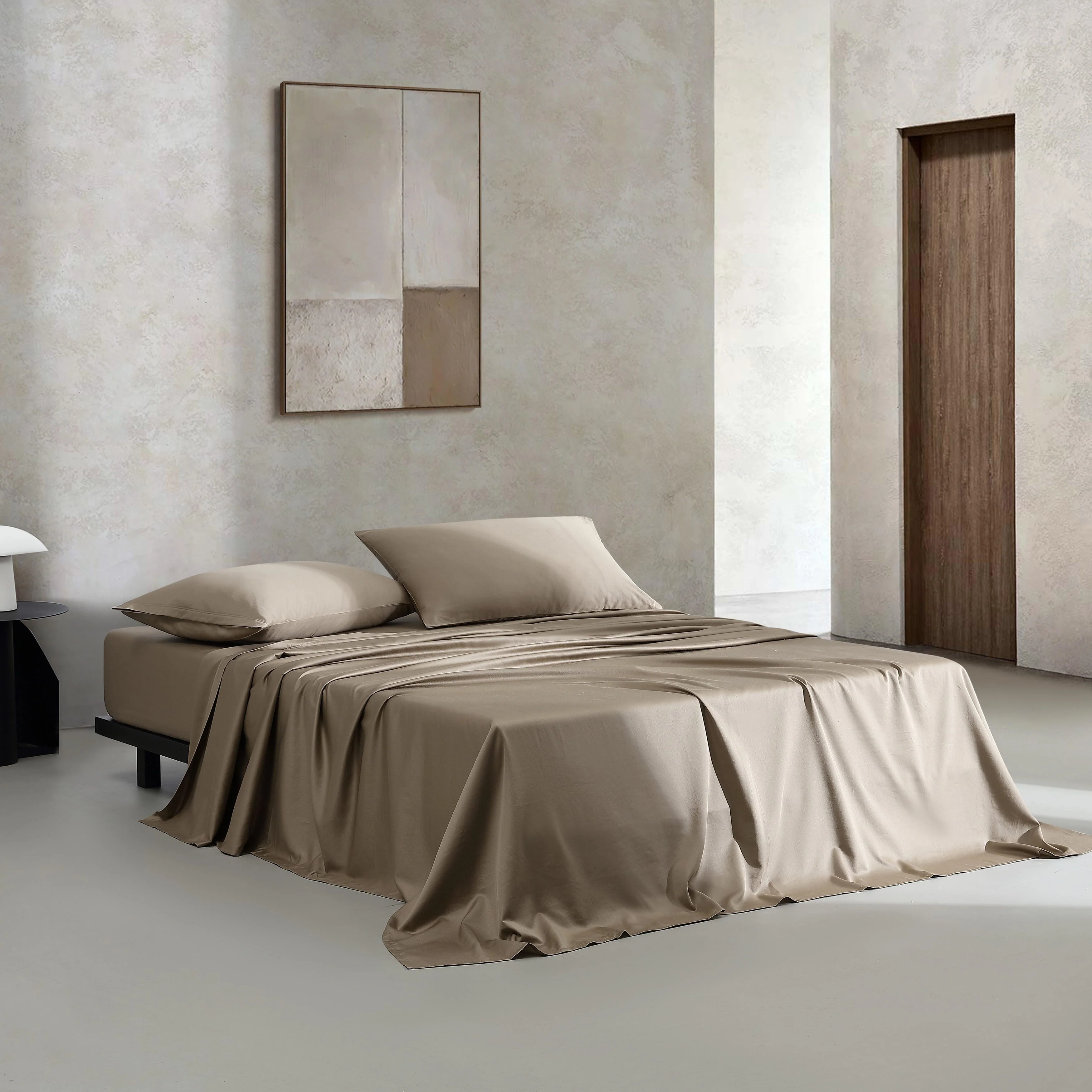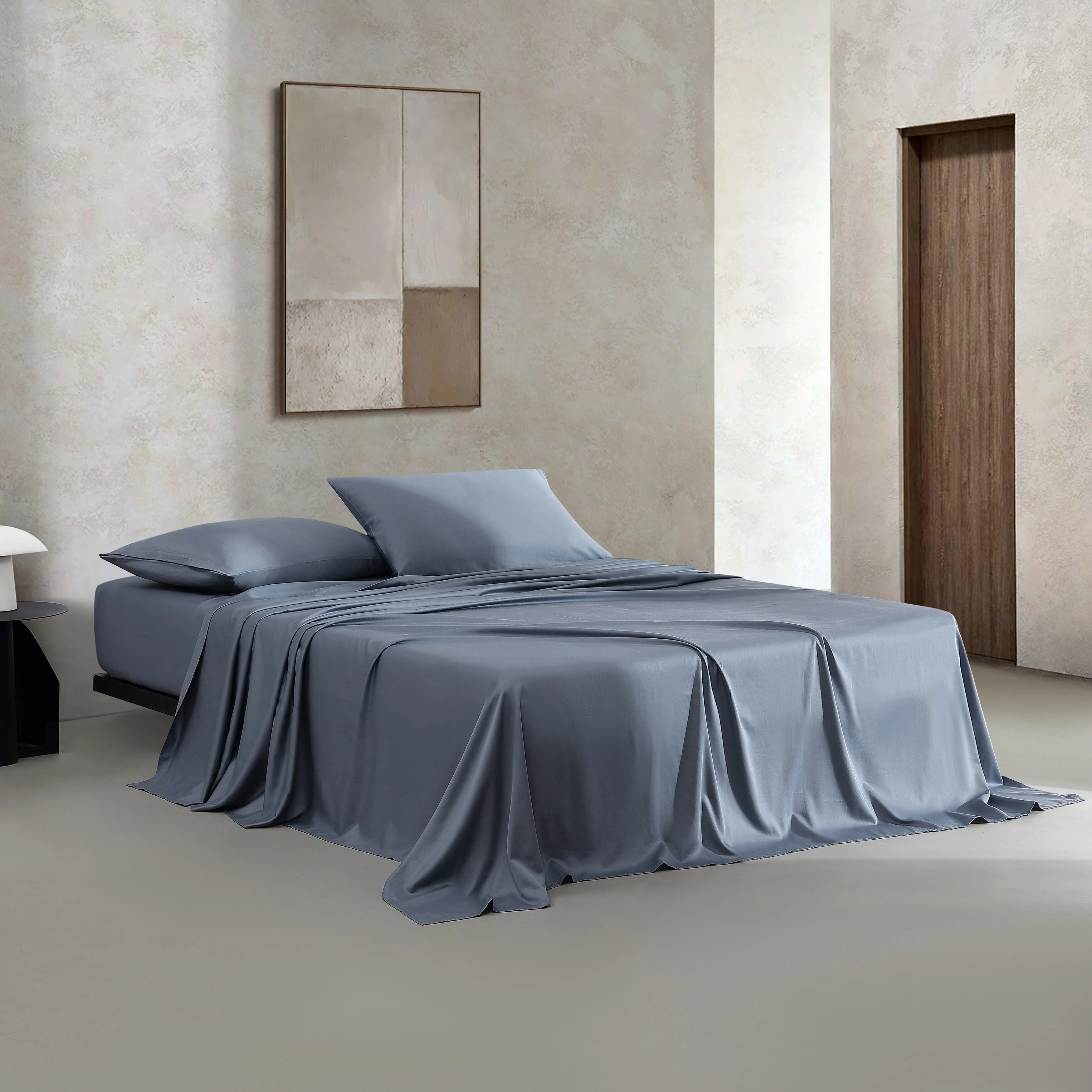 Queen set includes: One flat sheet (102"L x 94"W), one fitted sheet (80"L x 60"W) and two standard pillowcases (21"L x 32"W)