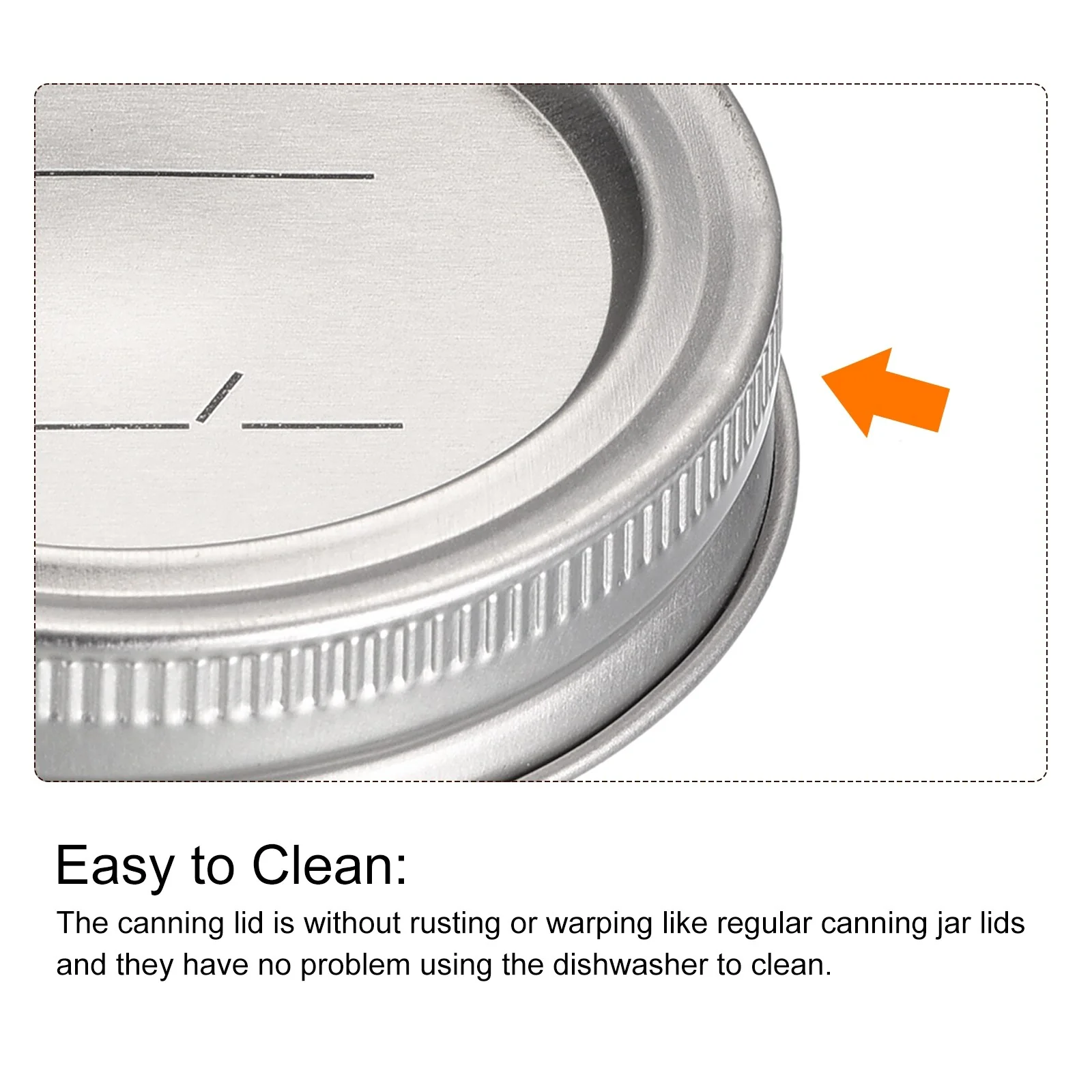- Easy to Clean: The canning lid is without rusting or warping like regular canning jar lids and they have no problem using the dishwasher to clean. It can be used in the refrigerator for refrigeration.