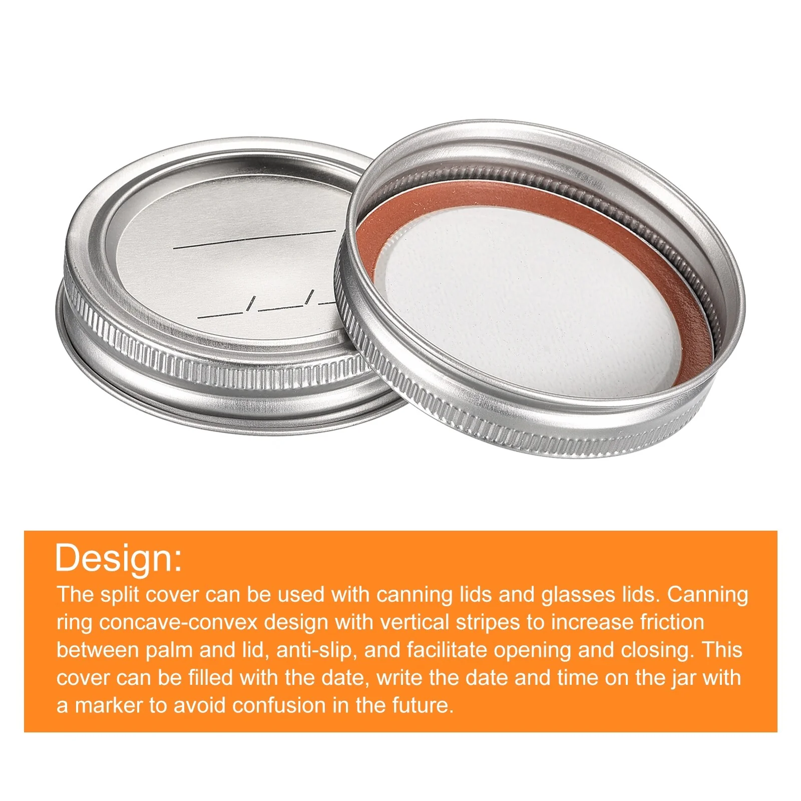 - Split Design: The split cover can be used with canning lids and glasses lids. Canning ring concave-convex design with vertical stripes to increase friction between palm and lid, anti-slip, and facilitate opening and closing. This cover can be filled with the date, write the date and time on the jar with a marker to avoid confusion in the future.