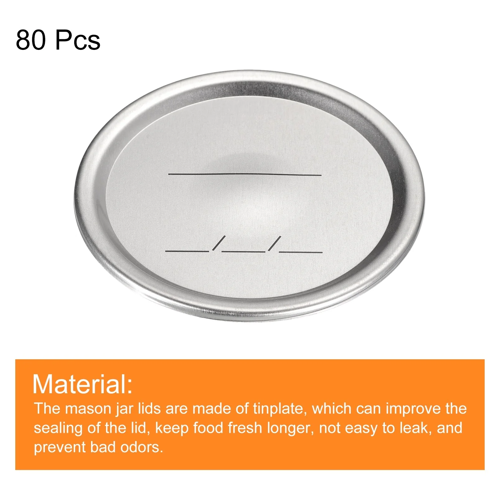 Canning Lids, 80pcs – Tinplate Mason Jar Lid, Wide Mouth with Date – Silver – 86mm