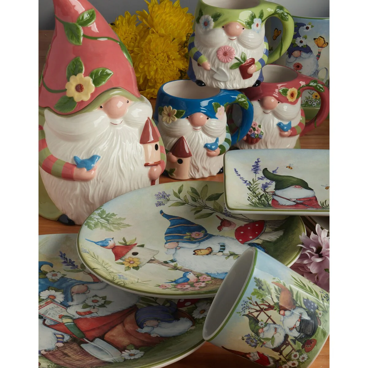 Delightful magical creatures are featured in Certified International’s "Garden Gnomes", designed by the popular artist Susan Winget. This whimsical collection, decorated with colorful gnomes working in their gardens, includes ceramic dinnerware, serve ware, 3-d accessories and planters. Be sure to get the charming hand painted 3-d Garden Gnome cookie jar, a decorative touch for your counter to keep your treats fresh.