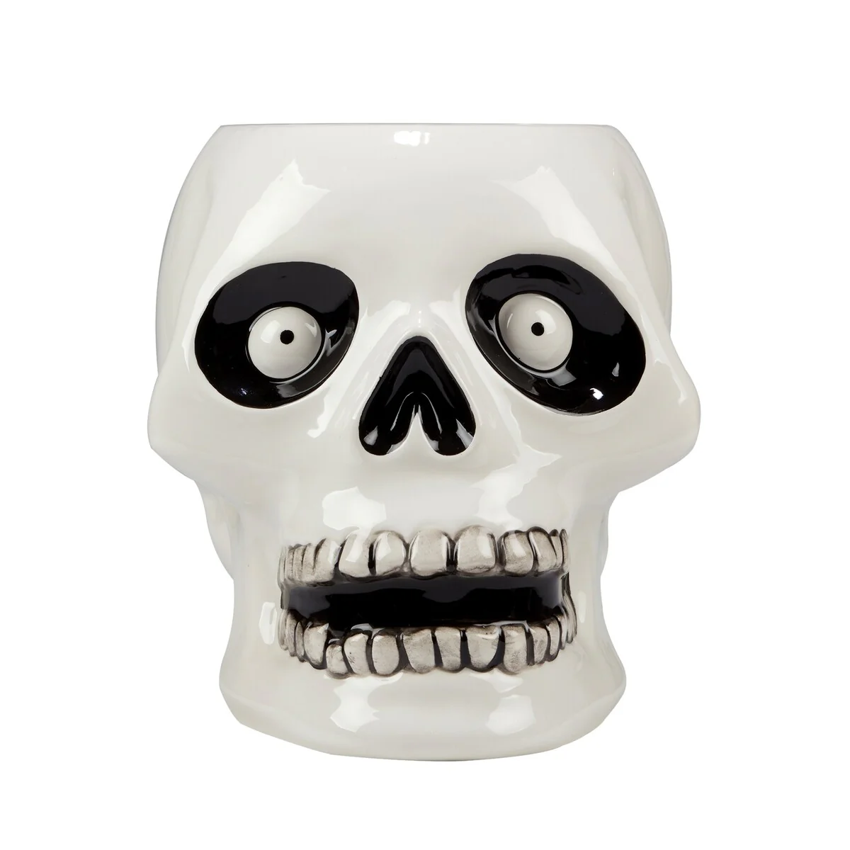 Celebrate Halloween with this spooky themed "Scaredy Cat" 3-d Skeleton Treat Jar from Certified International, designed by the artist Janelle Penner. This decorative yet functional uniquely sculpted 8.5" H treat jar featuring a skeleton head is perfect for storing your Halloween treats for your favorite trick or treaters on this scary holiday. It’s a fun centerpiece too. Be sure to get the matching ceramic 3-d mugs, plates as well as the other ceramic items and melamine serveware for all your trick or treaters!