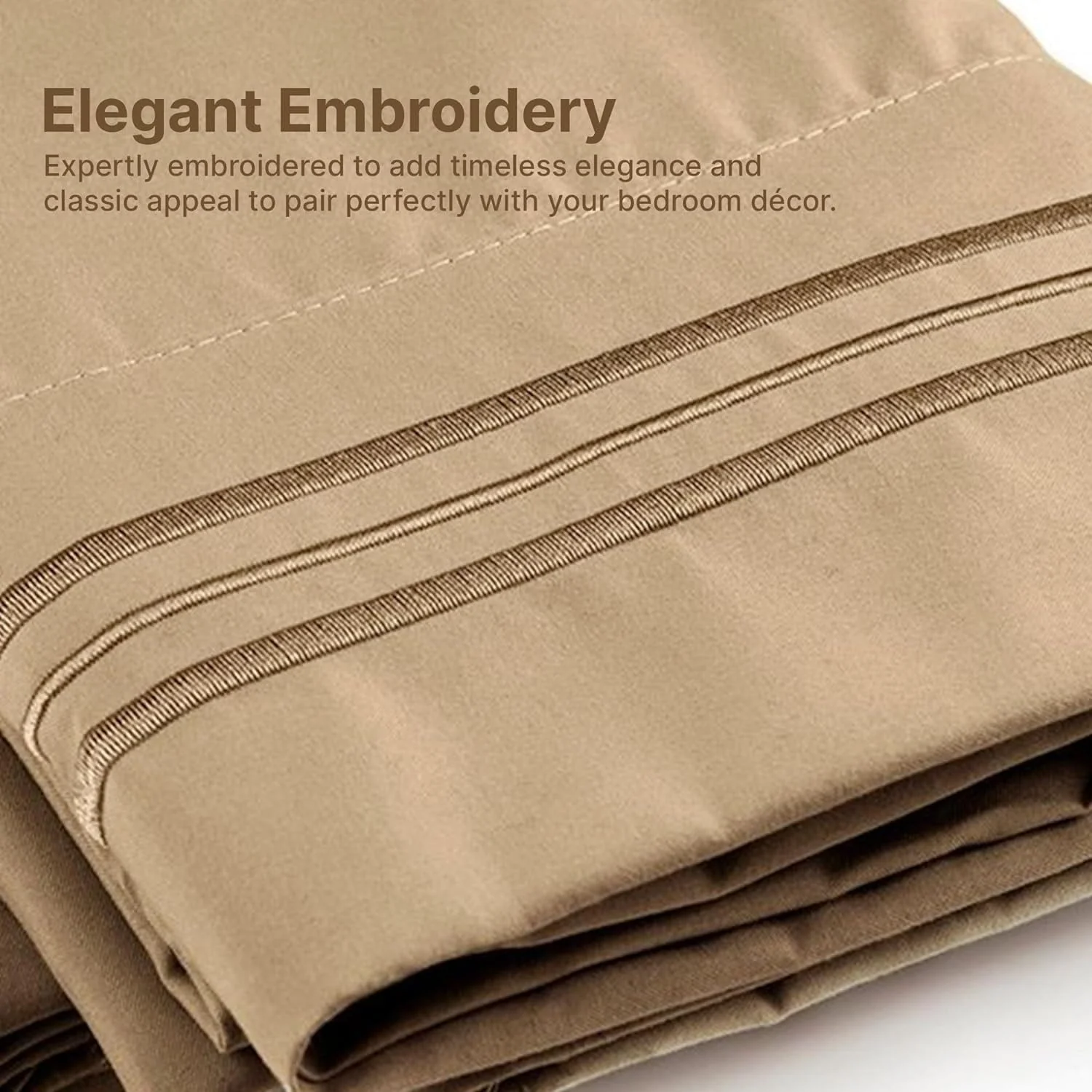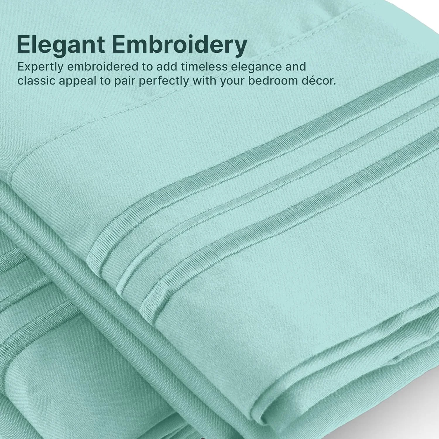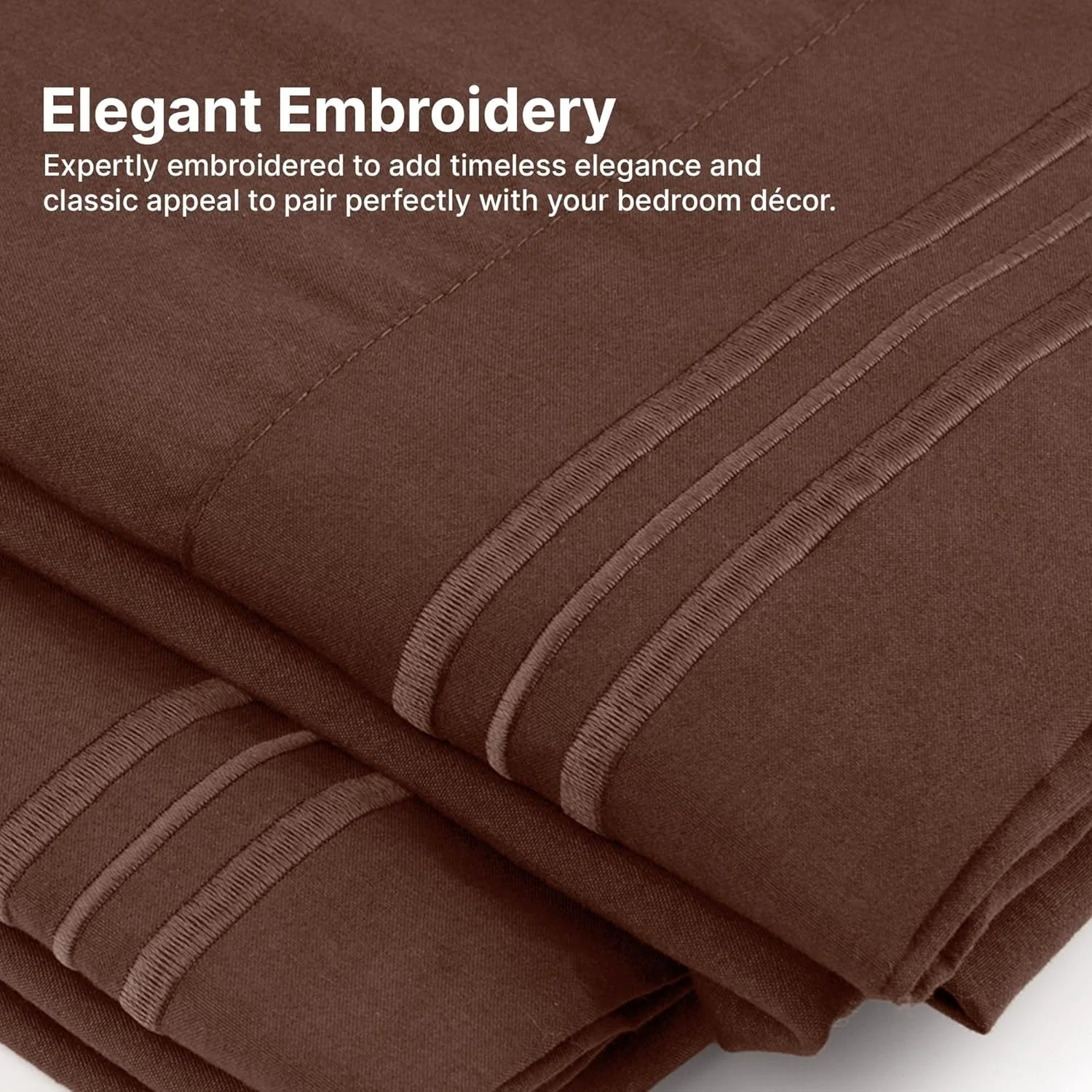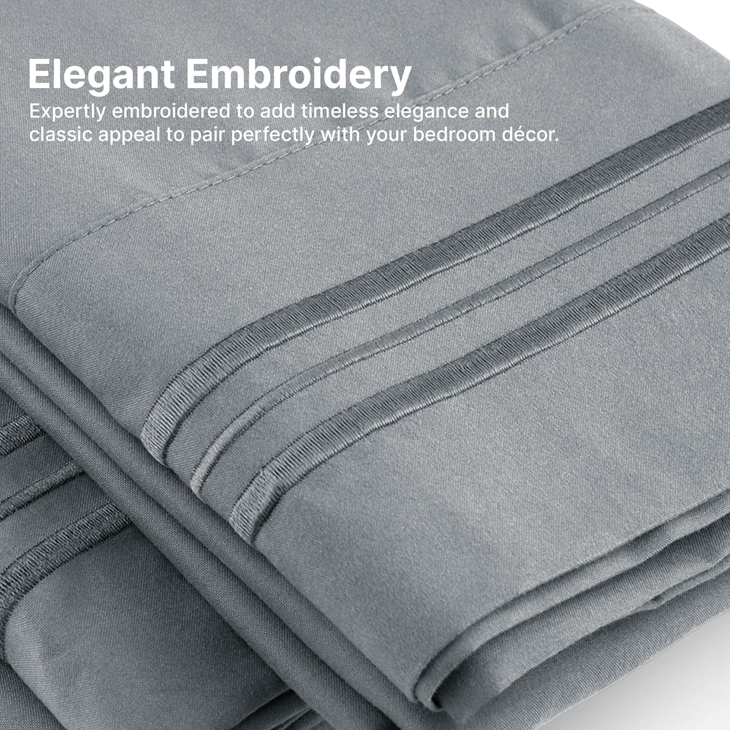 - 6 PIECE SHEET SET: This bed sheet set comes with 1 fitted sheet, 1 flat sheet, and 4 pillowcases with beautiful decorative embroidery designs on each pillowcase.