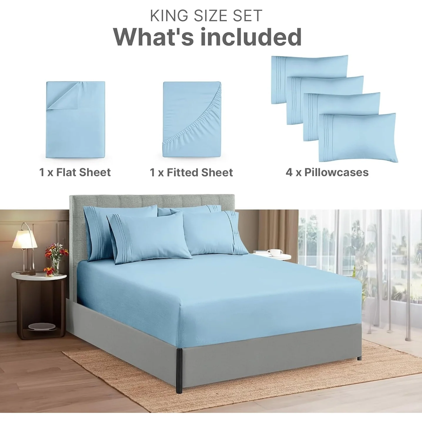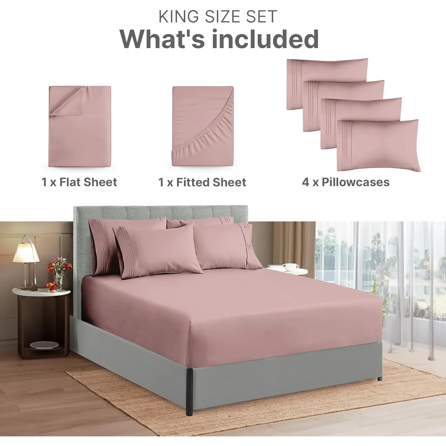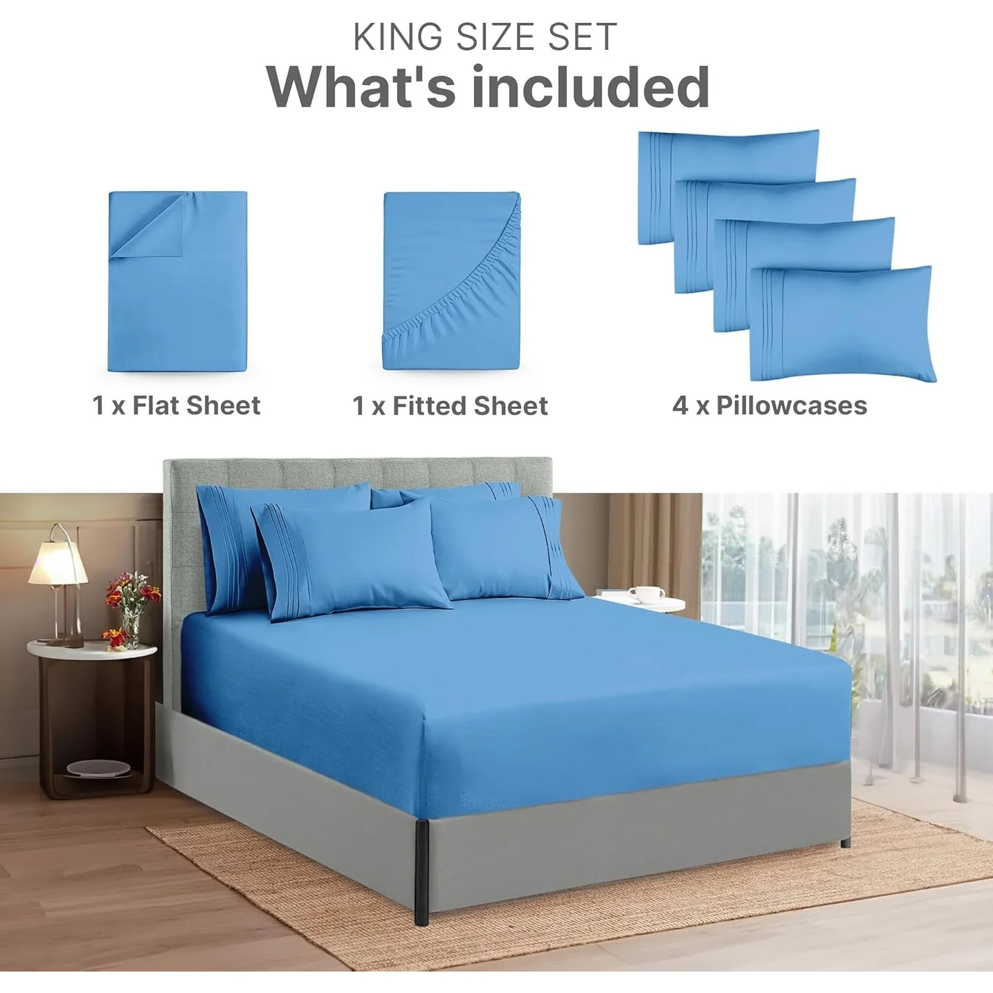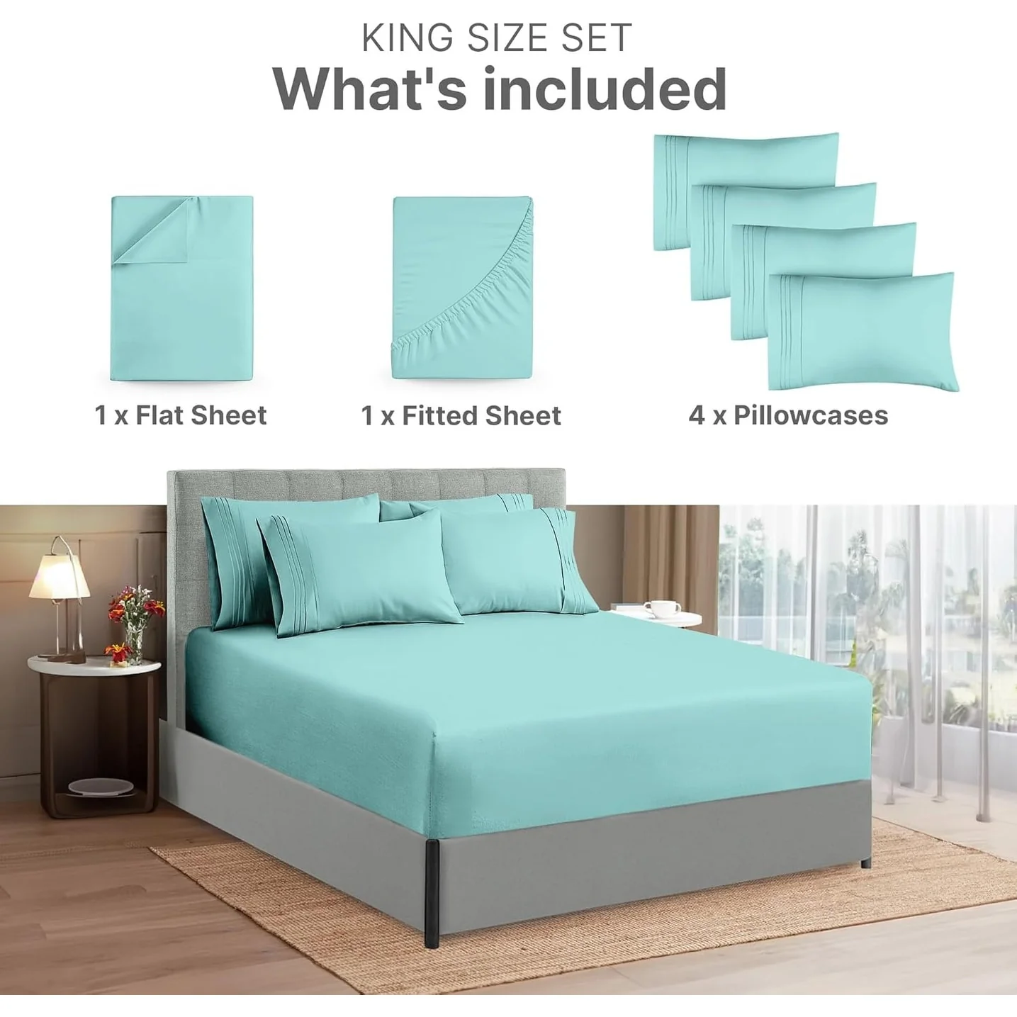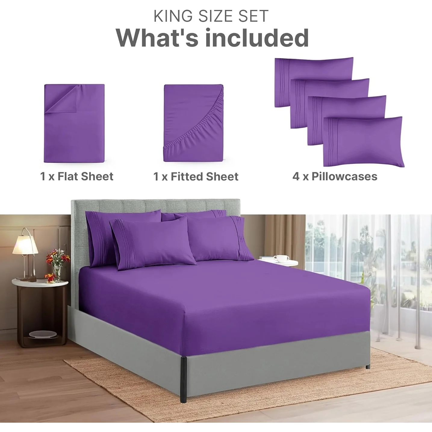 - 6 PIECE SHEET SET: This bed sheet set comes with 1 fitted sheet, 1 flat sheet, and 4 pillowcases with beautiful decorative embroidery designs on each pillowcase.