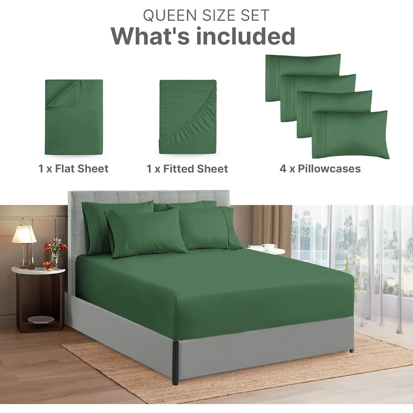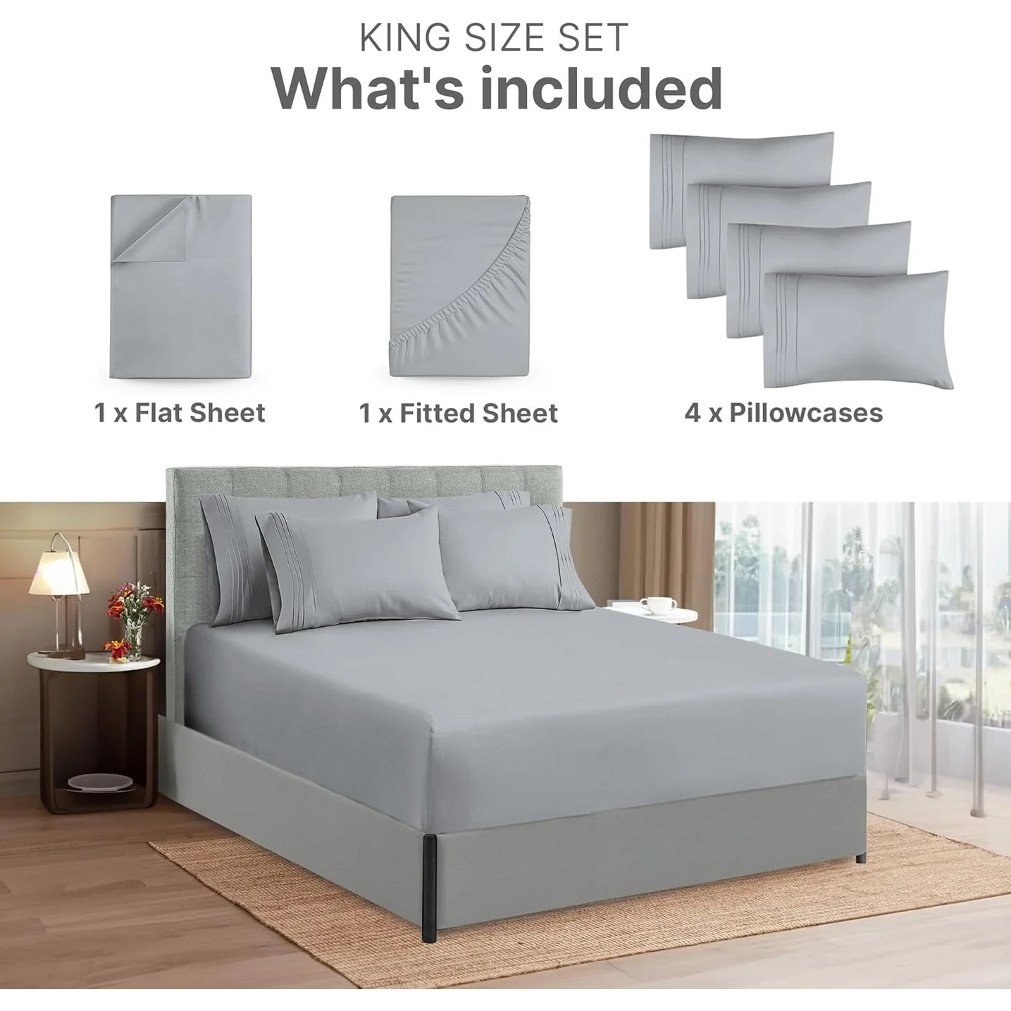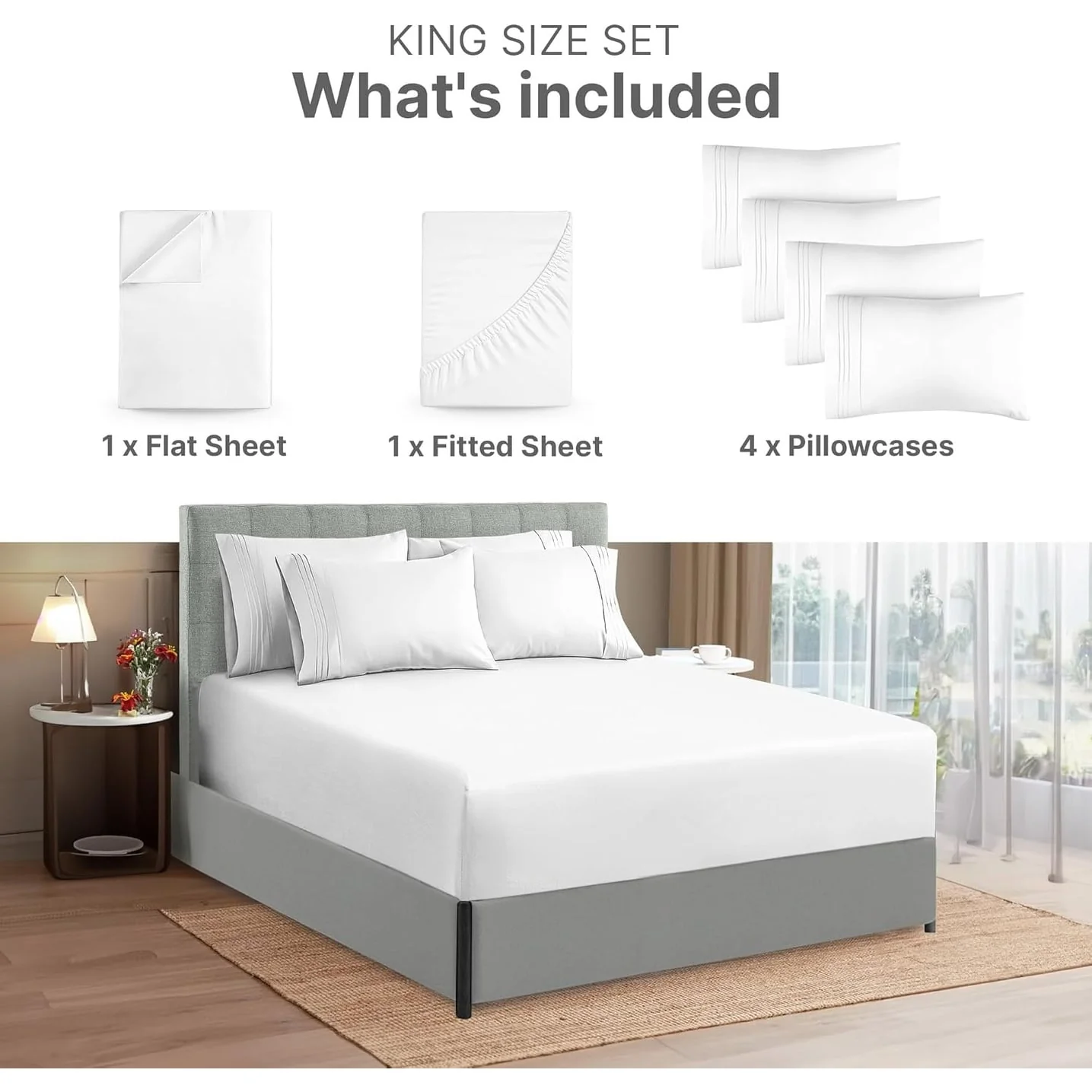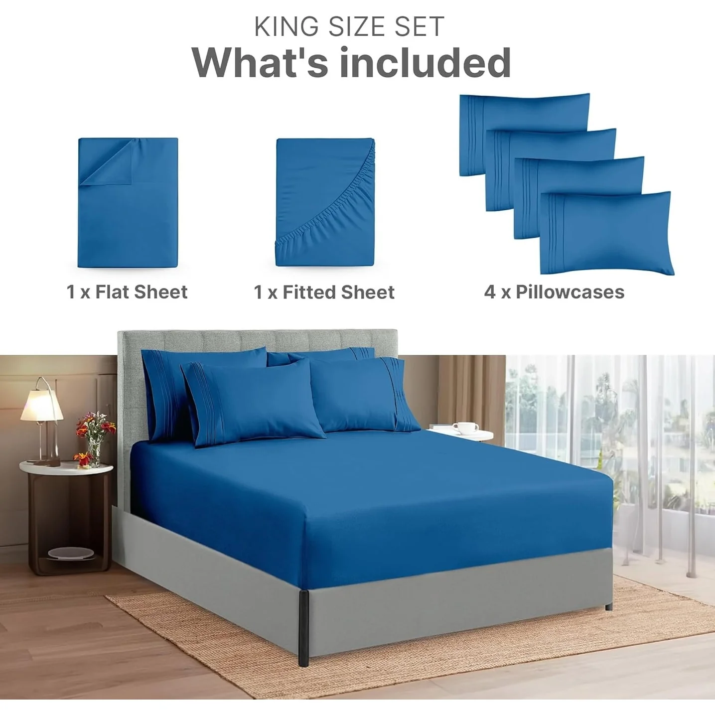 - 6 PIECE SHEET SET: This bed sheet set comes with 1 fitted sheet, 1 flat sheet, and 4 pillowcases with beautiful decorative embroidery designs on each pillowcase.