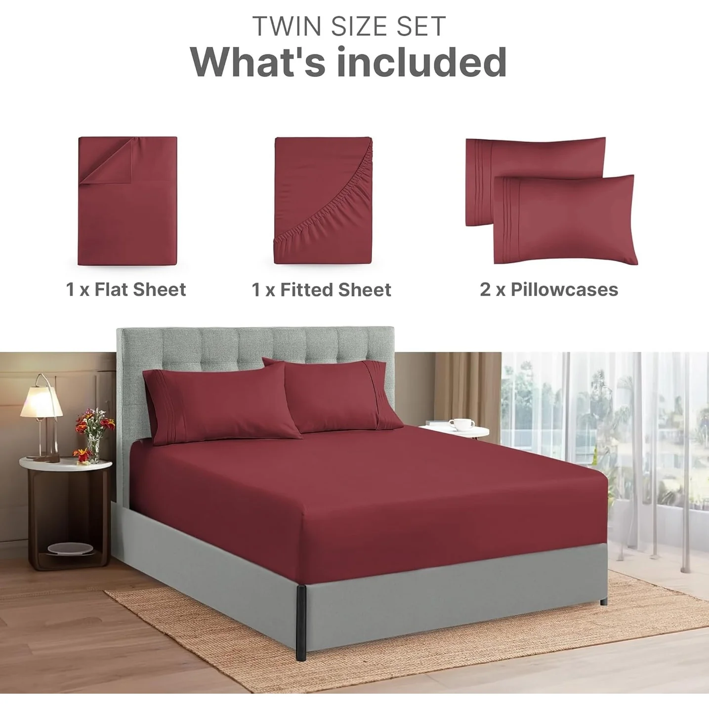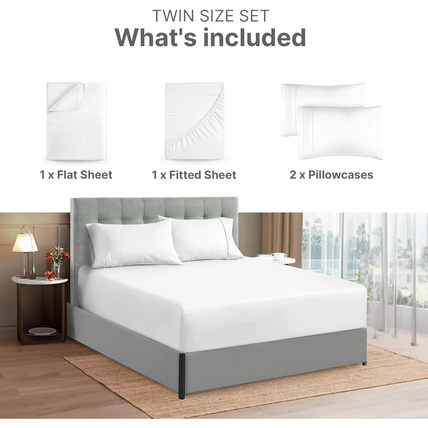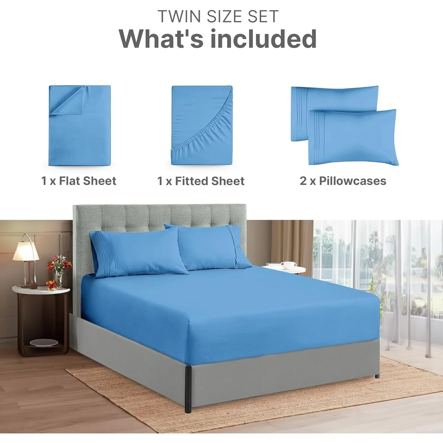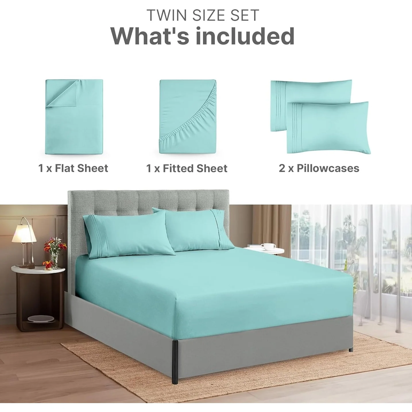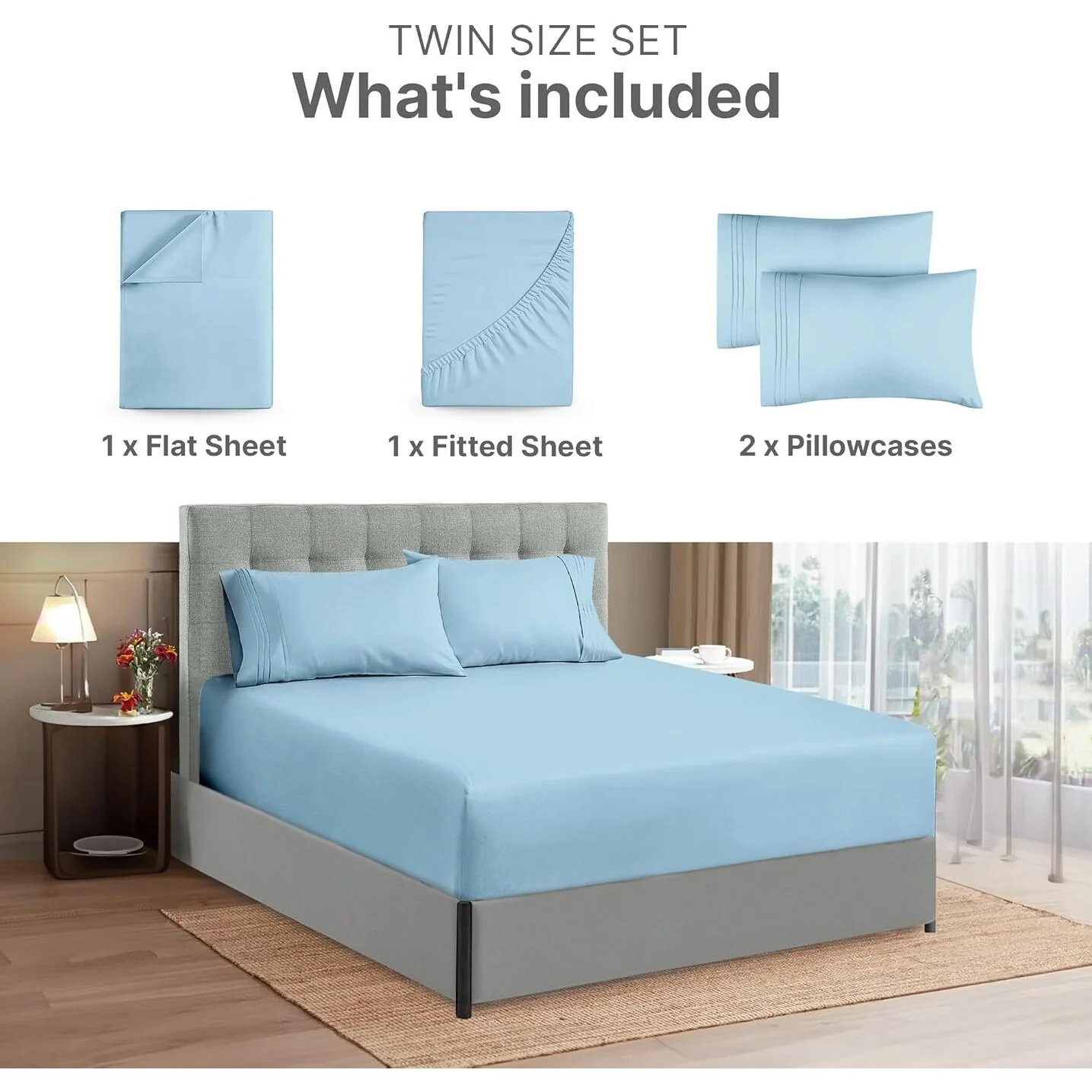 - 6 PIECE SHEET SET: This bed sheet set comes with 1 fitted sheet, 1 flat sheet, and 4 pillowcases with beautiful decorative embroidery designs on each pillowcase.