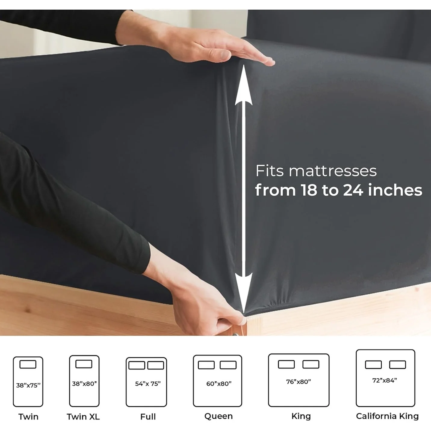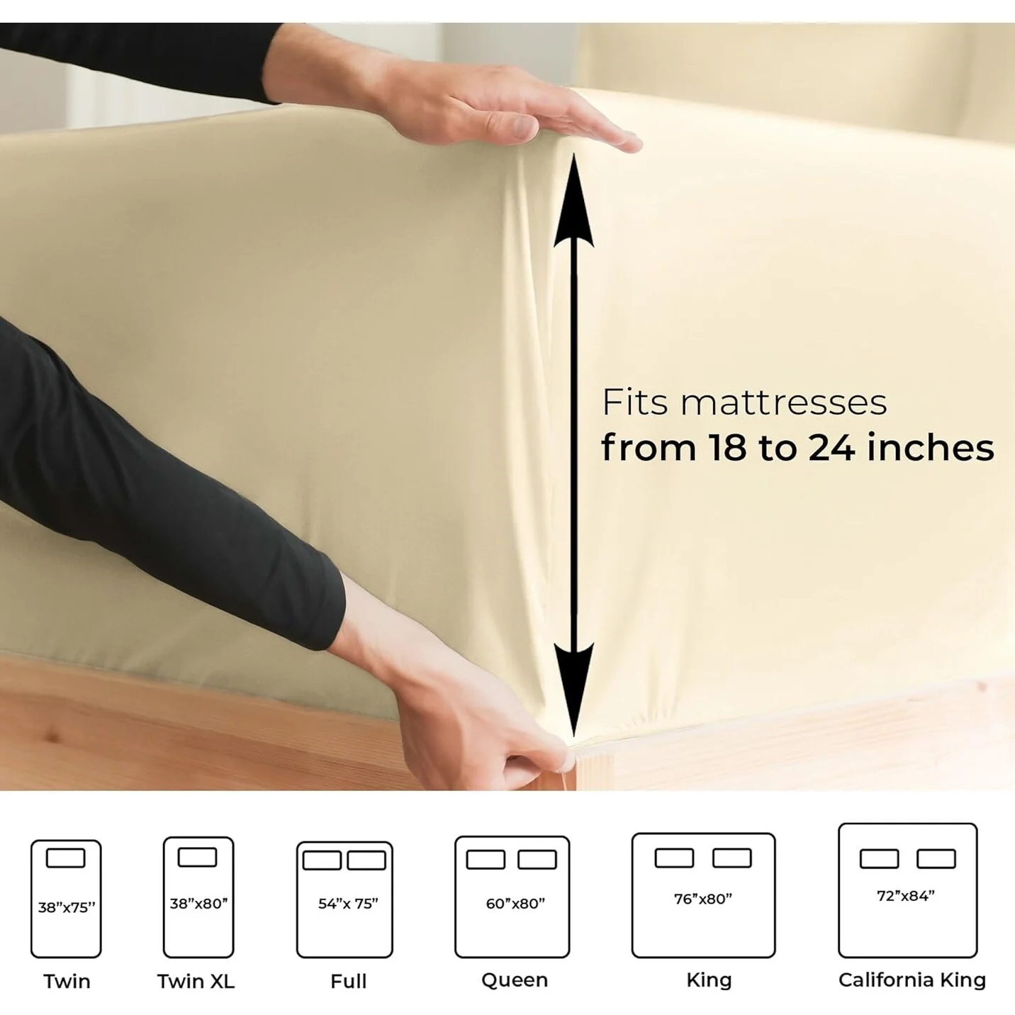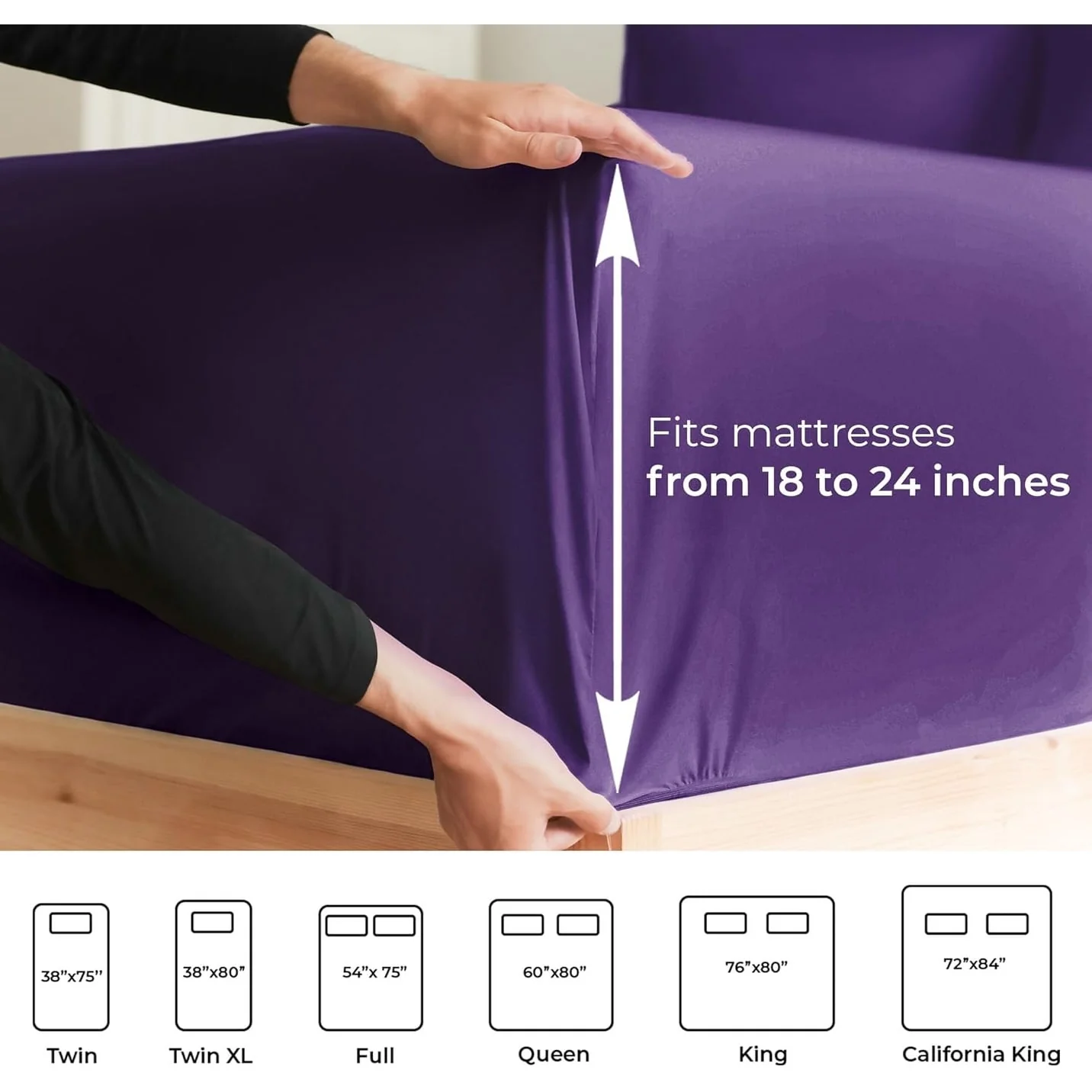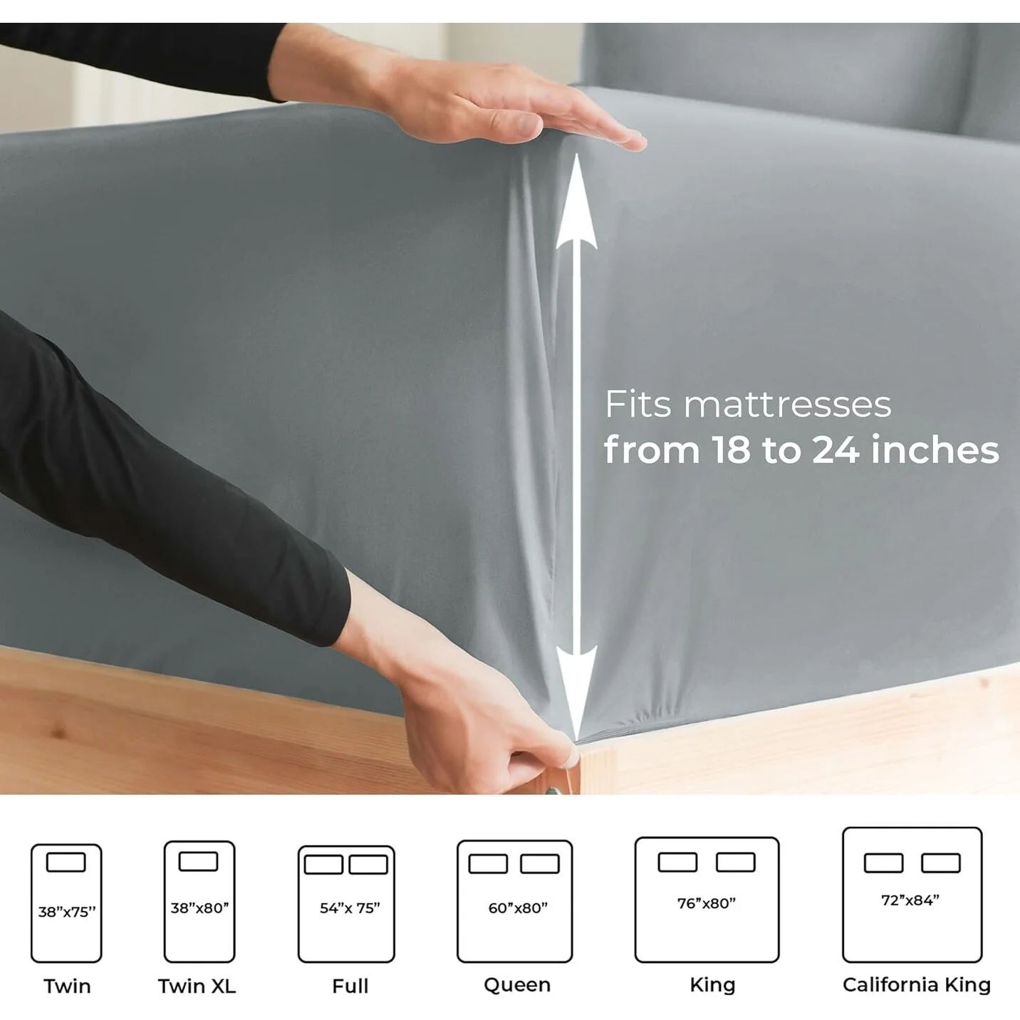 These are the softest type of microfiber bed sheets we have created. Super soft with a light feel. If you’re accustomed to cotton sheets and you’ve never tried microfiber sheets we recommend you at least give these a try. Our luxurious sheets are tightly woven and double brushed on both sides, contributing to a silky soft feel and ensuring that our 100% microfiber sheets are softer and more durable than Cotton! There’s a stretchable elastic around the extra deep fitted sheet which stretches for a nice tug around your mattress. Perfect for extra tall & large mattresses. Rest assured these oversized sheets will stay on tight & stay in place!