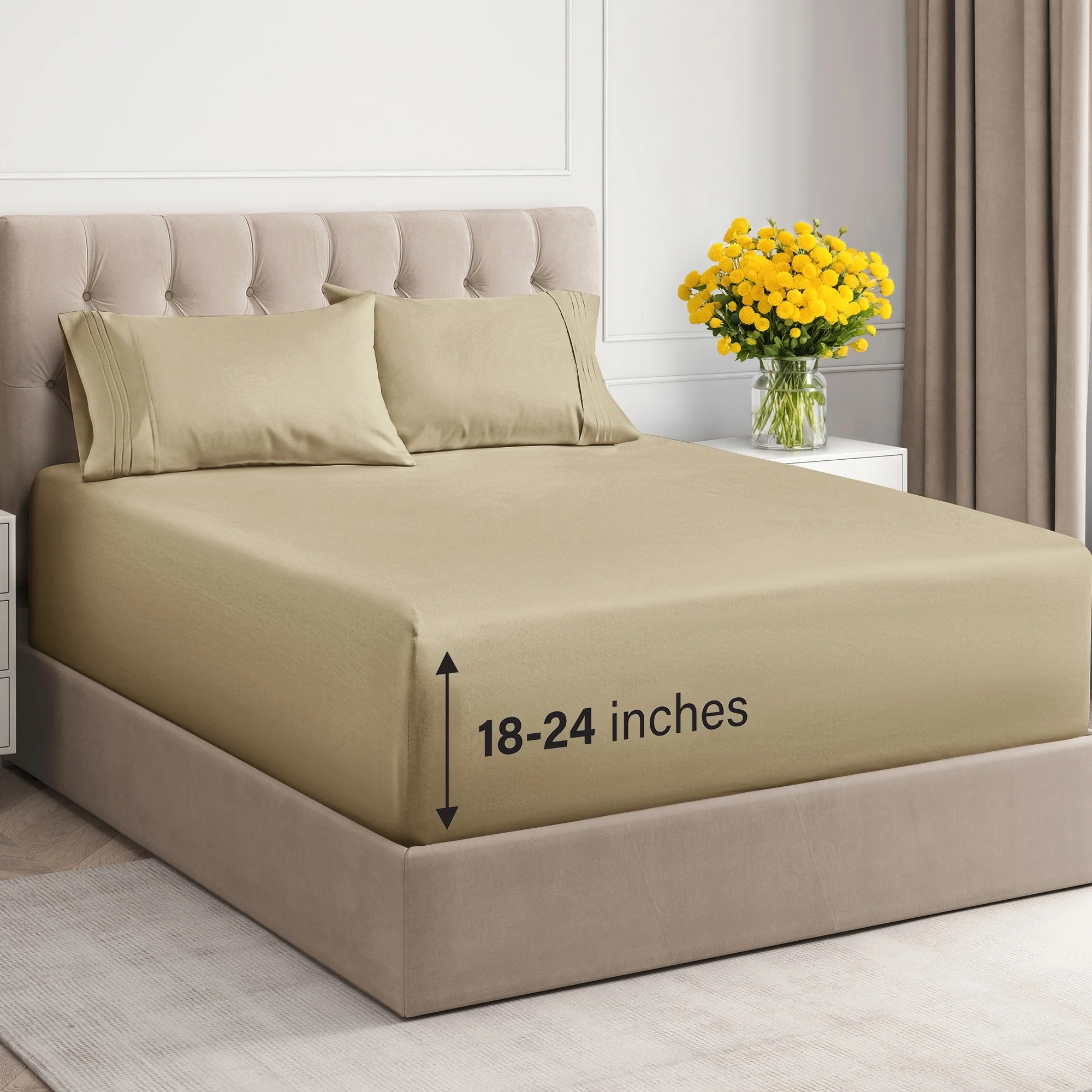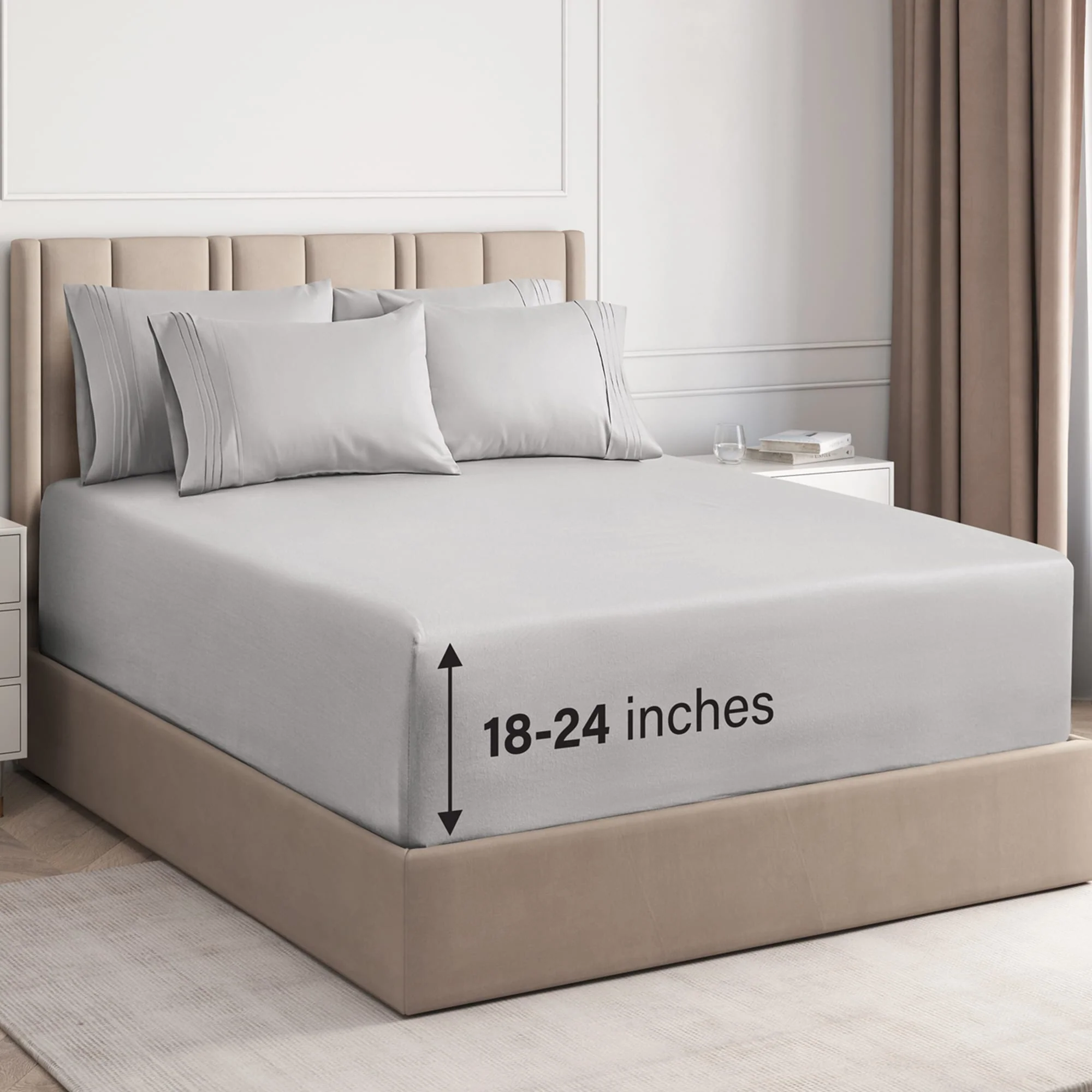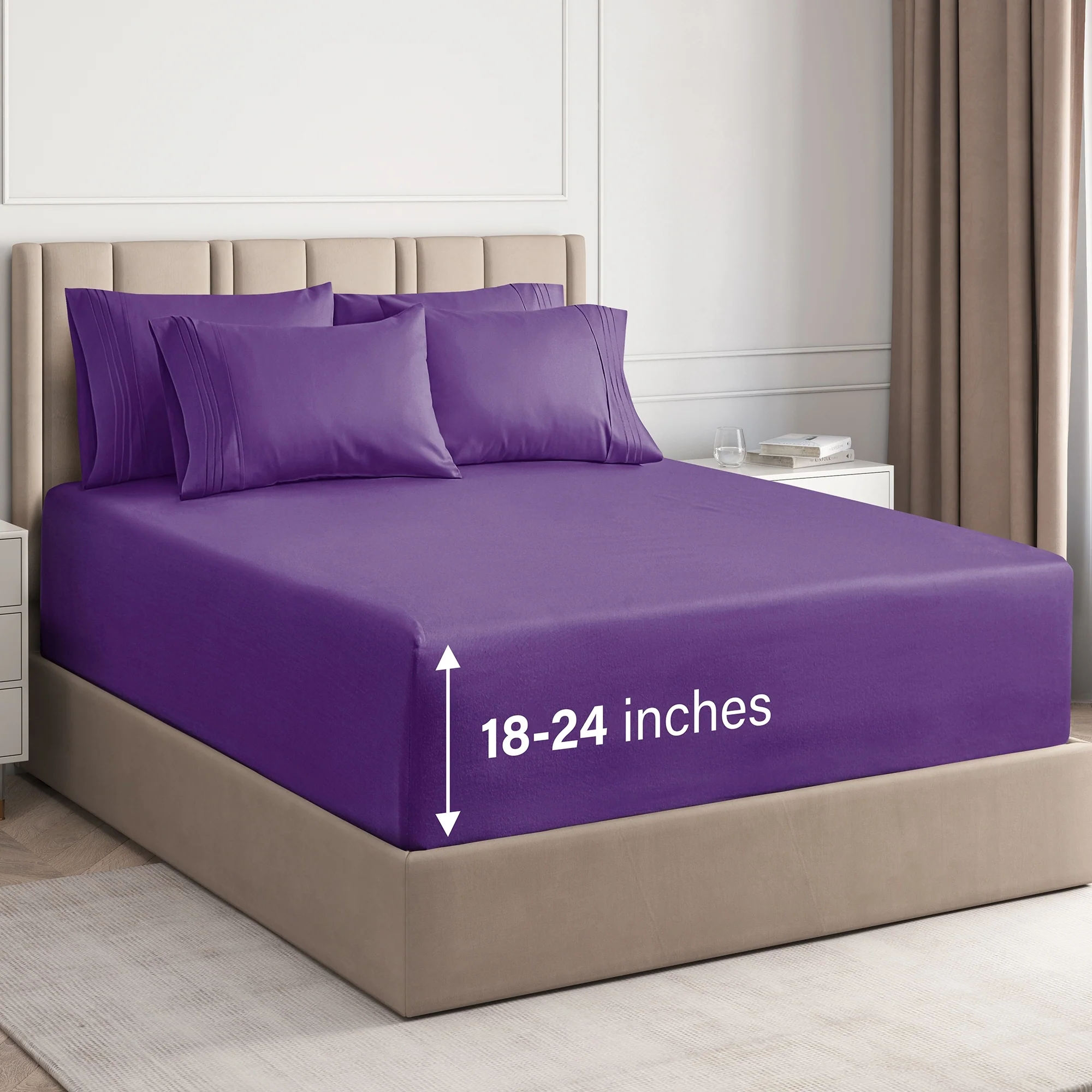 These are the softest type of microfiber bed sheets we have created. Super soft with a light feel. If you’re accustomed to cotton sheets and you’ve never tried microfiber sheets we recommend you at least give these a try. Our luxurious sheets are tightly woven and double brushed on both sides, contributing to a silky soft feel and ensuring that our 100% microfiber sheets are softer and more durable than Cotton! There’s a stretchable elastic around the extra deep fitted sheet which stretches for a nice tug around your mattress. Perfect for extra tall & large mattresses. Rest assured these oversized sheets will stay on tight & stay in place!